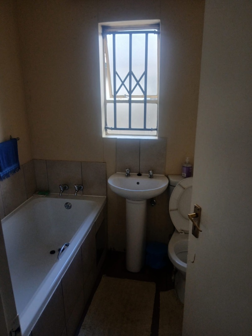 This well-located residential property in Clayville, Midrand, offers a practical and secure living environment. The exterior immediately conveys a sense of security and convenience, featuring a paved driveway with an interlocking brick pattern, leading to a secure entrance. The perimeter wall is enhanced with decorative tiling and topped with security spikes, complemented by an ADT armed response sign, security gates, and burglar bars on all windows, ensuring peace of mind for residents. A shade structure over the driveway provides protected off-street parking, while a visible solar geyser on the roof highlights a commitment to energy efficiency. Inside, the home comprises two bedrooms and a single bathroom, designed for functional living. The compact living space integrates essential kitchen elements, providing a versatile area for daily activities. Dark flooring throughout offers a durable and low-maintenance solution, with natural light filtering in through windows that are also fitted with security bars. The bathroom is equipped with a bathtub, a pedestal sink, and a toilet, offering standard amenities. With an erf size of 200 sqm, the property provides a manageable outdoor footprint, primarily consisting of the paved courtyard and driveway. This setup is ideal for those seeking a low-maintenance lifestyle without extensive garden upkeep. The overall design prioritises security and practicality, making it a suitable option for individuals or small families looking for an accessible home in a suburban setting. Key Features: * Two comfortable bedrooms * One functional bathroom with a bathtub * Compact, integrated living and kitchen area * Paved driveway with shade structure for parking * Enhanced security: spiked fencing, ADT response, security gates, burglar bars * Energy-efficient solar geyser * Low-maintenance 200 sqm erf * Located in Clayville, Midrand