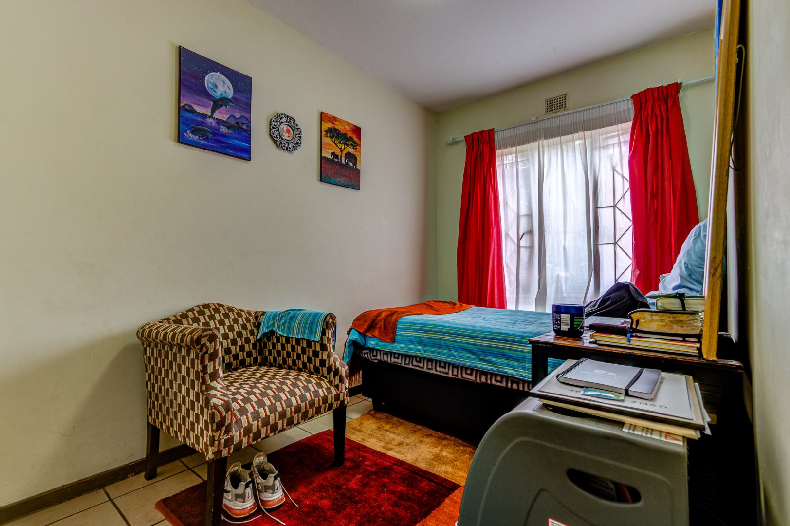 Security is a key aspect of this complex, featuring a secure gated pedestrian entrance for controlled access. The apartment further enhances safety with a security gate on the front door and security bars on windows, offering peace of mind. Situated in the Kempton Park area, this apartment provides convenient access to local amenities and transport routes, making it an ideal choice for those seeking an accessible and secure home in South Africa.