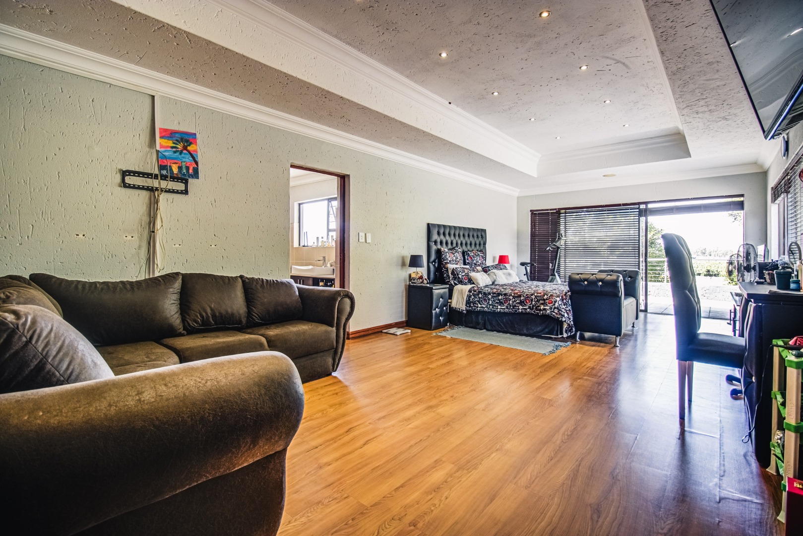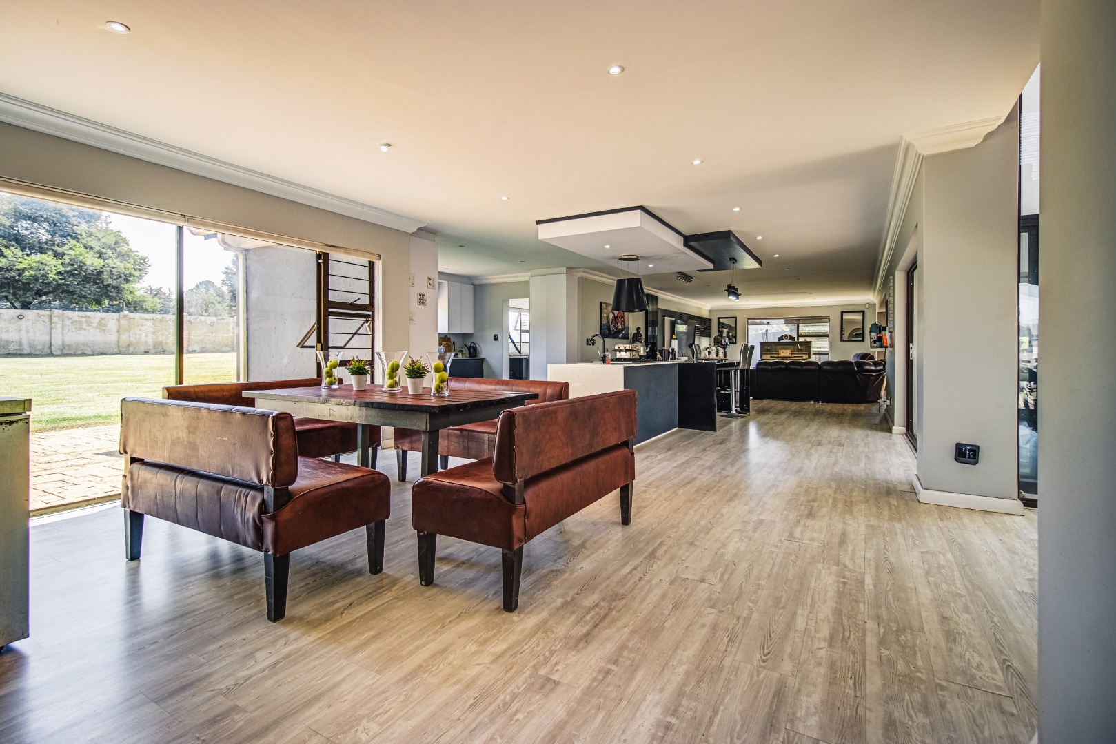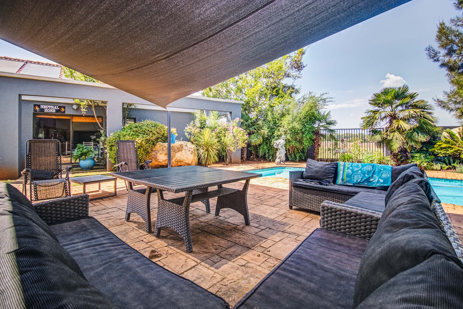 The allure of this property extends effortlessly outdoors, where a private oasis awaits. A sprawling garden, provides a serene backdrop for relaxation and recreation. The sparkling swimming pool invites refreshing dips on warm South African days, complemented by a charming lapa and expansive patio areas, ideal for al fresco dining and sun-drenched lounging. With six spacious garages and a paved driveway, ample secure parking is assured for residents and guests alike. The property's equestrian estate classification, coupled with its country living ambiance and scenic views, offers a unique opportunity for those seeking a refined rural lifestyle without compromising on modern conveniences. Pets are welcome, making this a true family haven.