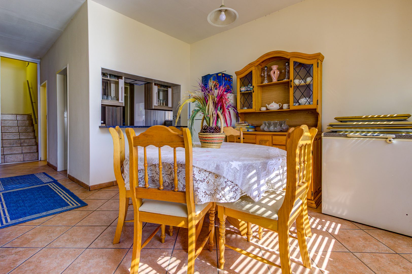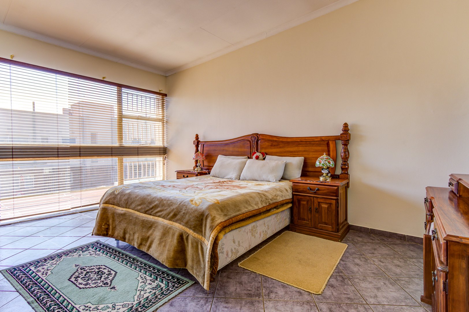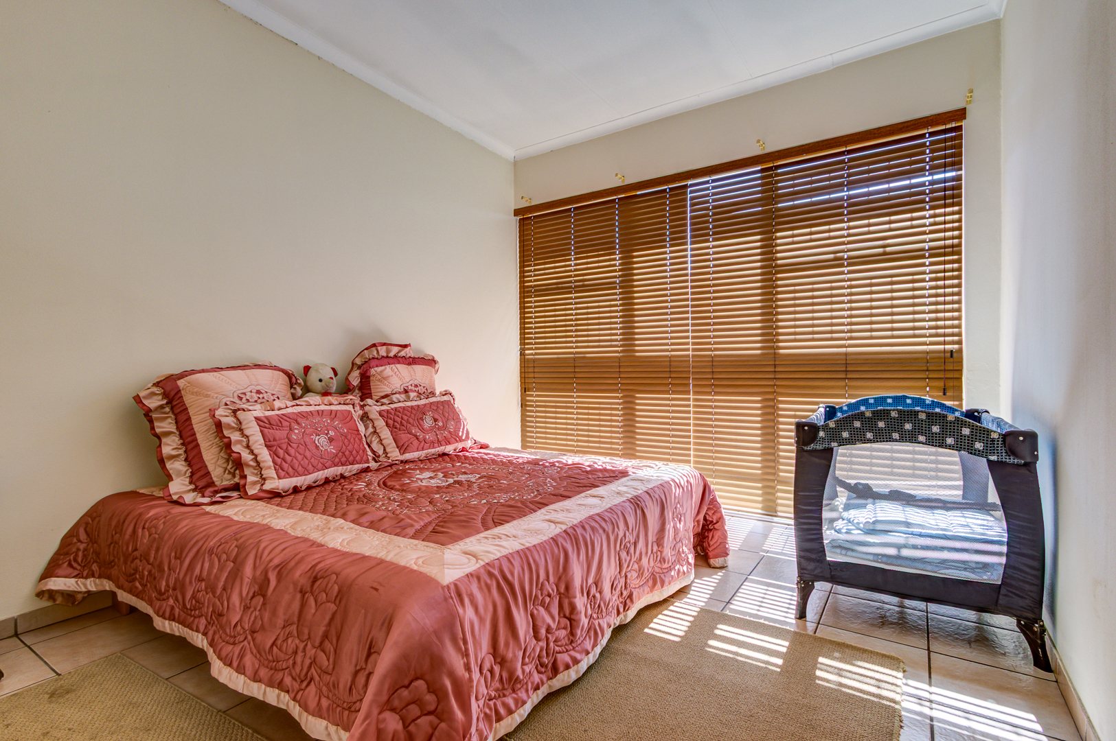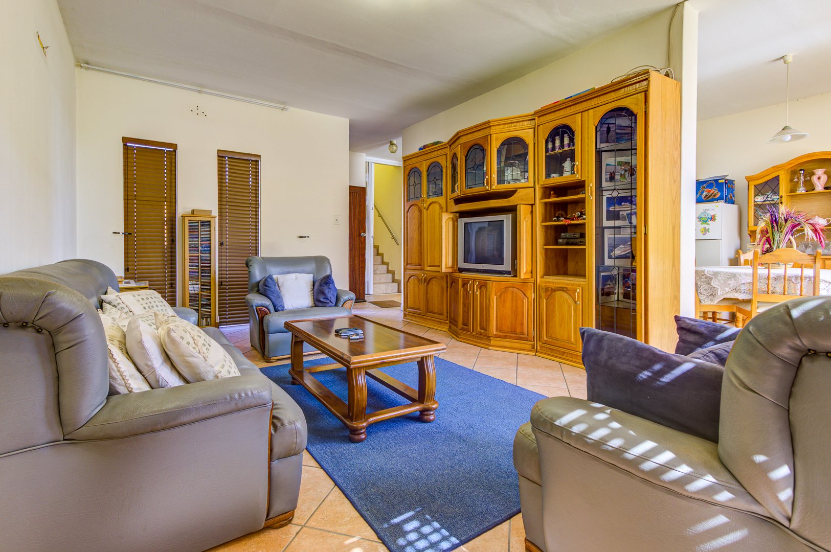 Upstairs is 3 very spacious bedrooms all fitted with built-in cupboards, blinds and tiled floors. 2 bathrooms with one being the main en-suite are very neat and spacious!