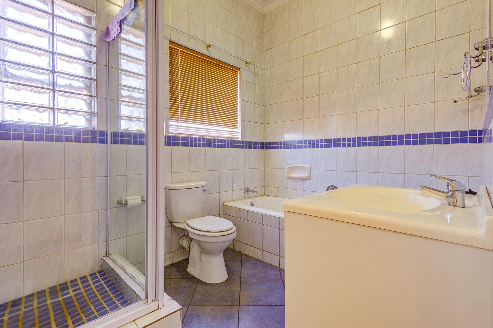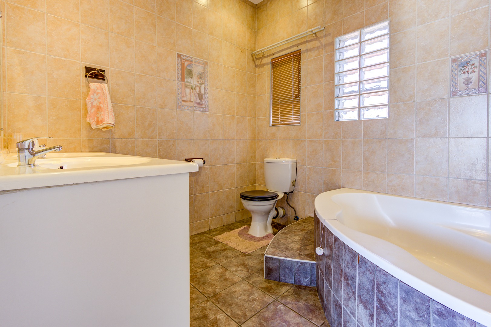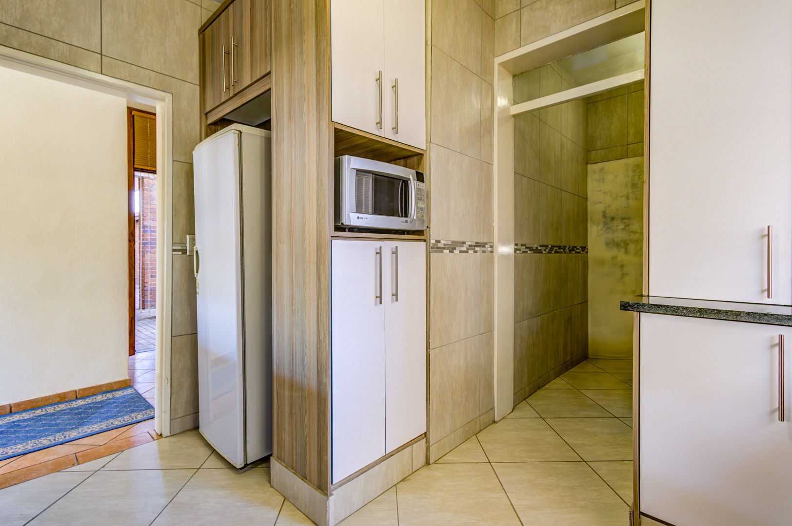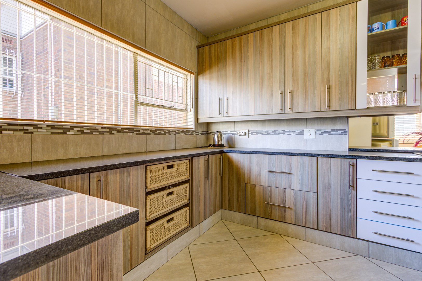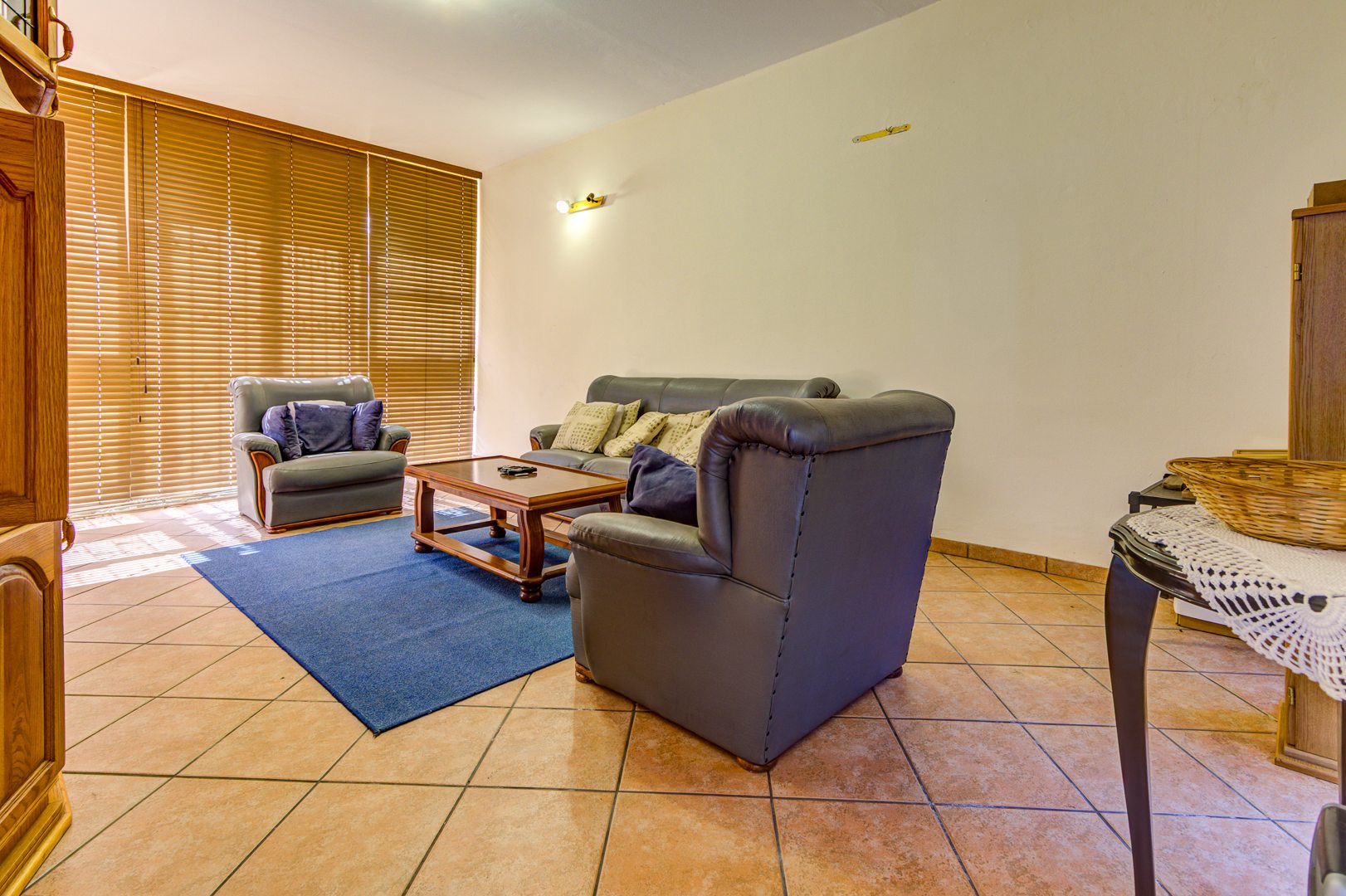 Upstairs is 3 very spacious bedrooms all fitted with built-in cupboards, blinds and tiled floors. 2 bathrooms with one being the main en-suite are very neat and spacious!
