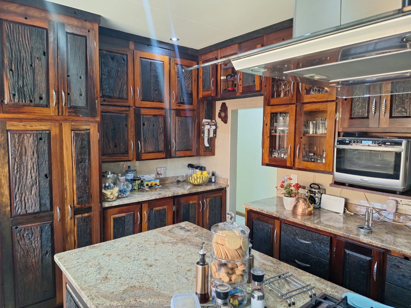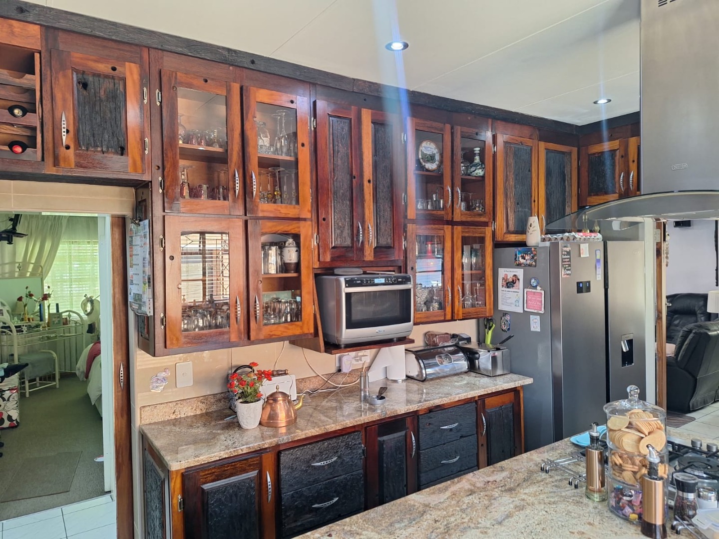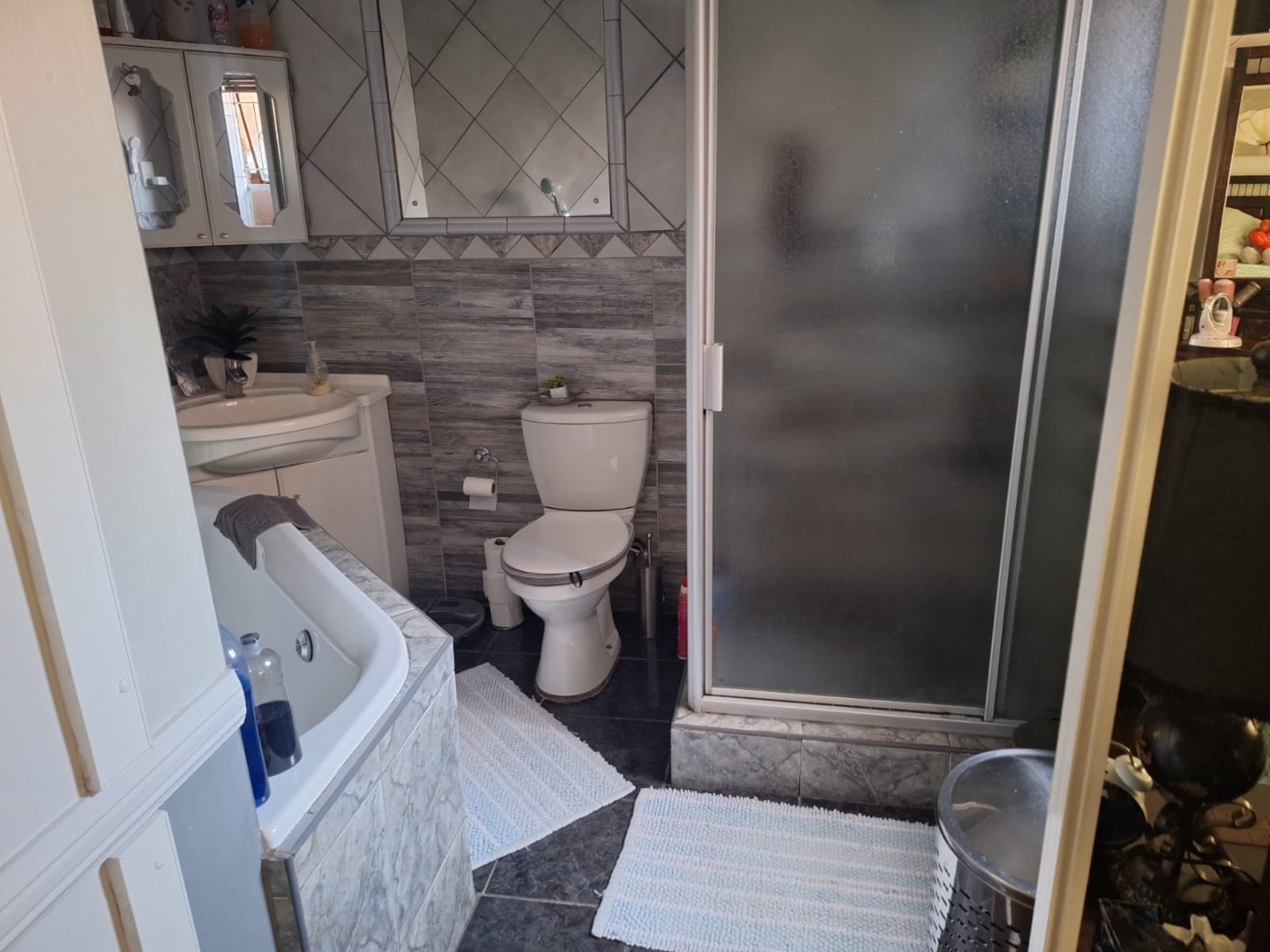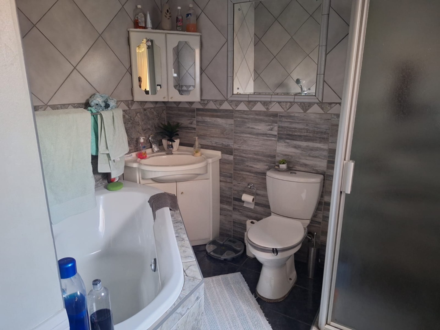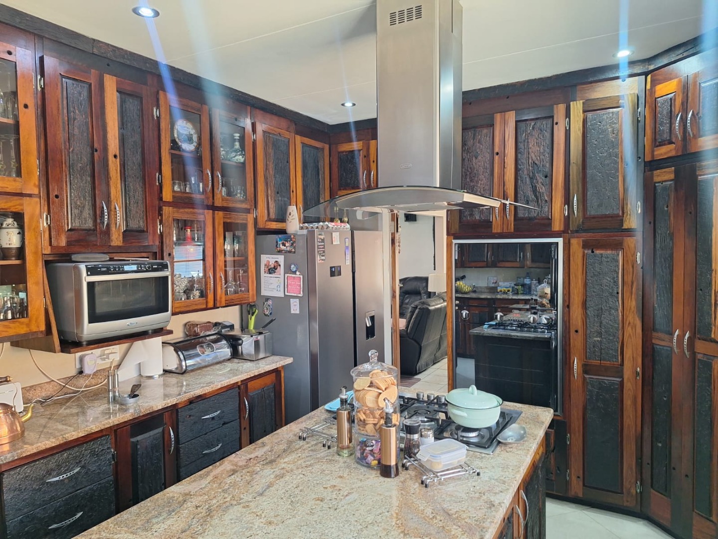 Discover this inviting 4-bedroom, 3-bathroom family residence within a secure gated community in Esther Park, Kempton Park, South Africa. This property features a well-maintained brick exterior, mature landscaping, and a paved driveway leading to a triple garage and additional parking for five vehicles. Robust security, including an electric fence and burglar bars, ensures peace of mind. Step inside to an open-plan layout designed for comfortable living. The spacious lounge and dining area flow seamlessly, featuring tiled flooring and natural light. The kitchen boasts extensive custom-built dark wood cabinetry, granite countertops, a functional island, and modern built-in appliances, complete with a pantry. An additional sunroom/conservatory provides a bright, versatile space for relaxation. The home offers four generously sized bedrooms, with three well-appointed bathrooms, including a private ensuite. Practical staff quarters enhance the functionality of this substantial property. Outdoor living is a delight on the expansive 1002 sqm erf. The lush, mature garden features both natural and artificial turf. Entertain guests with ease using the built-in braai and built-in bar, or unwind in the luxurious jacuzzi. The property's 319 sqm floor size provides ample space. Embracing modern living, this home is equipped with essential sustainability and connectivity features. Benefit from solar panels and a battery inverter, offering energy independence and backup power. High-speed fibre internet connectivity is also available. Pets are welcome, making this an ideal family haven. Key Features: * 4 Bedrooms, 3 Bathrooms (1 Ensuite) * Triple Garage & 5 Parking Spaces * Open-Plan Lounge & Dining Area * Modern Kitchen with Granite & Pantry * Sunroom/Conservatory * Built-in Braai & Bar, Jacuzzi * Solar Panels & Battery Inverter * Fibre Internet Ready * Gated Community Security * Staff Quarters