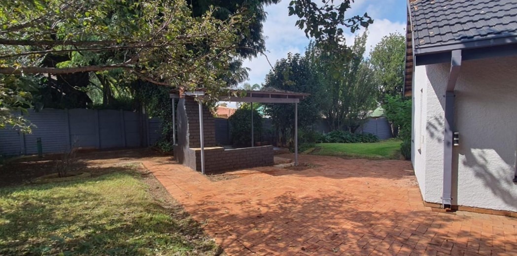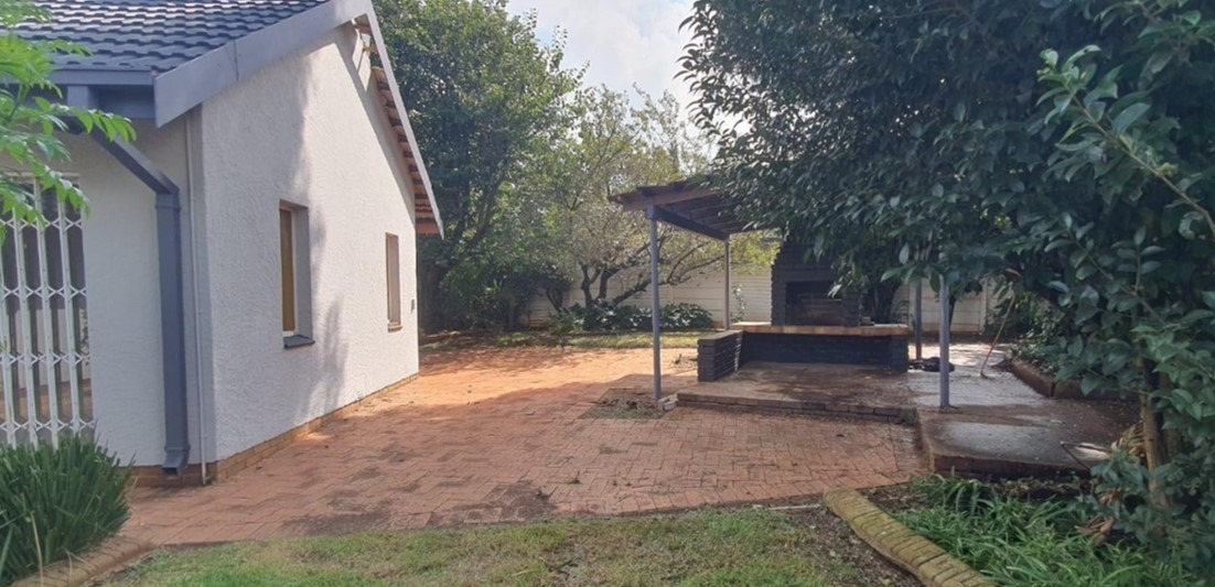 The home boasts four comfortable bedrooms, each fitted with practical built-in cupboards. The main bedroom offers a private sanctuary with its own en-suite bathroom and a generous walk-in dressing area. A second well-appointed bathroom serves the remaining bedrooms. Outside, a charming patio courtyard with a built-in braai and a lapa provides an ideal setting for outdoor dining and relaxation. Parking is abundant, including a double automated garage, a double carport, and extra secure parking. Additional practical features include staff quarters and fibre internet connectivity, enhancing comfort and convenience.