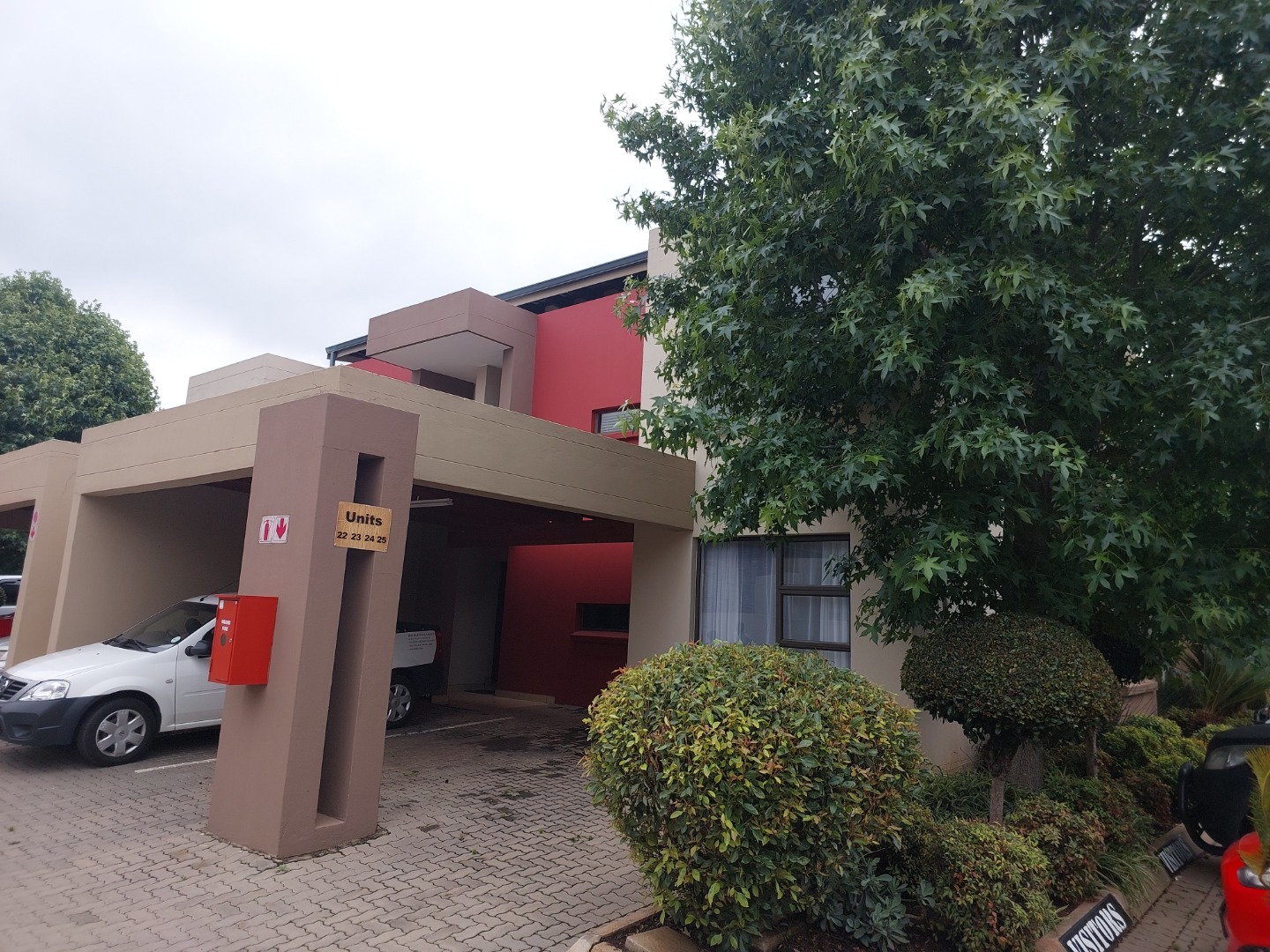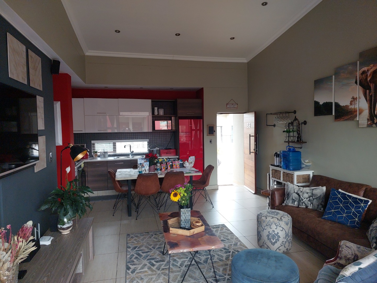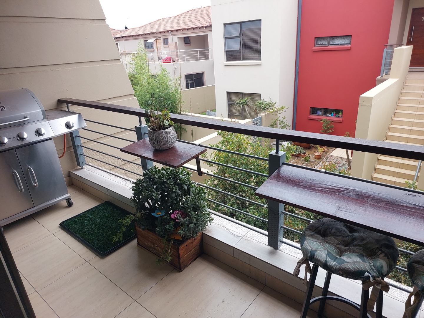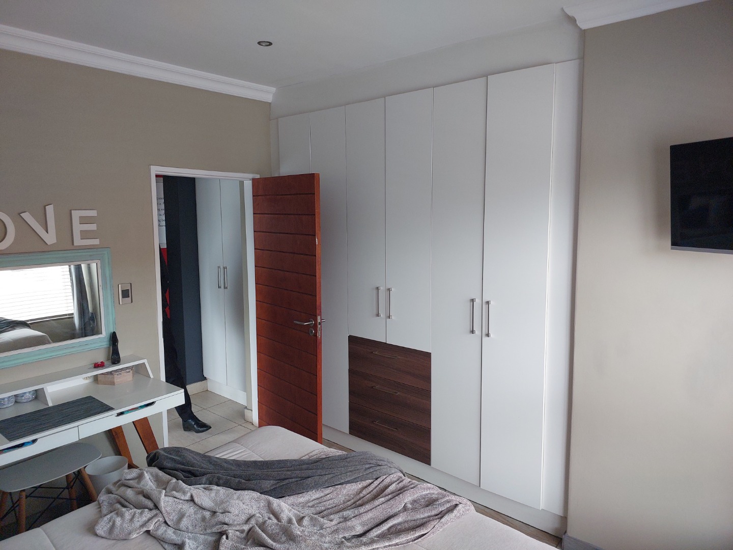 This contemporary two-bedroom, one-bathroom apartment, spanning 73.00 sqm, offers a sophisticated living experience within the desirable Glen Eagle Estate in Kempton Park. The property presents a modern architectural design with a distinctive exterior, complemented by well-maintained landscaping and convenient covered parking facilities. Upon entry, residents are greeted by an open-plan living area, seamlessly integrating the lounge, dining space, and a modern kitchen. The kitchen is a focal point, featuring high-gloss white cabinetry, bold red accents, integrated appliances including a striking red refrigerator, and tiled flooring throughout. The living area benefits from ample natural light, a dedicated media wall, and direct access to a private balcony, offering an extension of the living space. The residence comprises two well-appointed bedrooms, each designed for comfort. One bedroom features a built-in wardrobe and a pleasant green view, while the other boasts a stylish accent wall and a wall-mounted television. The full bathroom is elegantly tiled and includes both a separate bath and a glass-enclosed shower, catering to diverse preferences. Security is paramount, with the property benefiting from a security post, access gate, electric fencing, and a security gate, ensuring a secure environment for residents. Two dedicated parking bays are provided for convenience. Pets are permitted, adding to the property's appeal for animal owners. Glen Eagle Estate, situated in Kempton Park, offers a tranquil residential setting with convenient access to local amenities and major transport routes. This location provides a balanced lifestyle, combining suburban serenity with urban accessibility. Key Features: * Modern 2-bedroom, 1-bathroom apartment * 73.00 sqm floor size * Open-plan living with modern kitchen * Private balcony access * Two dedicated parking bays * Comprehensive security features (security post, access gate, electric fencing, security gate) * Pets allowed * Tiled flooring throughout
