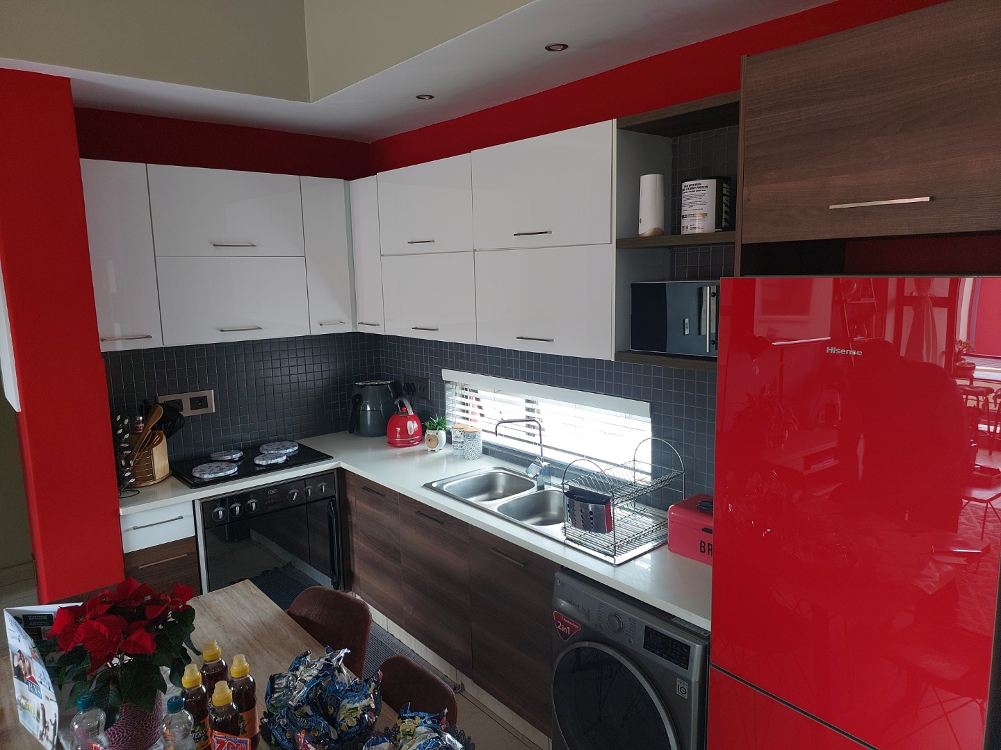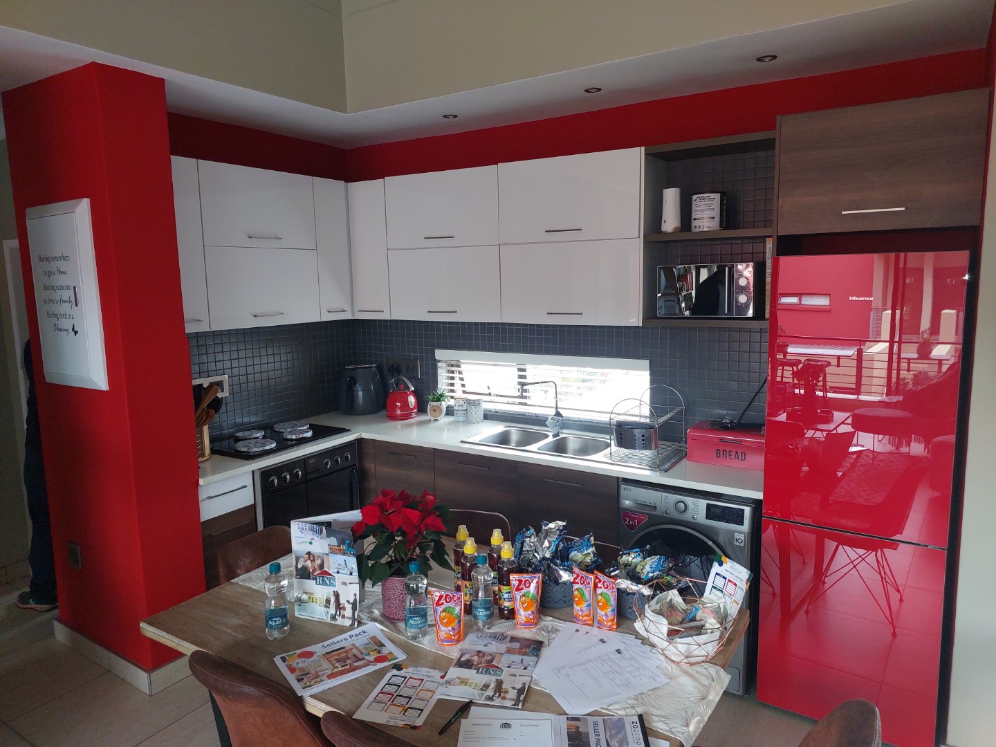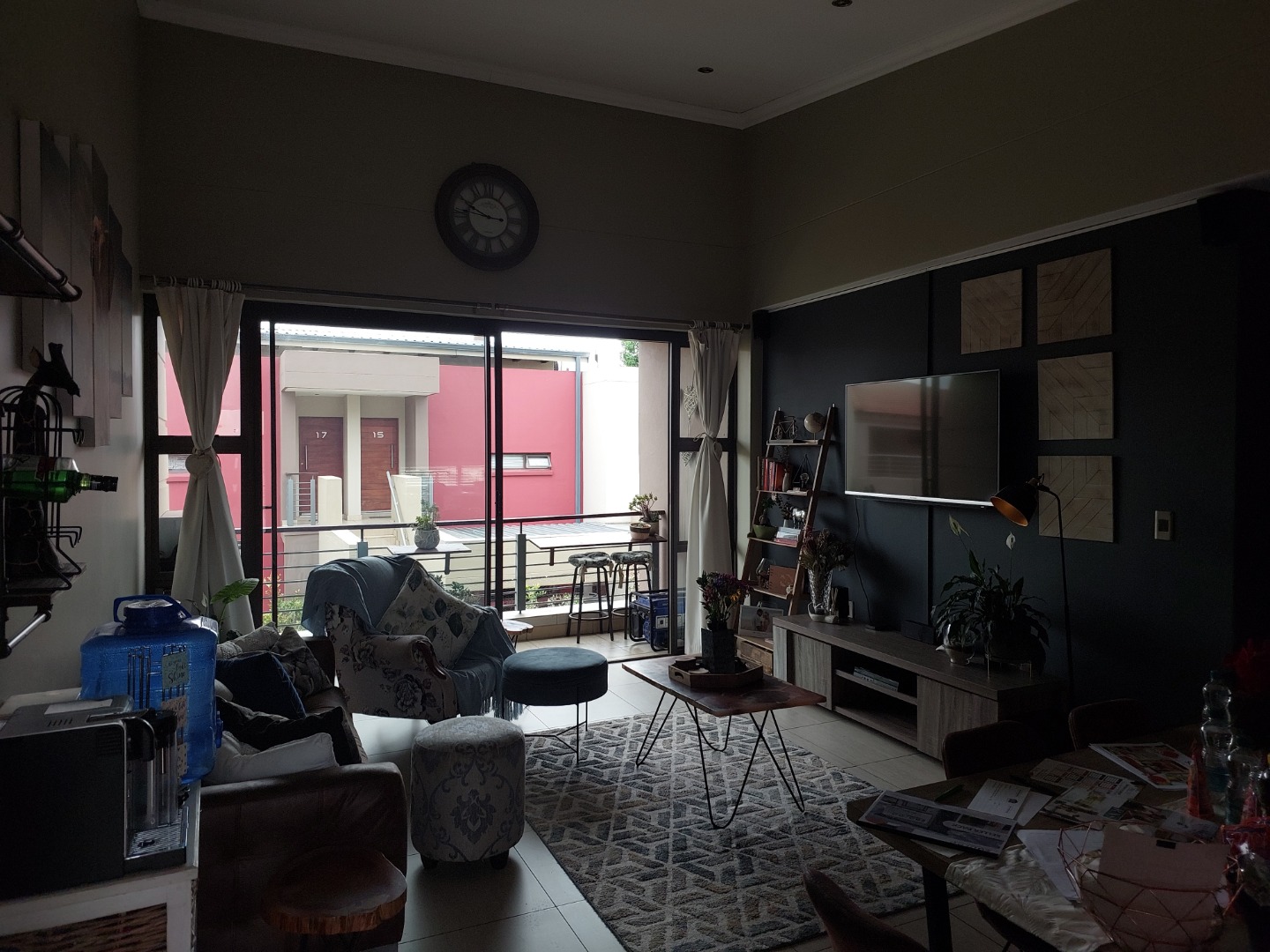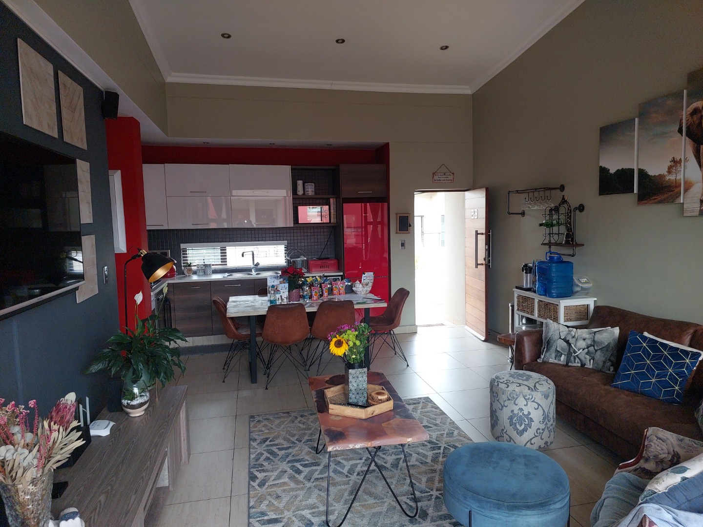 This contemporary two-bedroom, one-bathroom apartment, spanning 73.00 sqm, offers a sophisticated living experience within the desirable Glen Eagle Estate in Kempton Park. The property presents a modern architectural design with a distinctive exterior, complemented by well-maintained landscaping and convenient covered parking facilities. Upon entry, residents are greeted by an open-plan living area, seamlessly integrating the lounge, dining space, and a modern kitchen. The kitchen is a focal point, featuring high-gloss white cabinetry, bold red accents, integrated appliances including a striking red refrigerator, and tiled flooring throughout. The living area benefits from ample natural light, a dedicated media wall, and direct access to a private balcony, offering an extension of the living space. The residence comprises two well-appointed bedrooms, each designed for comfort. One bedroom features a built-in wardrobe and a pleasant green view, while the other boasts a stylish accent wall and a wall-mounted television. The full bathroom is elegantly tiled and includes both a separate bath and a glass-enclosed shower, catering to diverse preferences. Security is paramount, with the property benefiting from a security post, access gate, electric fencing, and a security gate, ensuring a secure environment for residents. Two dedicated parking bays are provided for convenience. Pets are permitted, adding to the property's appeal for animal owners. Glen Eagle Estate, situated in Kempton Park, offers a tranquil residential setting with convenient access to local amenities and major transport routes. This location provides a balanced lifestyle, combining suburban serenity with urban accessibility. Key Features: * Modern 2-bedroom, 1-bathroom apartment * 73.00 sqm floor size * Open-plan living with modern kitchen * Private balcony access * Two dedicated parking bays * Comprehensive security features (security post, access gate, electric fencing, security gate) * Pets allowed * Tiled flooring throughout