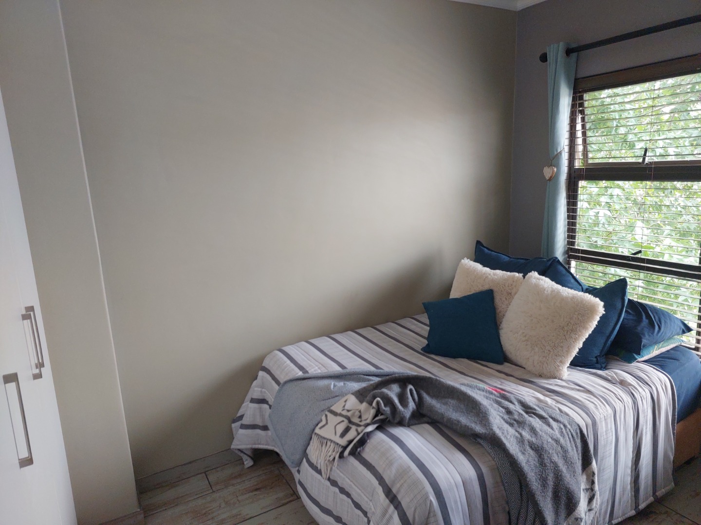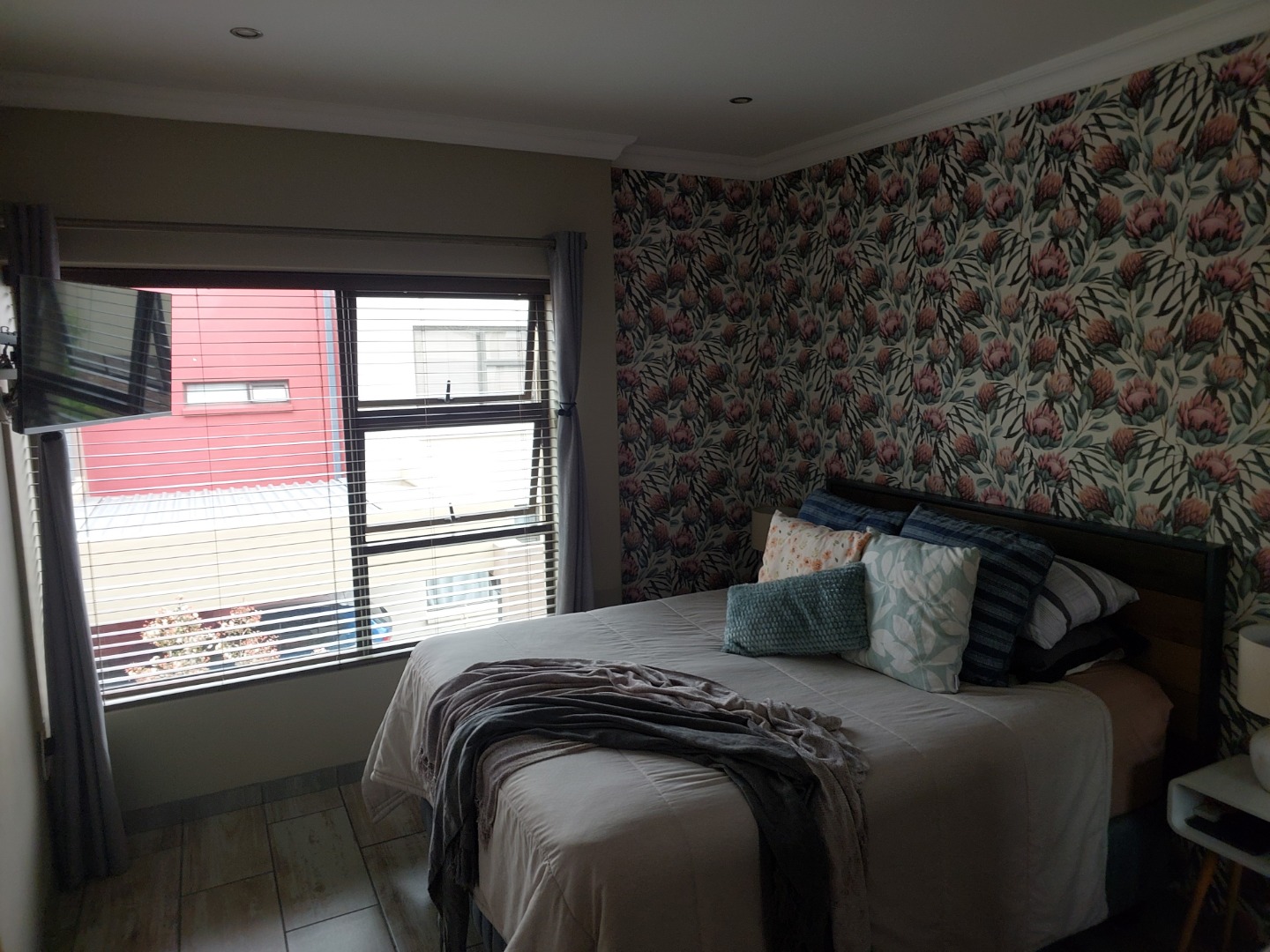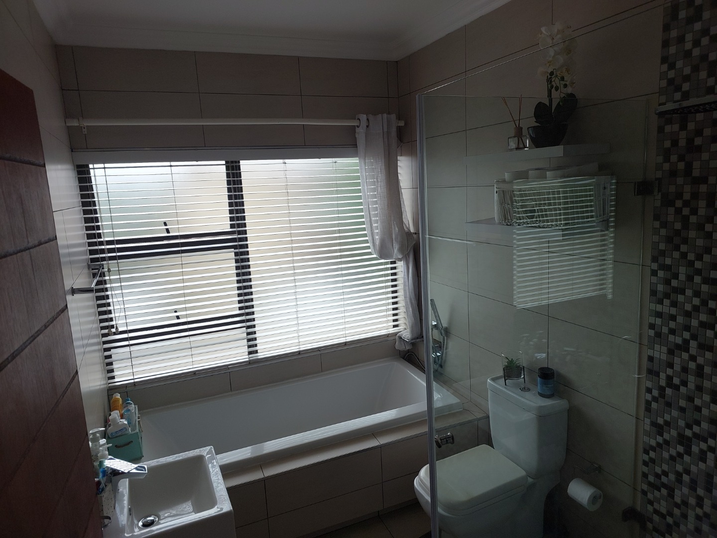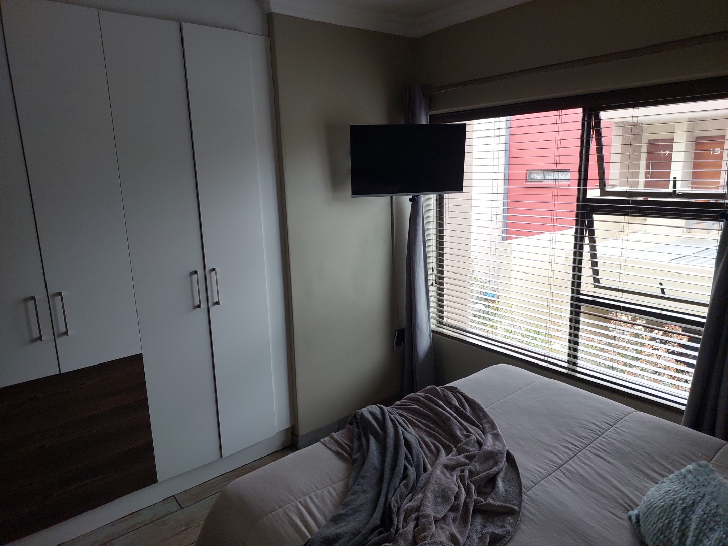 This contemporary two-bedroom, one-bathroom apartment, spanning 73.00 sqm, offers a sophisticated living experience within the desirable Glen Eagle Estate in Kempton Park. The property presents a modern architectural design with a distinctive exterior, complemented by well-maintained landscaping and convenient covered parking facilities. Upon entry, residents are greeted by an open-plan living area, seamlessly integrating the lounge, dining space, and a modern kitchen. The kitchen is a focal point, featuring high-gloss white cabinetry, bold red accents, integrated appliances including a striking red refrigerator, and tiled flooring throughout. The living area benefits from ample natural light, a dedicated media wall, and direct access to a private balcony, offering an extension of the living space. The residence comprises two well-appointed bedrooms, each designed for comfort. One bedroom features a built-in wardrobe and a pleasant green view, while the other boasts a stylish accent wall and a wall-mounted television. The full bathroom is elegantly tiled and includes both a separate bath and a glass-enclosed shower, catering to diverse preferences. Security is paramount, with the property benefiting from a security post, access gate, electric fencing, and a security gate, ensuring a secure environment for residents. Two dedicated parking bays are provided for convenience. Pets are permitted, adding to the property's appeal for animal owners. Glen Eagle Estate, situated in Kempton Park, offers a tranquil residential setting with convenient access to local amenities and major transport routes. This location provides a balanced lifestyle, combining suburban serenity with urban accessibility. Key Features: * Modern 2-bedroom, 1-bathroom apartment * 73.00 sqm floor size * Open-plan living with modern kitchen * Private balcony access * Two dedicated parking bays * Comprehensive security features (security post, access gate, electric fencing, security gate) * Pets allowed * Tiled flooring throughout