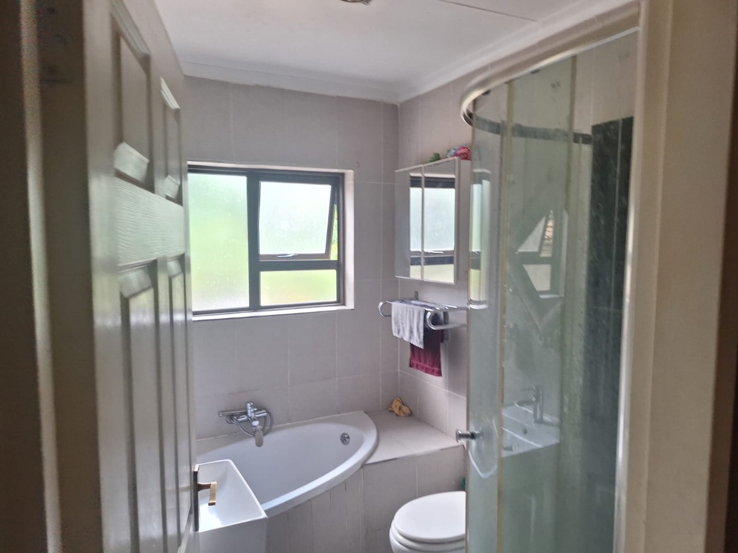 Nestled within the secure confines of Glen Erasmia, Kempton Park, this inviting 3-bedroom, 3-bathroom residence offers a spacious 274 sqm floor plan on a generous 703 sqm erf. The home's contemporary two-story design features a neutral-toned facade, an attractive wooden garage door, and a paved driveway, creating a welcoming curb appeal. Inside, the layout includes a dedicated lounge, a dining room, and a well-appointed kitchen, providing ample space for family living and entertaining. The property boasts three comfortable bedrooms, ensuring private retreats for all residents. With three bathrooms, including one en-suite, convenience is paramount. Each bathroom is functionally designed, featuring both a corner bathtub and a separate shower enclosure, along with tiled walls and floors for easy maintenance. Natural light filters through windows, enhancing the bright and airy feel of these essential spaces. Step outside to discover a private outdoor area, complete with high boundary walls and an electric fence for enhanced security. The garden features mature trees, tropical-style plants, and defined garden beds, offering potential for a lush oasis. A modern decorative water feature adds aesthetic appeal, while the paved driveway provides four parking spaces, including a single garage, catering to all your vehicle needs. Security is a key feature of this property, situated within a gated community with controlled access via boom gates and robust perimeter fencing. This ensures peace of mind for residents. Glen Erasmia is a desirable suburb in Kempton Park, South Africa, known for its residential tranquility and convenient access to local amenities and transport routes. Key Features: * 3 Bedrooms, 3 Bathrooms (1 en-suite) * Spacious 274 sqm floor size on 703 sqm erf * Secure gated community with boom gates and electric fencing * Modern two-story architectural design * Single garage and four parking spaces * Dedicated lounge, dining room, and kitchen * Private garden with mature trees and water feature * Paved driveway and attractive wooden garage door