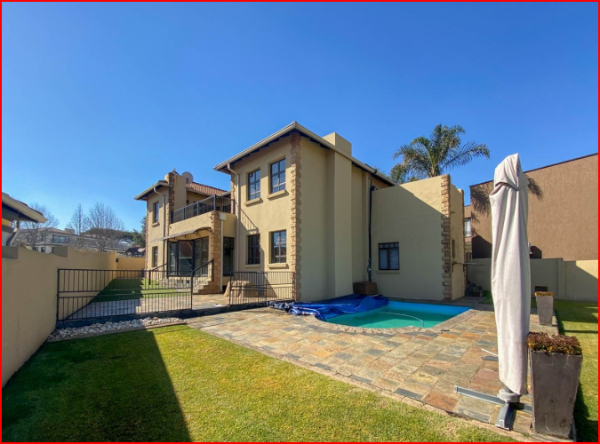 Discover this modern family residence nestled within the secure Glen Erasmia estate in Kempton Park. This multi-story home presents a distinct architectural style with a well-maintained exterior, featuring stone accents and multiple balconies that enhance its kerb appeal. The property offers a generous 320 sqm under roof on a 658 sqm erf, providing ample space for comfortable living.