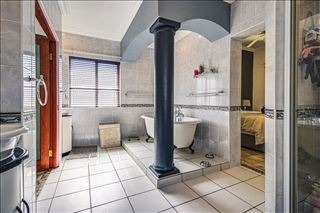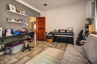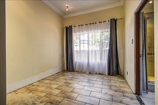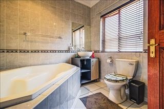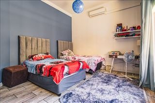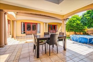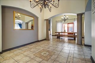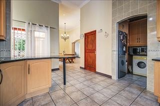 This distinguished four-bedroom residence, situated in a desirable cul-de-sac within Glen Erasmia, Kempton Park, South Africa, offers an exceptional suburban living experience. The property benefits from its prime location, providing both tranquility and convenient access to local amenities. Upon entry, the home reveals a spacious, open-plan layout characterized by high ceilings and classic architectural elements, including elegant arches and pillars. The expansive dining area, suitable for entertaining, flows seamlessly into multiple living spaces, one featuring high vaulted ceilings and another benefiting from a large skylight, ensuring abundant natural light. Durable tiled flooring extends throughout these communal areas, offering both aesthetic appeal and ease of maintenance. The functional kitchen is well-appointed with ample light wood cabinetry, dark countertops, and tiled flooring. It includes a dedicated laundry/scullery nook and a pantry, providing extensive storage and utility. This thoughtful design ensures a practical and organized culinary environment. Accommodation comprises four comfortable bedrooms and two bathrooms, with one en-suite for added privacy and convenience. One versatile room, currently configured as a home office, features modern two-tone walls and wood-look tiled flooring, while another bedroom is equipped with an air conditioning unit for enhanced comfort. The property also includes a double garage, offering secure parking. Externally, the residence is set on an 832 sqm erf, featuring a garden and a patio, ideal for outdoor relaxation and al fresco dining. Security is addressed with an access gate and a security post, contributing to a secure living environment. This home presents a well-maintained facade, embodying suburban charm and offering a refined lifestyle. Key Features: * 4 Bedrooms, 2 Bathrooms (1 En-suite) * Double Garage * Spacious Open-Plan Living Areas * High Ceilings and Architectural Details * Functional Kitchen with Scullery and Pantry * Patio and Garden * Located in a Cul-de-Sac * Access Gate and Security Post