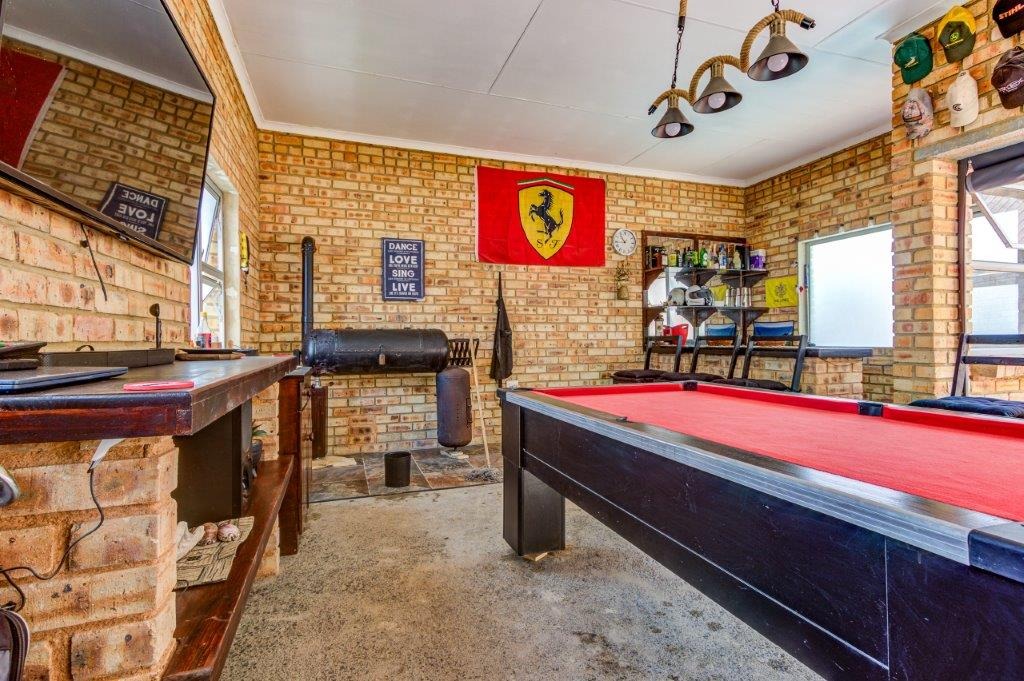 Outdoor amenities are plentiful, including a refreshing swimming pool, a covered patio, and a lapa, perfect for alfresco dining and leisure. The established garden, complete with paving and a driveway, provides a pleasant environment.