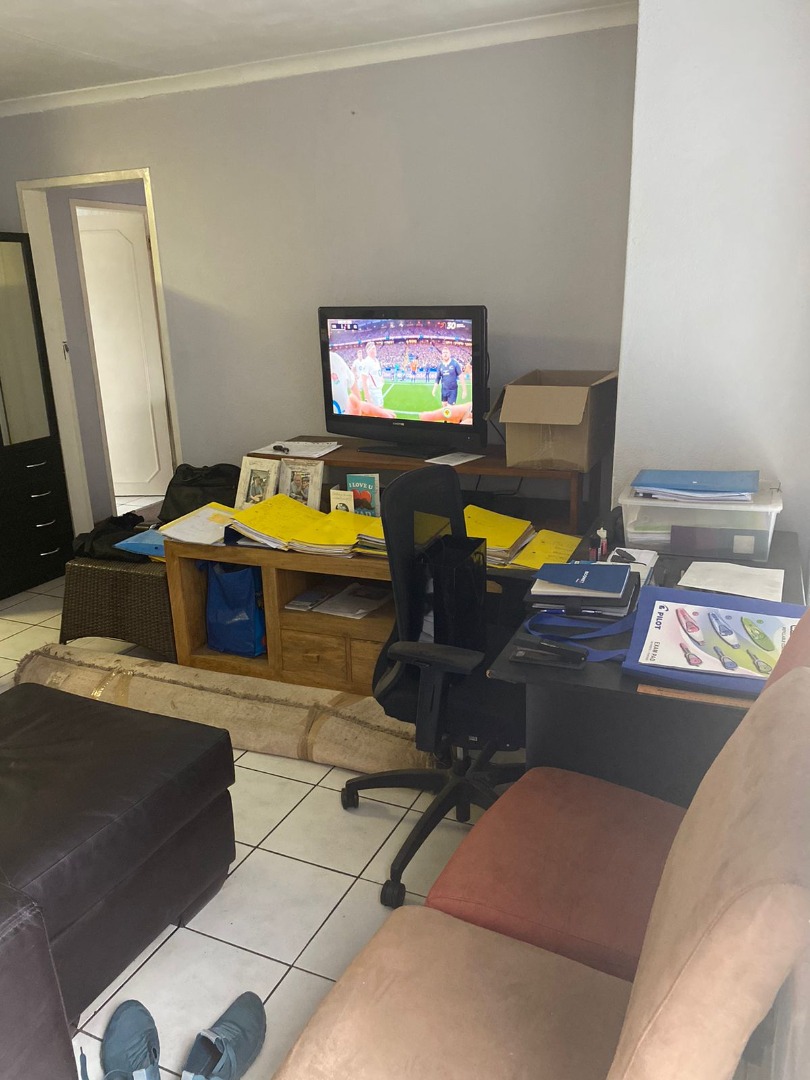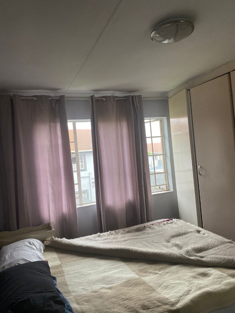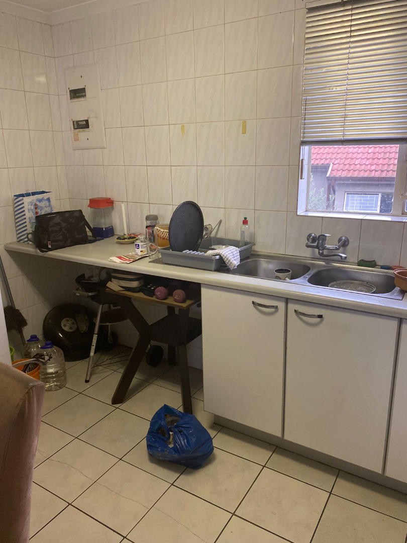The unit comprises one comfortable bedroom and a single bathroom, catering to essential needs. Security is a priority, with security gates on the entrance door and window bars visible, adding an extra layer of protection. Residents can enjoy communal amenities including a refreshing pool and a communal braai area, perfect for outdoor leisure and social gatherings. The property also includes one dedicated parking space.