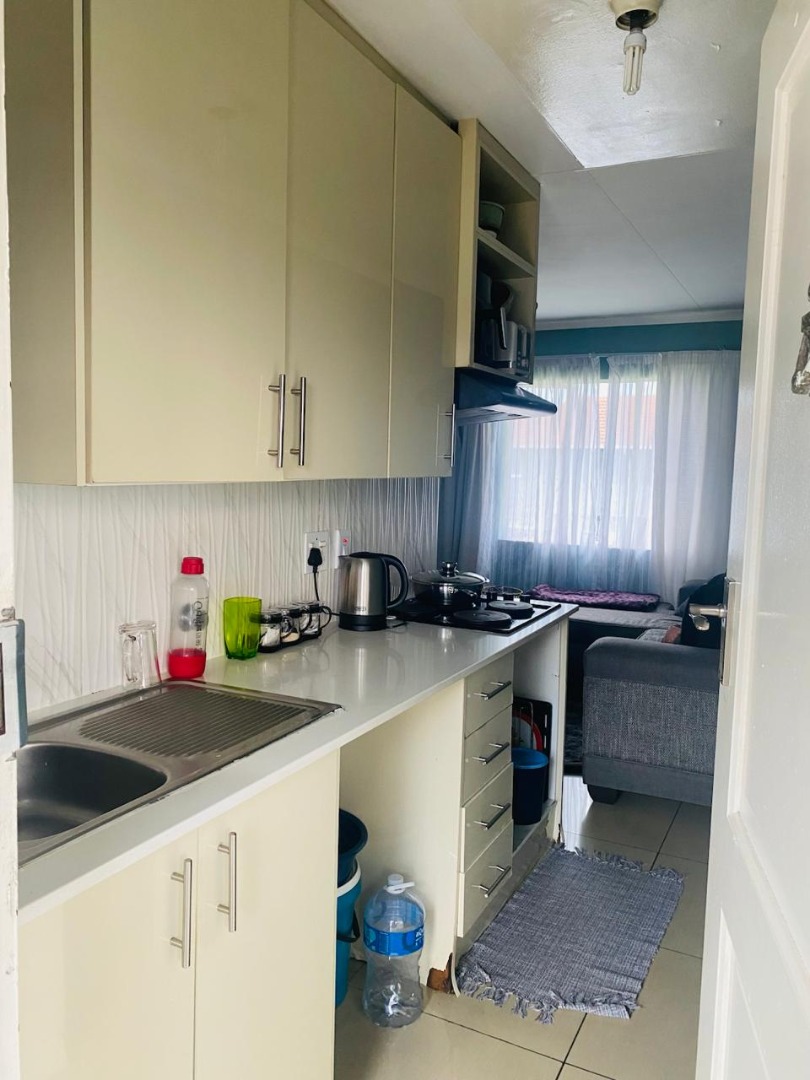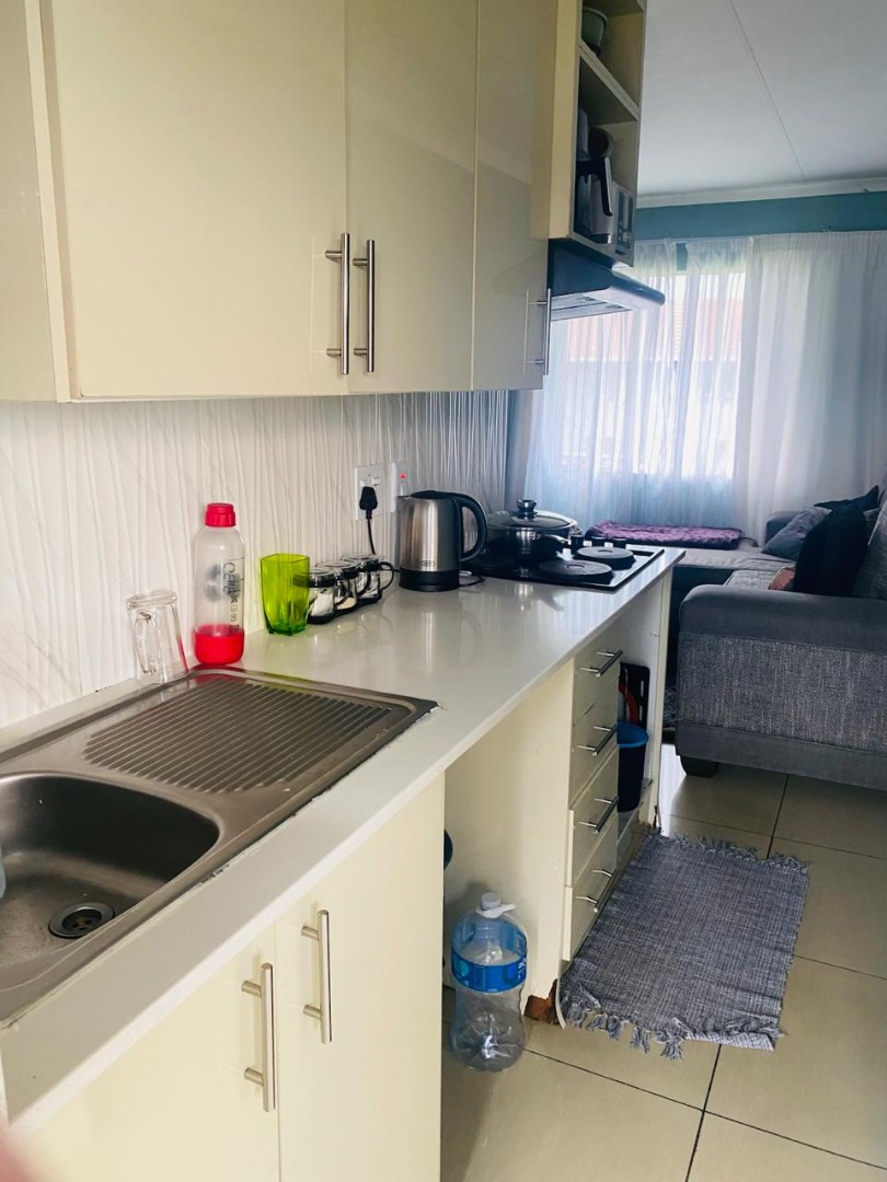 Discover this inviting 2-bedroom, 1-bathroom apartment located within the secure Wood Lake complex in Glen Marais, Kempton Park. Ideal for first-time buyers or investors, this compact 38 sqm unit offers a practical and comfortable living space. The complex features a gated entrance with a security guardhouse and electric fencing, ensuring peace of mind for residents. Paved walkways and dedicated parking enhance convenience within this established community. The interior boasts an open-plan layout, seamlessly connecting the living area with a modern kitchen. The kitchen is equipped with contemporary light-colored cabinets, an integrated hob, and a stainless steel sink, benefiting from natural light. The adjacent lounge area is cozy, featuring tiled flooring and ample natural light from a large window, creating a bright and welcoming atmosphere. Both bedrooms are designed for comfort, offering natural light and built-in wardrobes for practical storage solutions. The single bathroom includes standard fixtures and tiled walls, providing a functional space. Residents can also enjoy access to a communal swimming pool, perfect for relaxation and recreation. Security is a priority, with features including a security post, access gate, electric fencing, and burglar bars on windows and doors, contributing to a safe environment. The property includes one dedicated parking bay. Situated in Glen Marais, Kempton Park, this location offers accessibility to local amenities and transport routes. Key Features: * 2 Bedrooms, 1 Bathroom * Open-plan living and kitchen * Modern kitchen cabinetry * Communal swimming pool * Gated complex with security guardhouse * Electric fencing and burglar bars * Dedicated parking bay * 38 sqm Floor Size