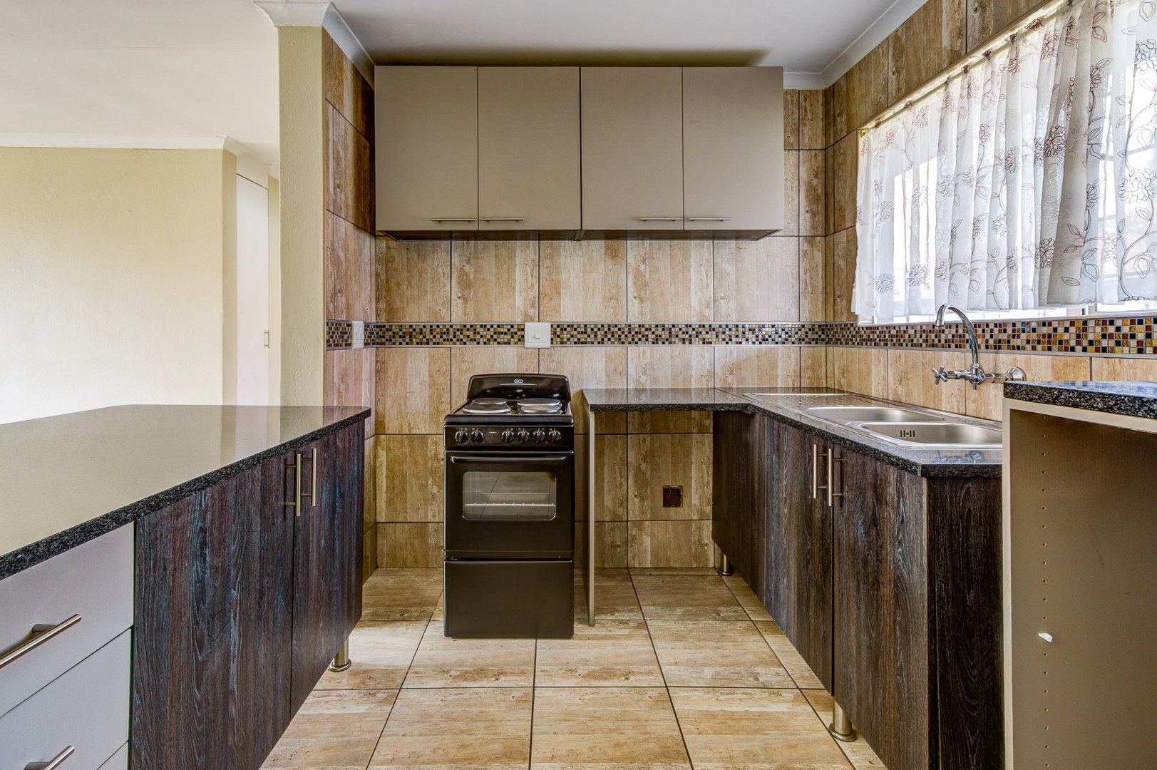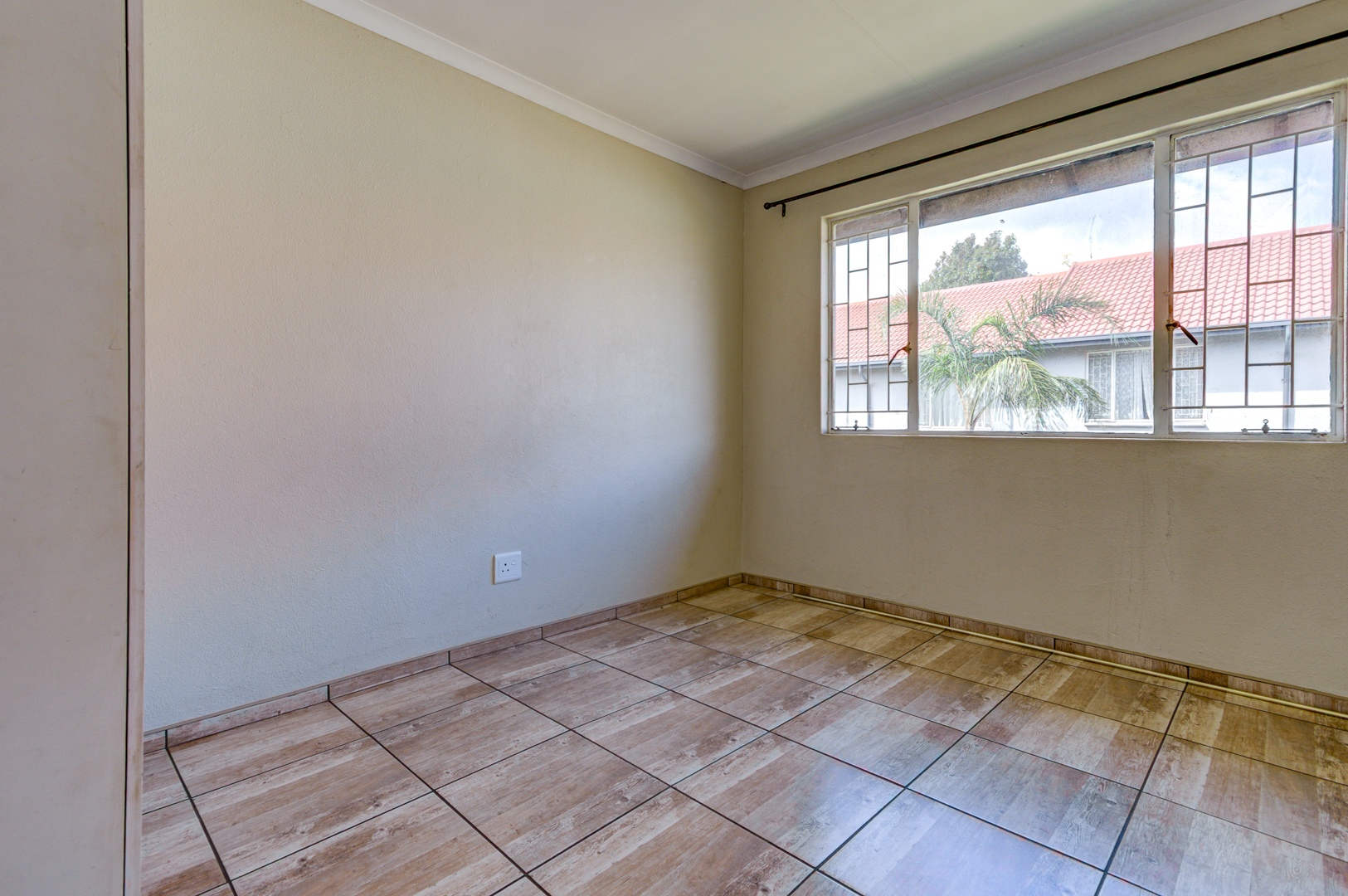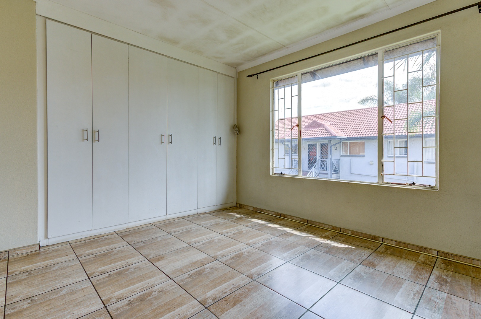 2 spacious, tiled bedrooms with built-in cupboards