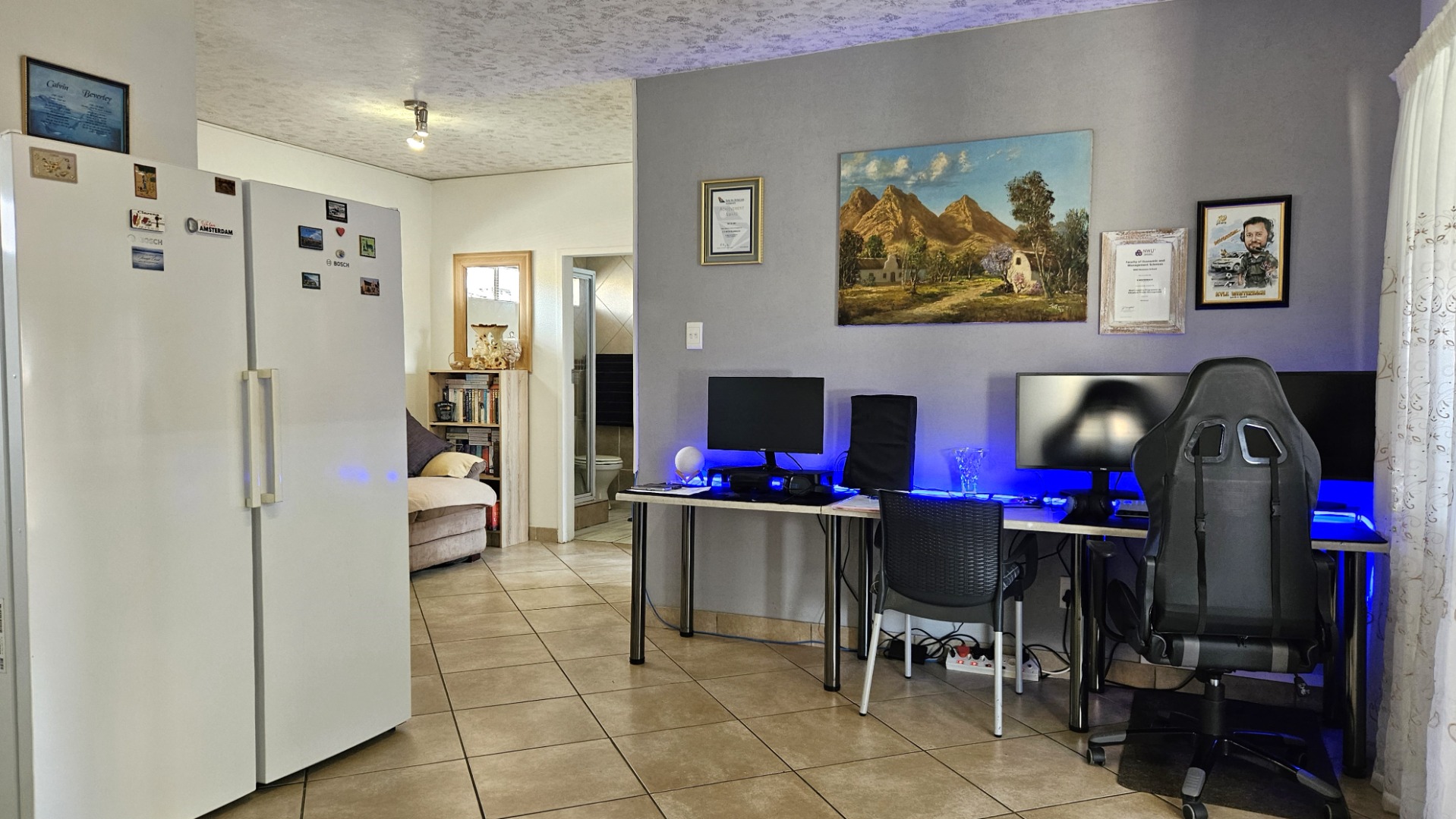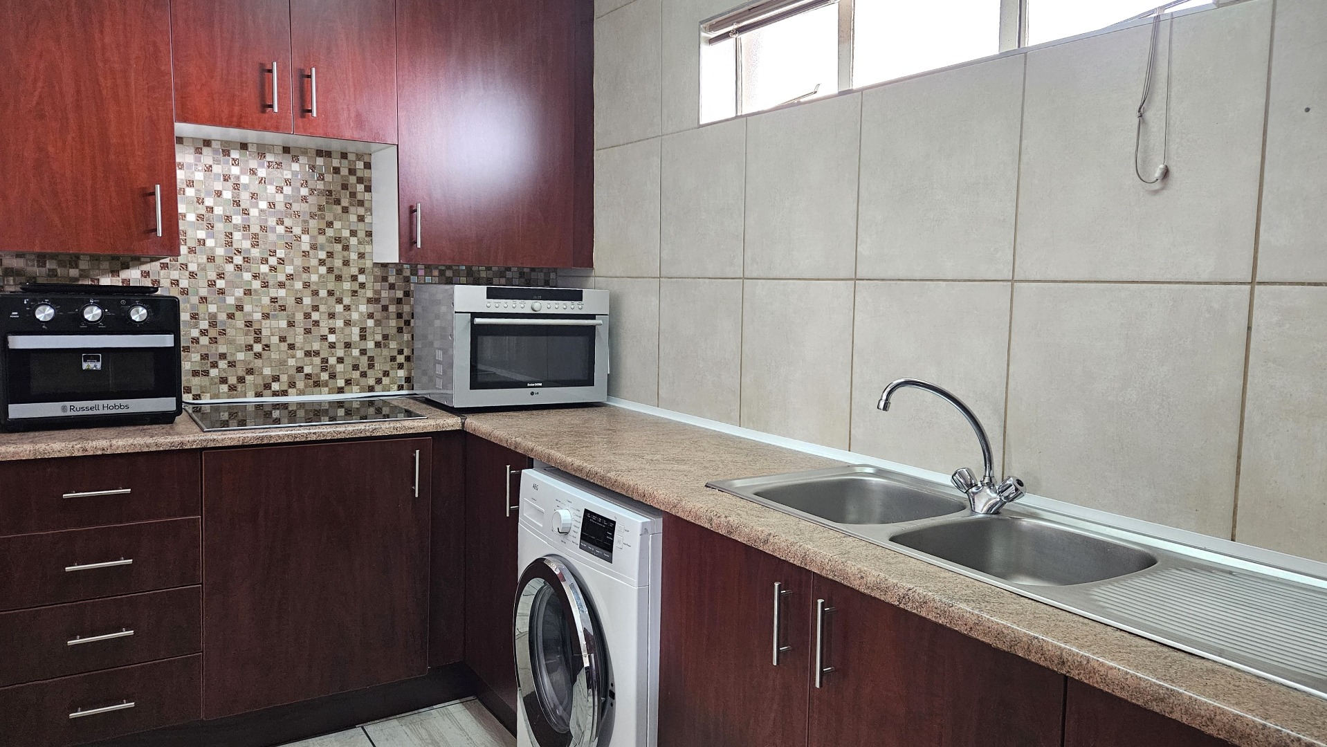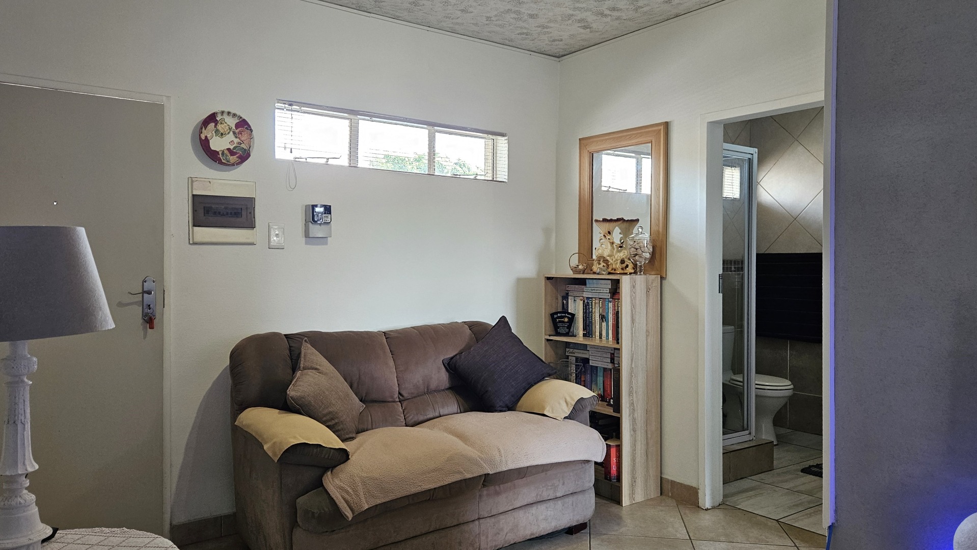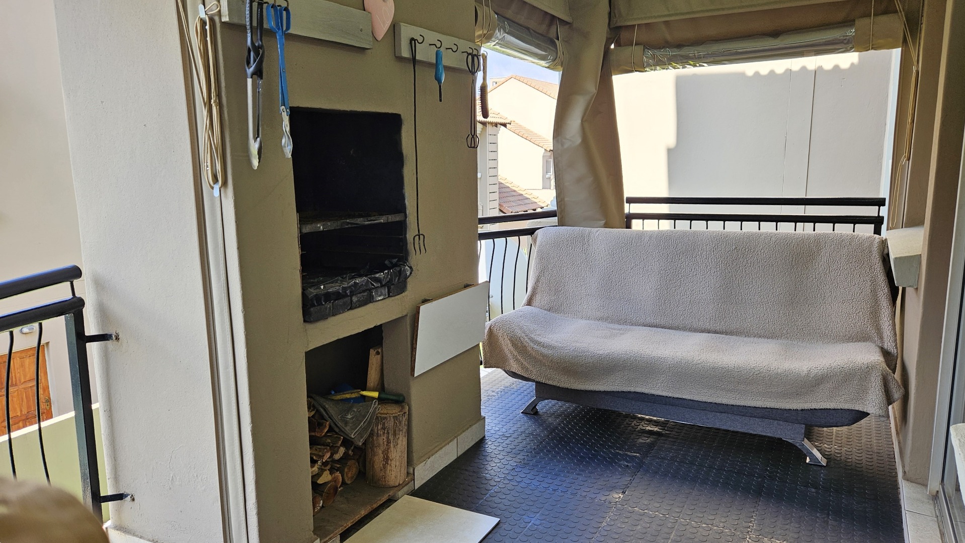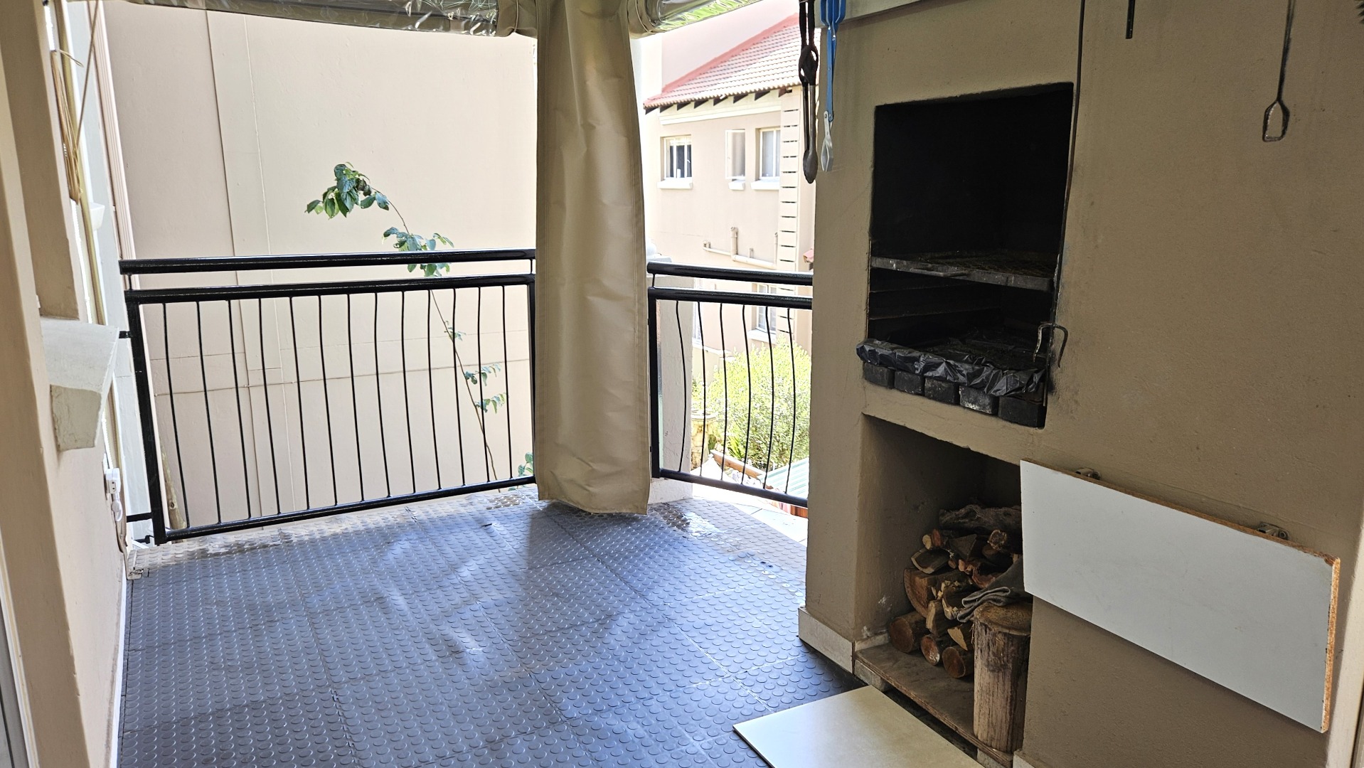 Situated on the first floor, this home offers an open plan lounge and dining area that leads out to the enclosed balcony with built-in braai, along with a spacious entrance hall.