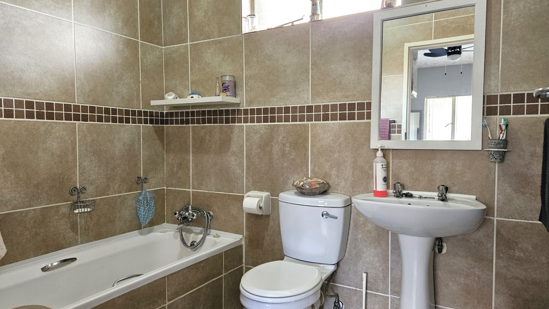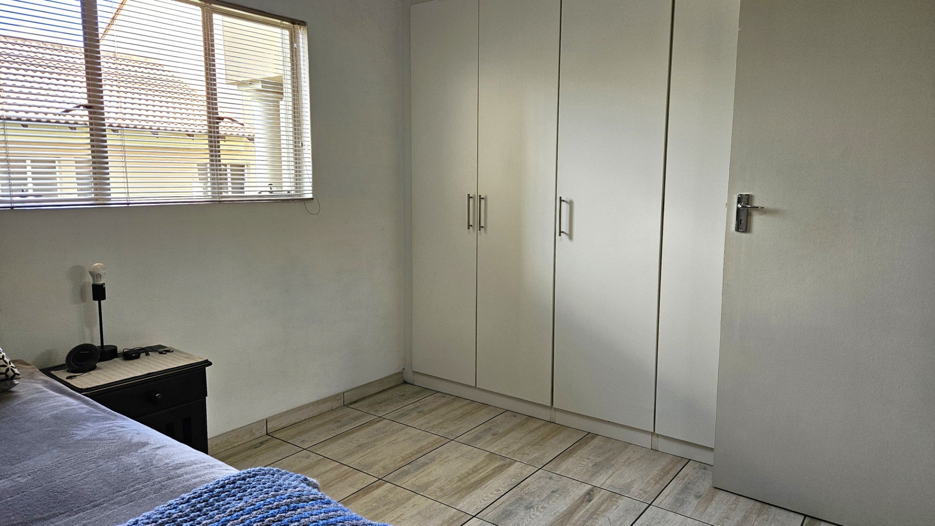 There are 2 bedrooms with tiled floors, built-in cupboards and built-in study desks.