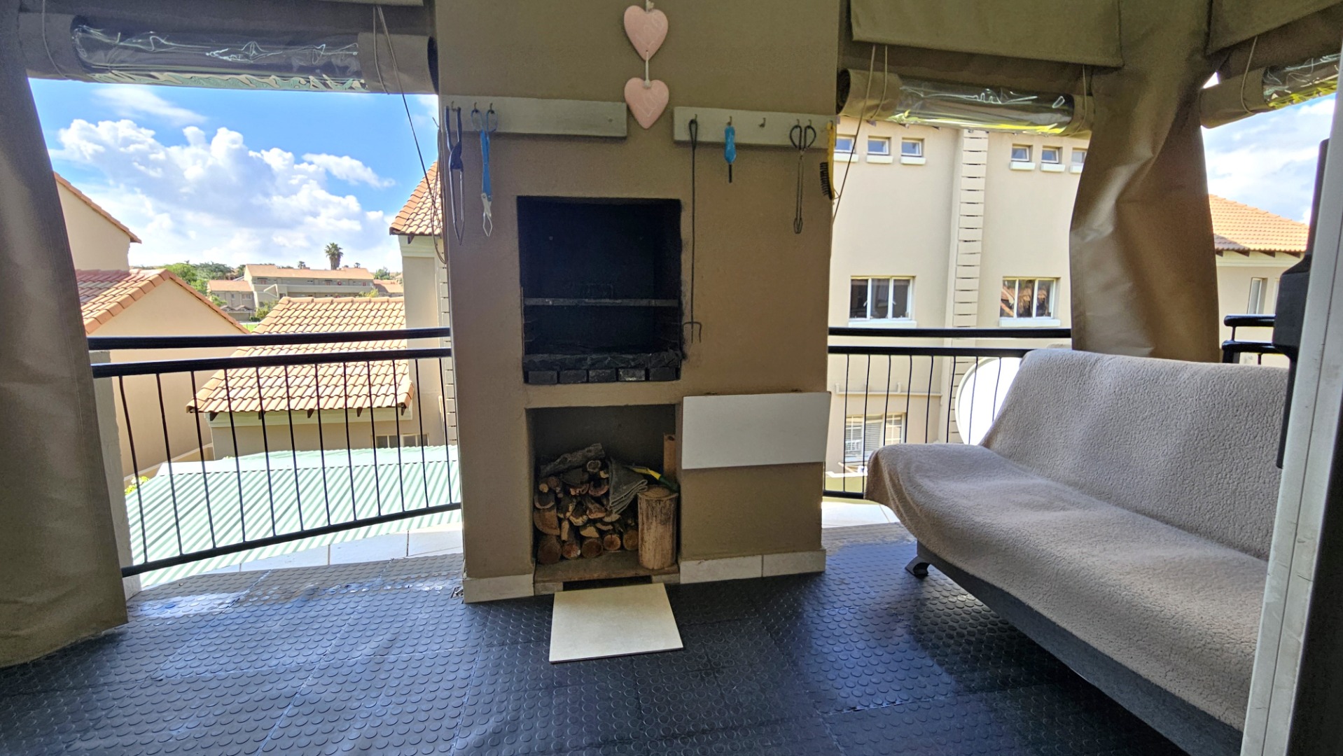 Situated on the first floor, this home offers an open plan lounge and dining area that leads out to the enclosed balcony with built-in braai, along with a spacious entrance hall.