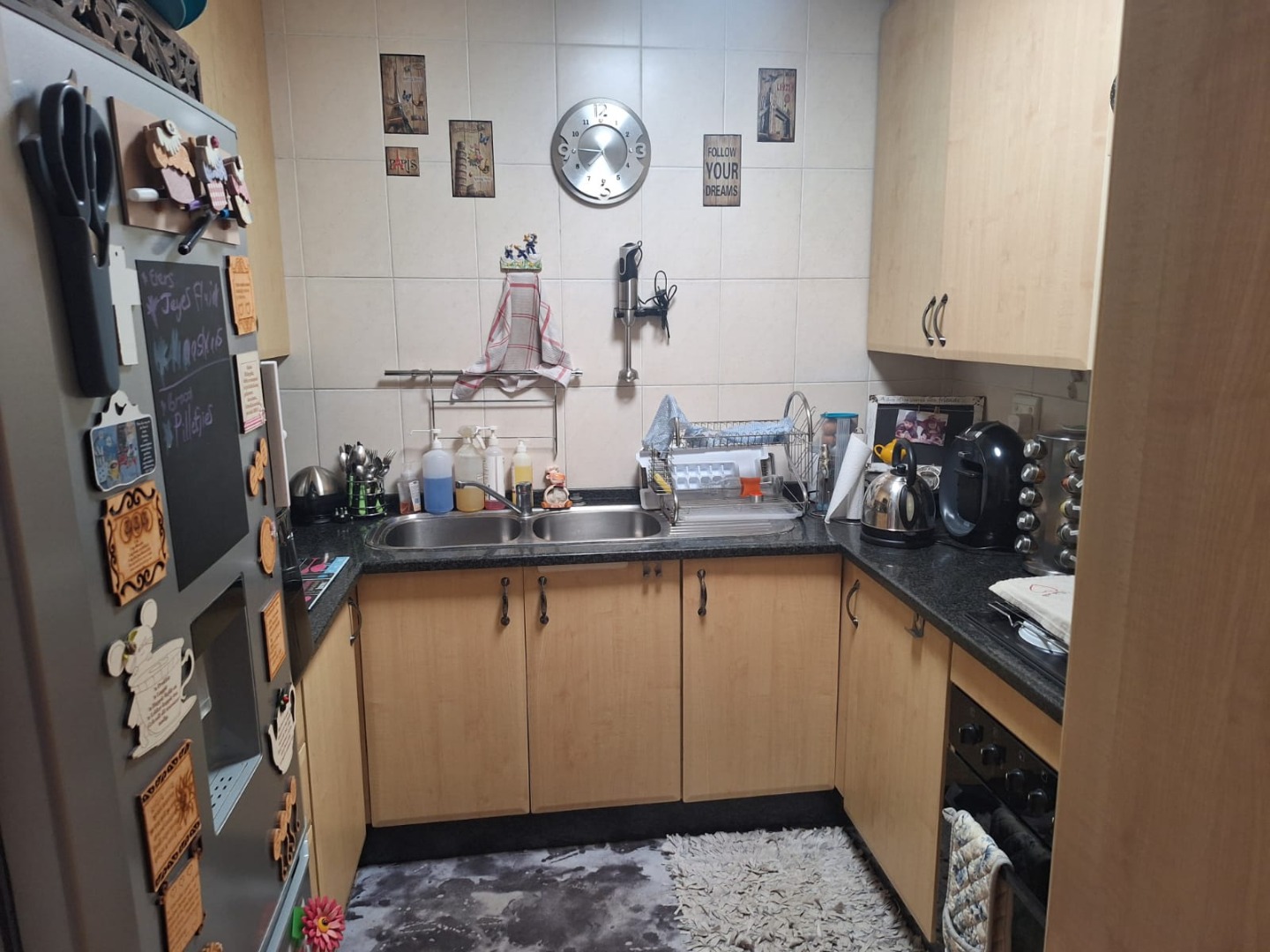 The residence features two generously sized bedrooms and two bathrooms, providing ample space and privacy. The living areas include a dedicated lounge and a dining room, offering distinct spaces for relaxation and entertaining. A functional kitchen is also present, ready to cater to your culinary needs.
