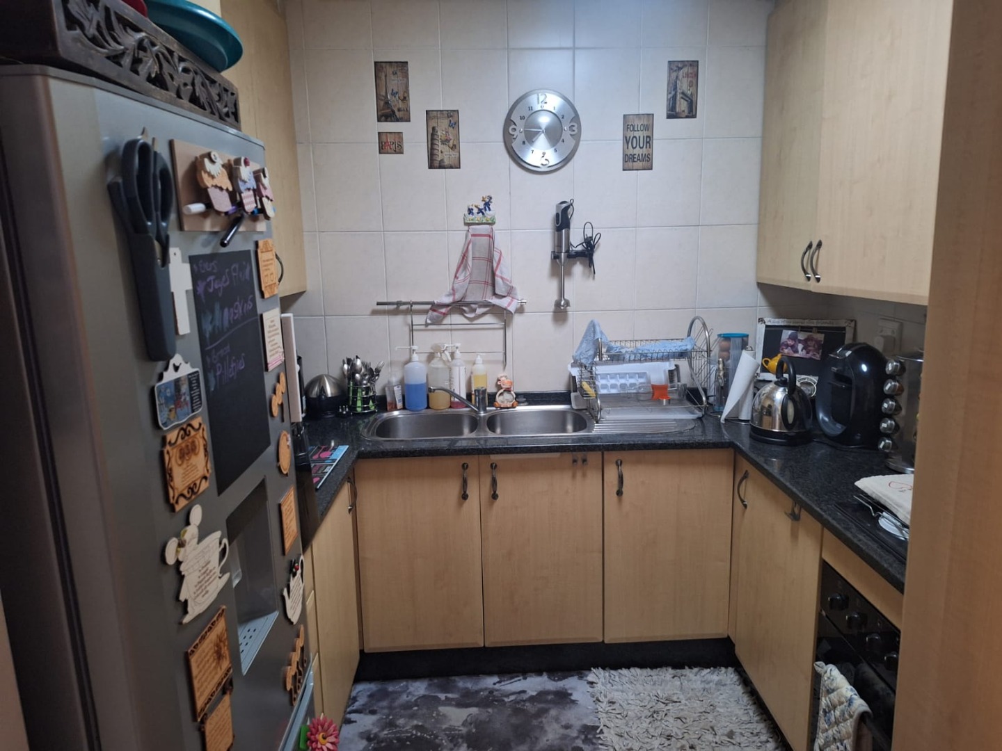 The residence features two generously sized bedrooms and two bathrooms, providing ample space and privacy. The living areas include a dedicated lounge and a dining room, offering distinct spaces for relaxation and entertaining. A functional kitchen is also present, ready to cater to your culinary needs.
