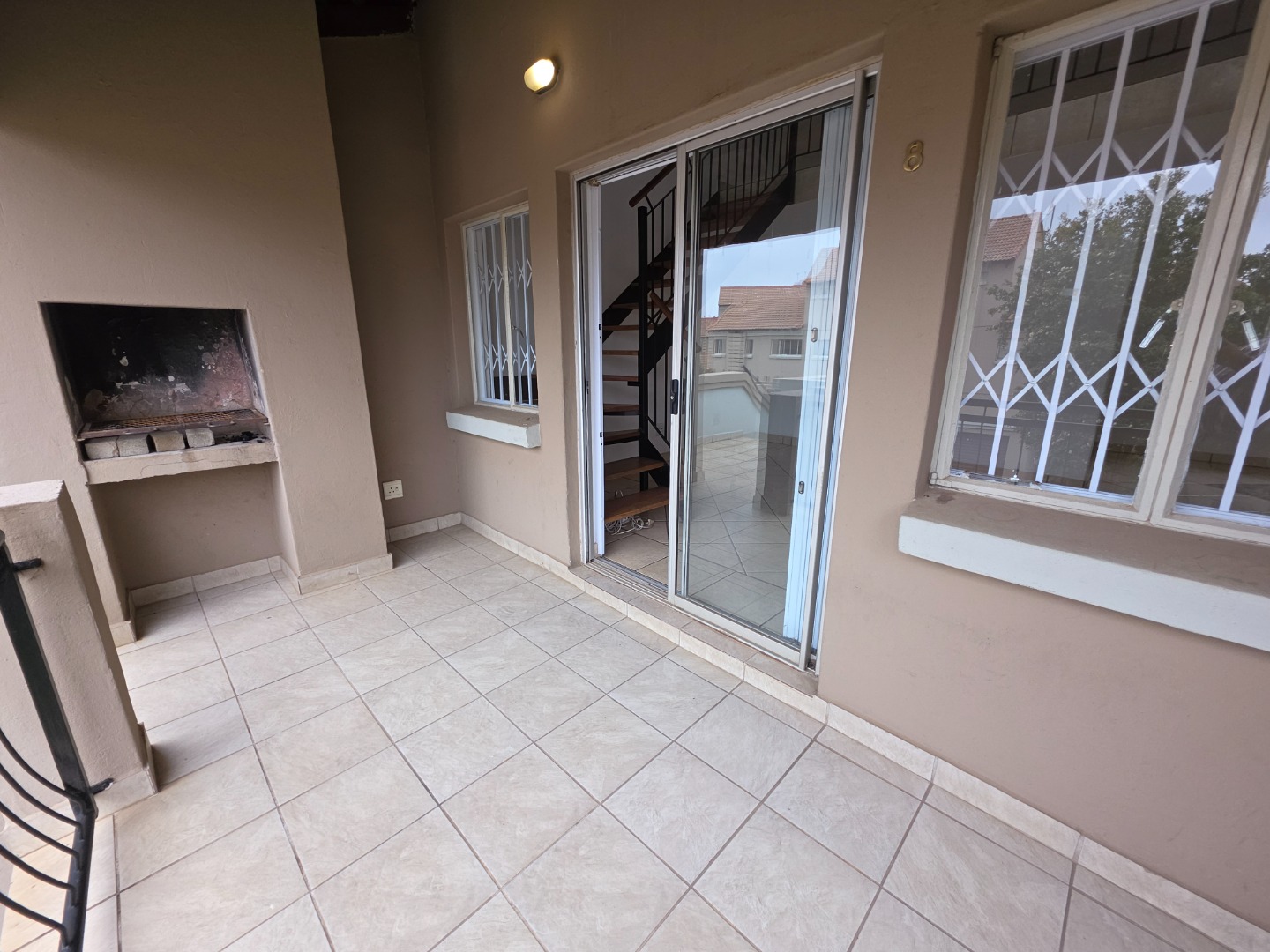 Outdoor amenities include a private balcony and a built-in braai, perfect for relaxation and entertaining. Residents also benefit from access to a communal swimming pool within the complex. For connectivity, the unit is fibre-ready. Glen Marais, situated in Kempton Park, is a well-established suburban area known for its convenient access to amenities, schools, and major transport routes, making it an ideal location for a balanced lifestyle.