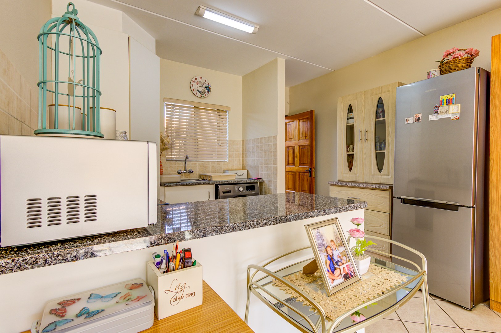 Neat little gem... This klinker unit offers a tiled open plan lounge leading to the garden. A tiled kitchen with under counter oven, hob, breakfast counter and space for a dishwasher. 2 Laminated bedrooms with built-in cupboards. Tiled full bathroom with bath and shower. A single garage situated directly at the unit for convenience. Close to schools and all amenities. A true pleasure to view.