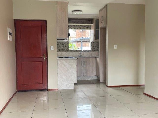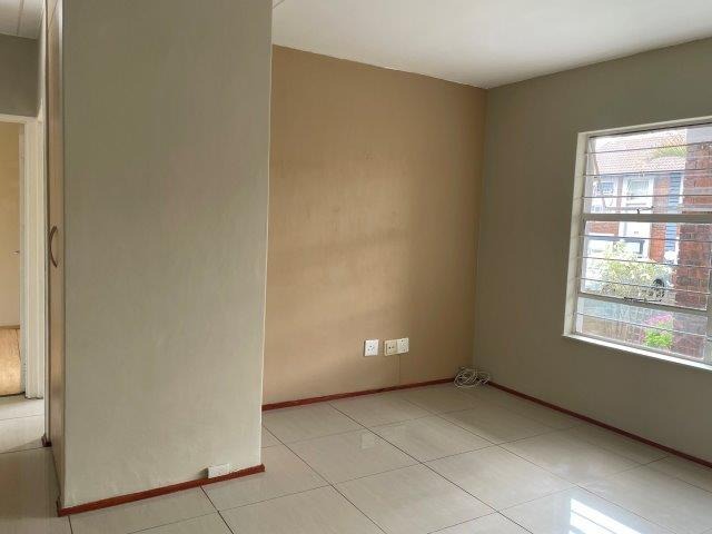 Ground floor, freshly painted and upgraded townhouse is looking to welcome new owners. Walled garden and painted paved patio in the front yard leads to the front French door and security gate. Open plan lounge and kitchen, down the passage are 2 bedrooms with laminated and plenty of cupboard space and a modern bathroom. In the passage is a laundry cupboard with plumbing and electricity for your washing machine. IBR carport and additional visitors parking in the complex. Swimming pool, Lapa and tennis court in the complex. Fibre is available in the complex.