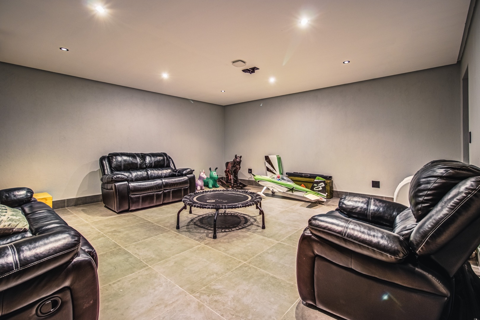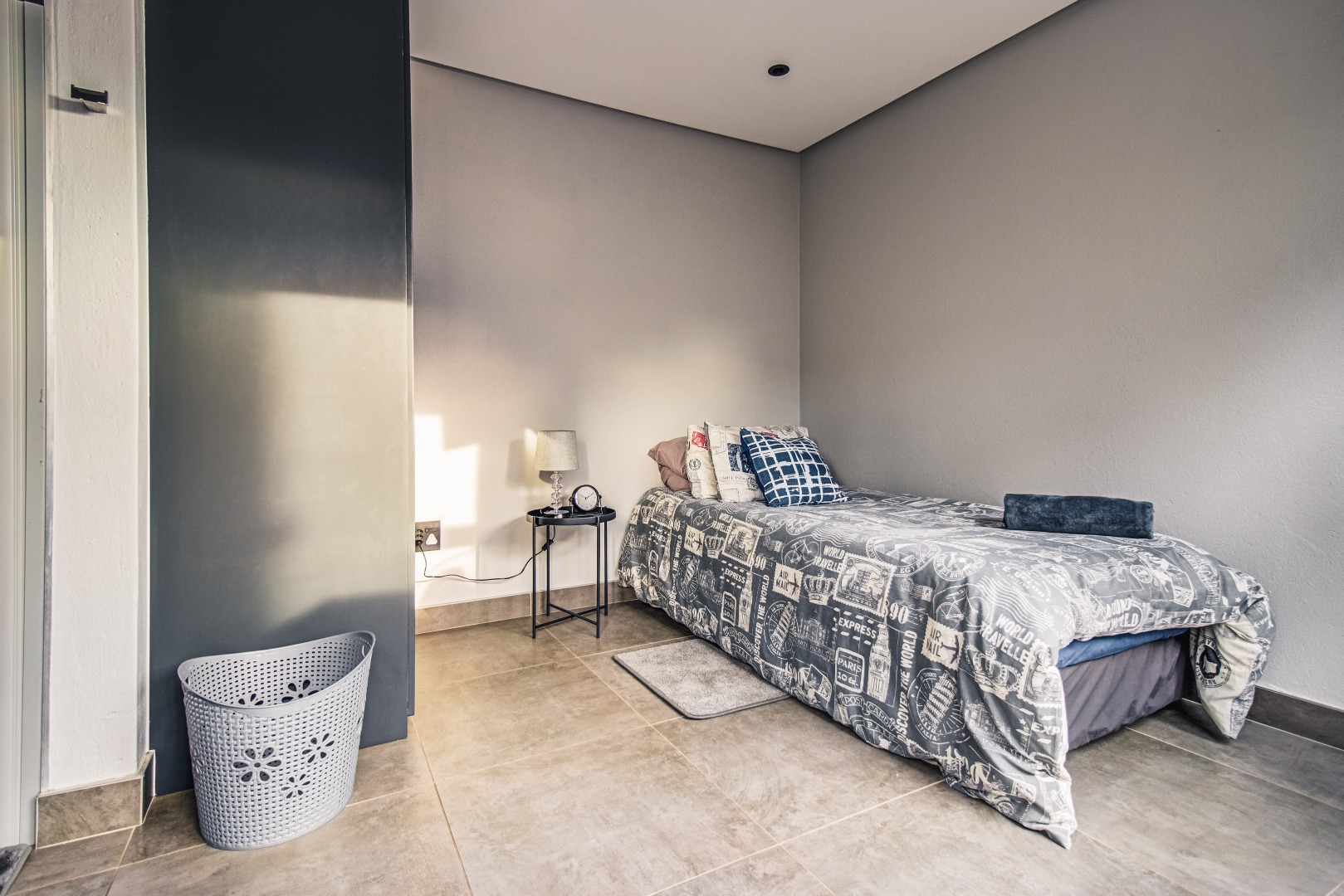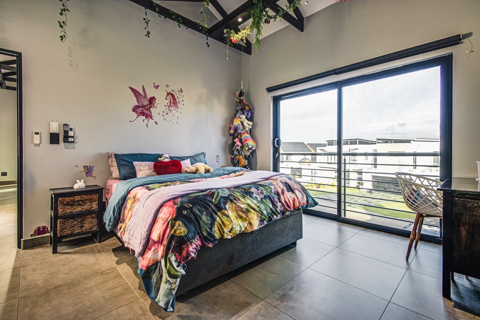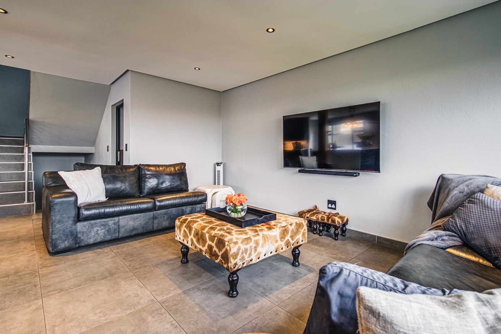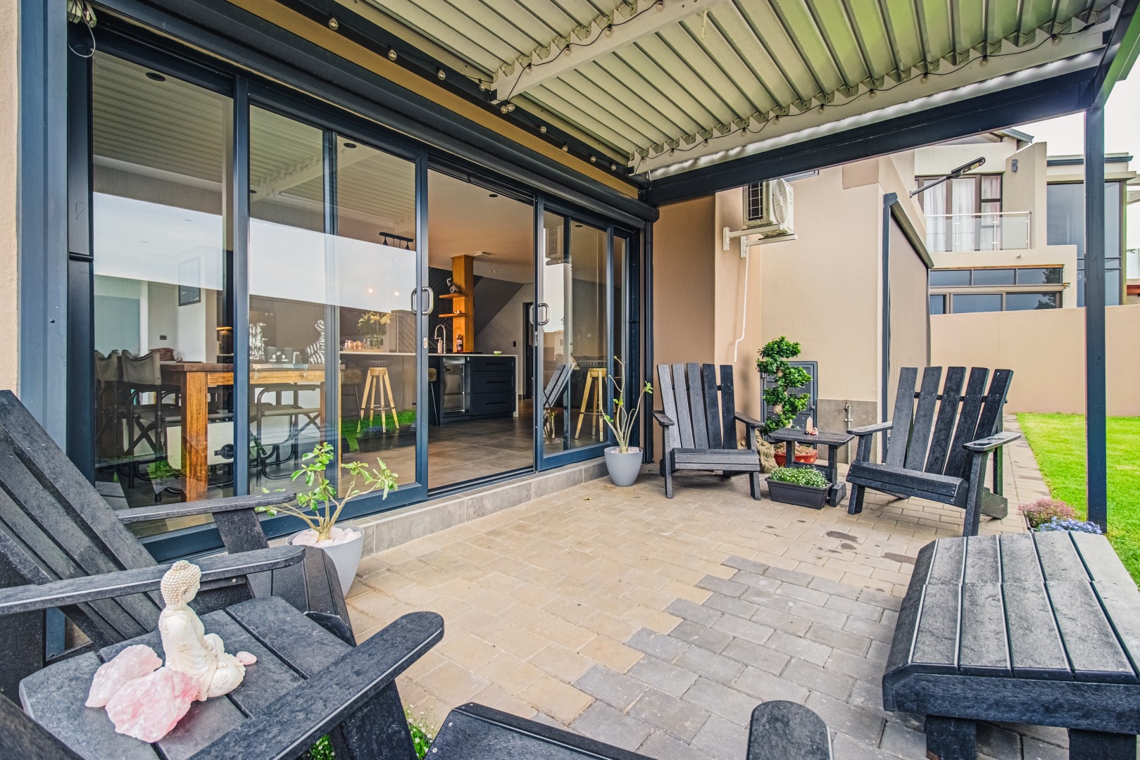 Outdoor living is equally inviting, with large sliding glass doors leading to a private patio area complete with a built-in braai, perfect for entertaining. The property includes a well-maintained garden and staff quarters. Parking is ample with two garages and additional space for a trailer and motorbike with direct access to your home. For enhanced comfort, the home is equipped with air conditioning and automated blinds.