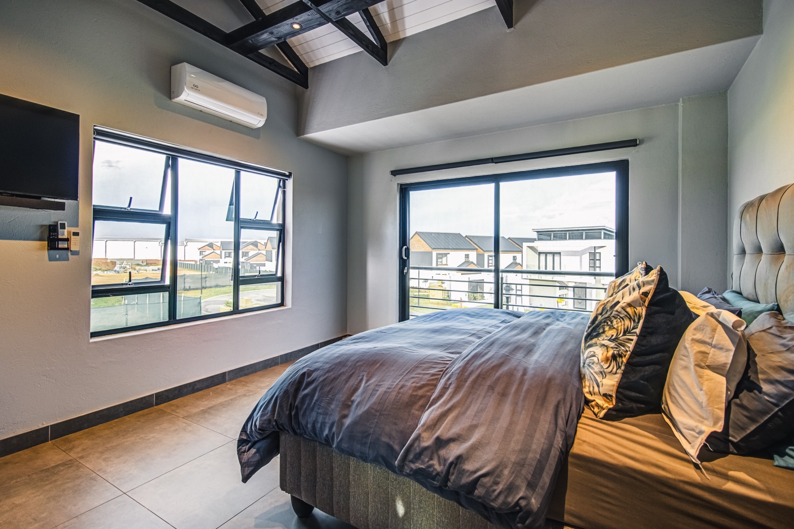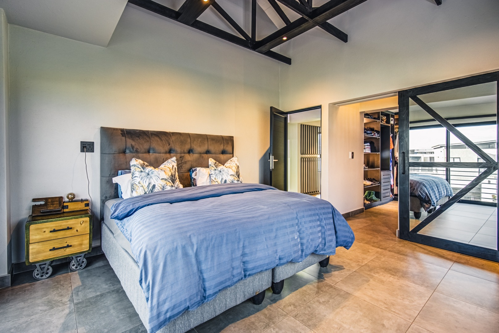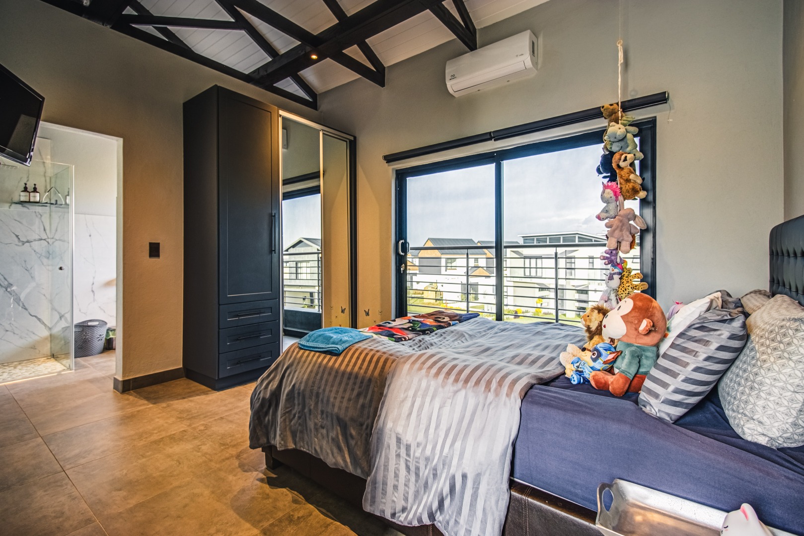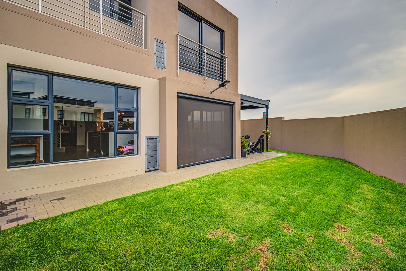 Outdoor living is equally inviting, with large sliding glass doors leading to a private patio area complete with a built-in braai, perfect for entertaining. The property includes a well-maintained garden and staff quarters. Parking is ample with two garages and additional space for a trailer and motorbike with direct access to your home. For enhanced comfort, the home is equipped with air conditioning and automated blinds.