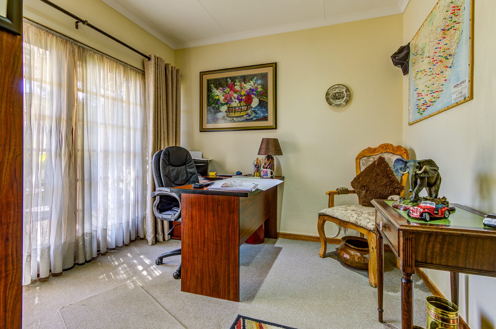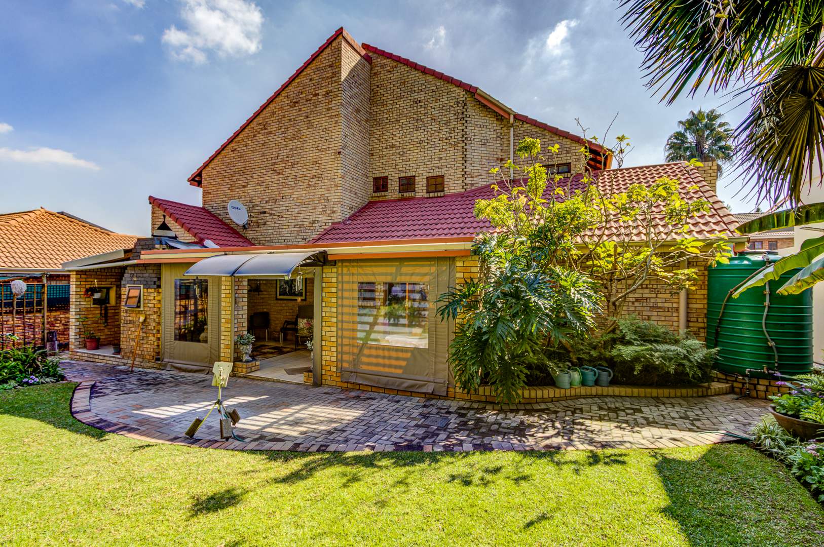 - Covered entertainment patio with braai area, fully tiled and leading to the tranquil garden