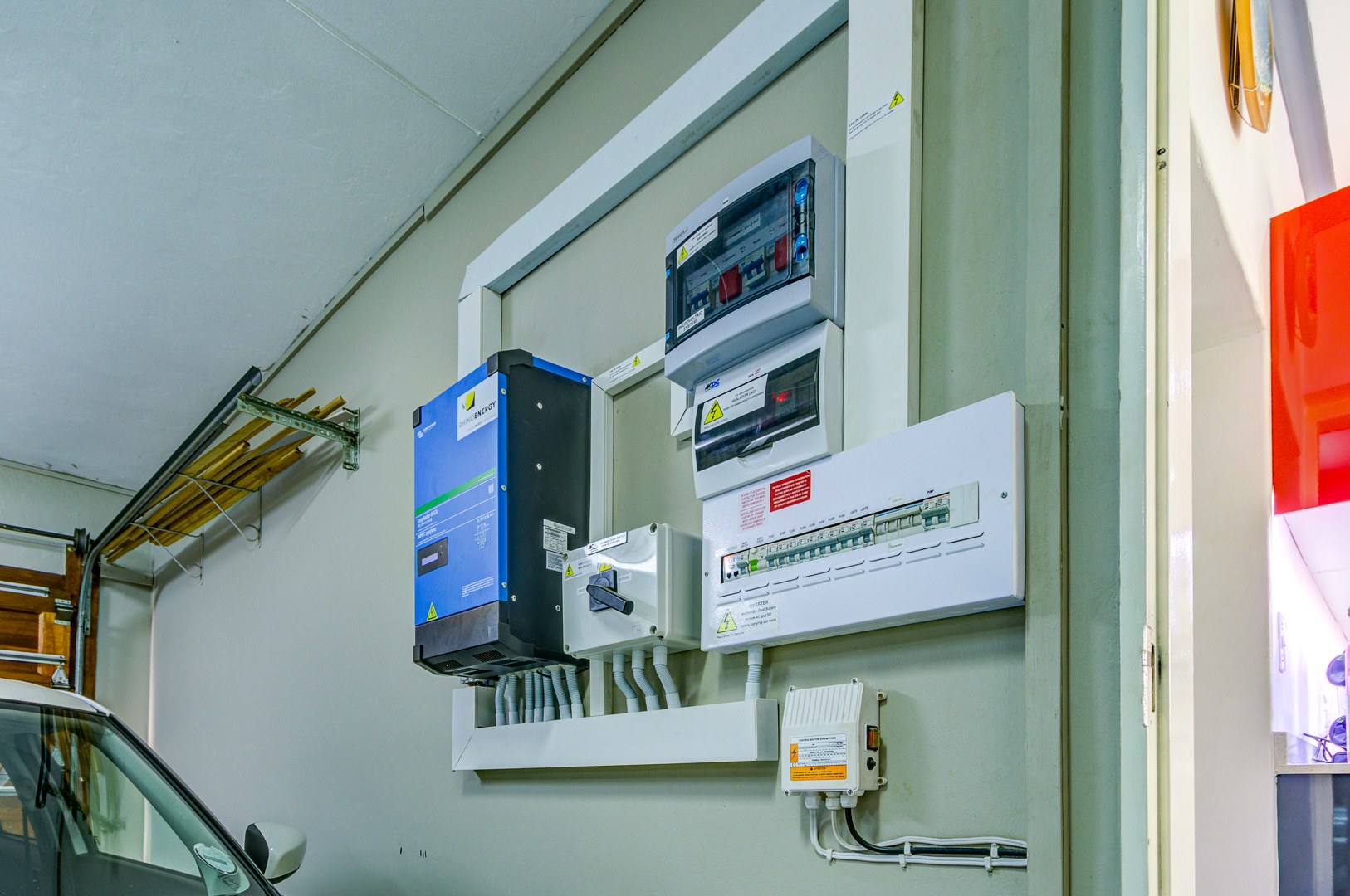 - Automated and very organized double garage with space for washing machine and dryer