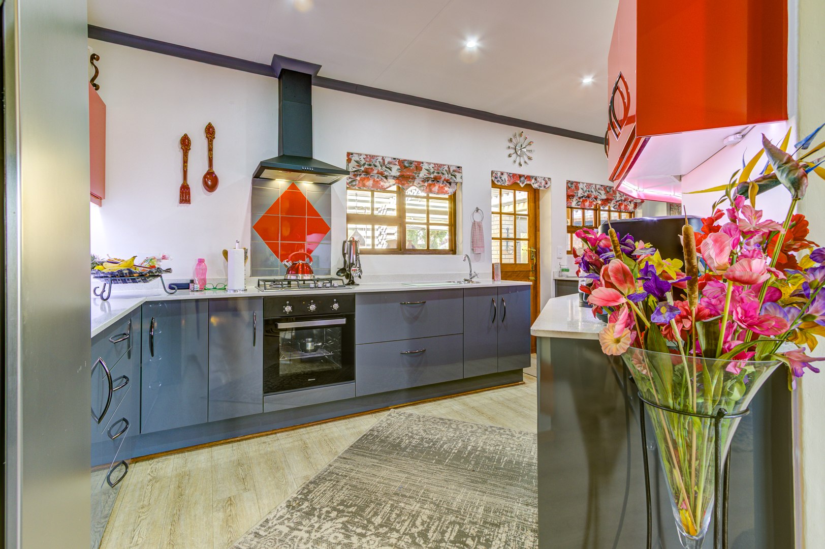 - Modern Kitchen with ample cupboard space, perfect for the home chef. The separate scullery provides added practicality and keeps the main kitchen area tidy.