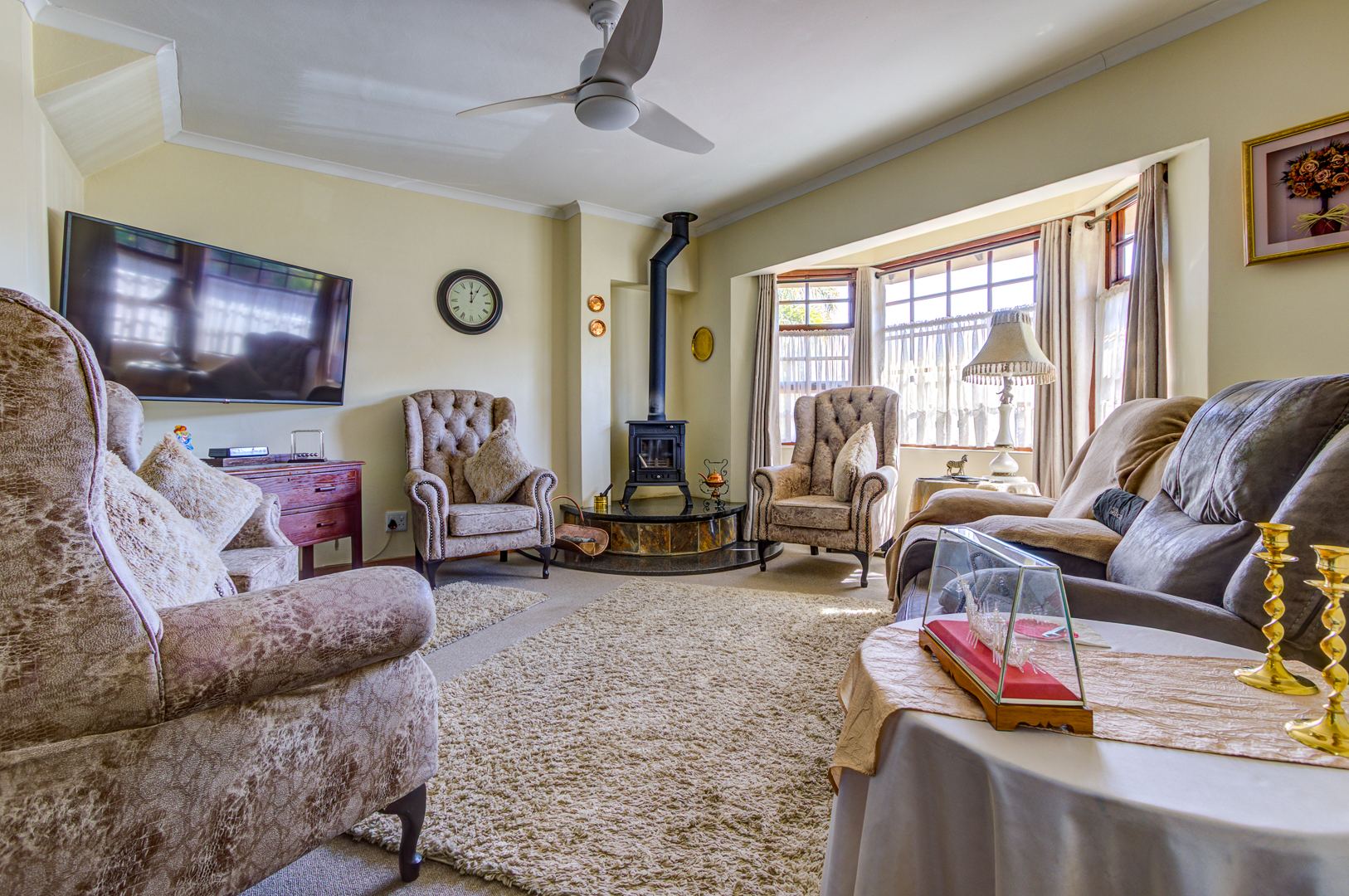 - Covered entertainment patio with braai area, fully tiled and leading to the tranquil garden