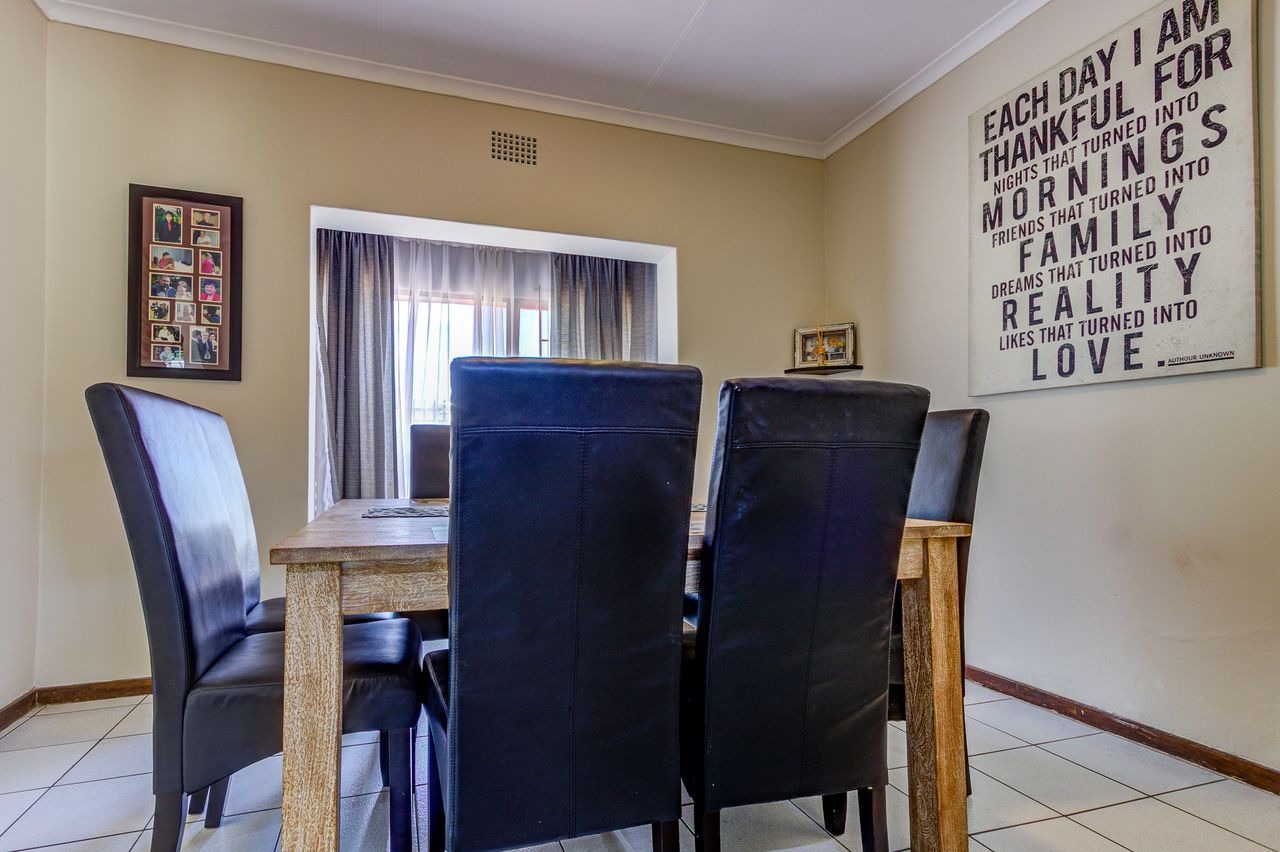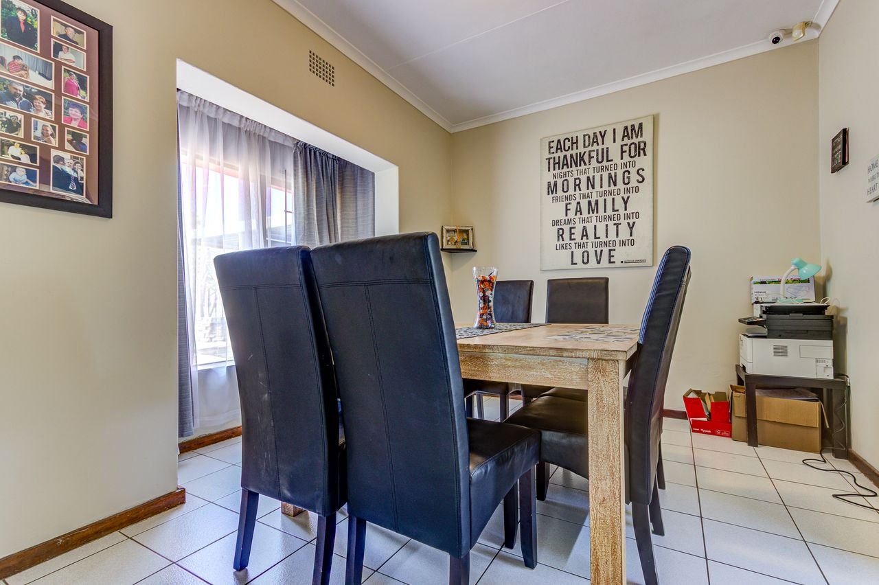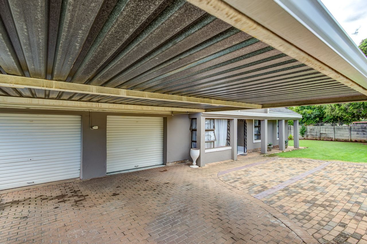 Discover this inviting family home in Glen Marais, Kempton Park, presenting a well-maintained exterior with a neutral grey facade and a durable tiled roof. The property boasts a spacious paved driveway leading to a double carport and two garages, ensuring ample parking for residents and guests. A security gate at the front entrance enhances peace of mind, complementing the established garden.