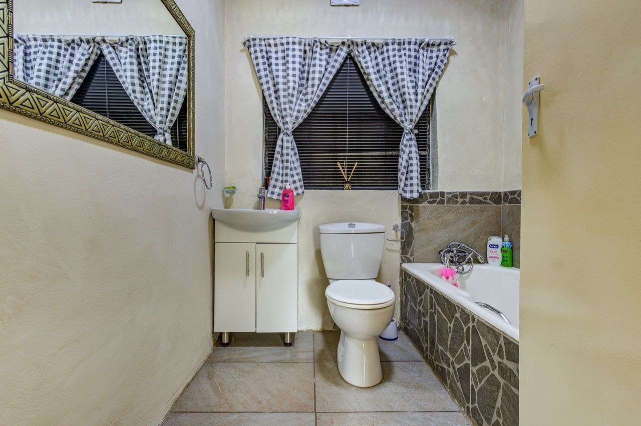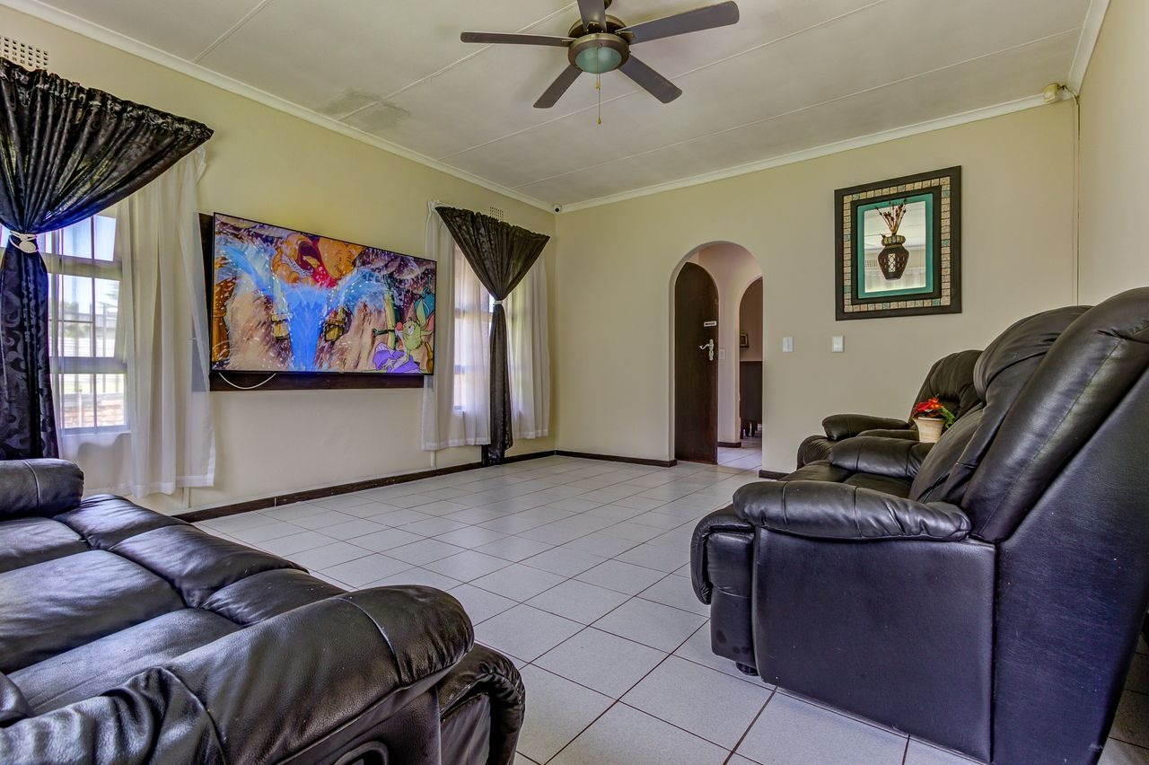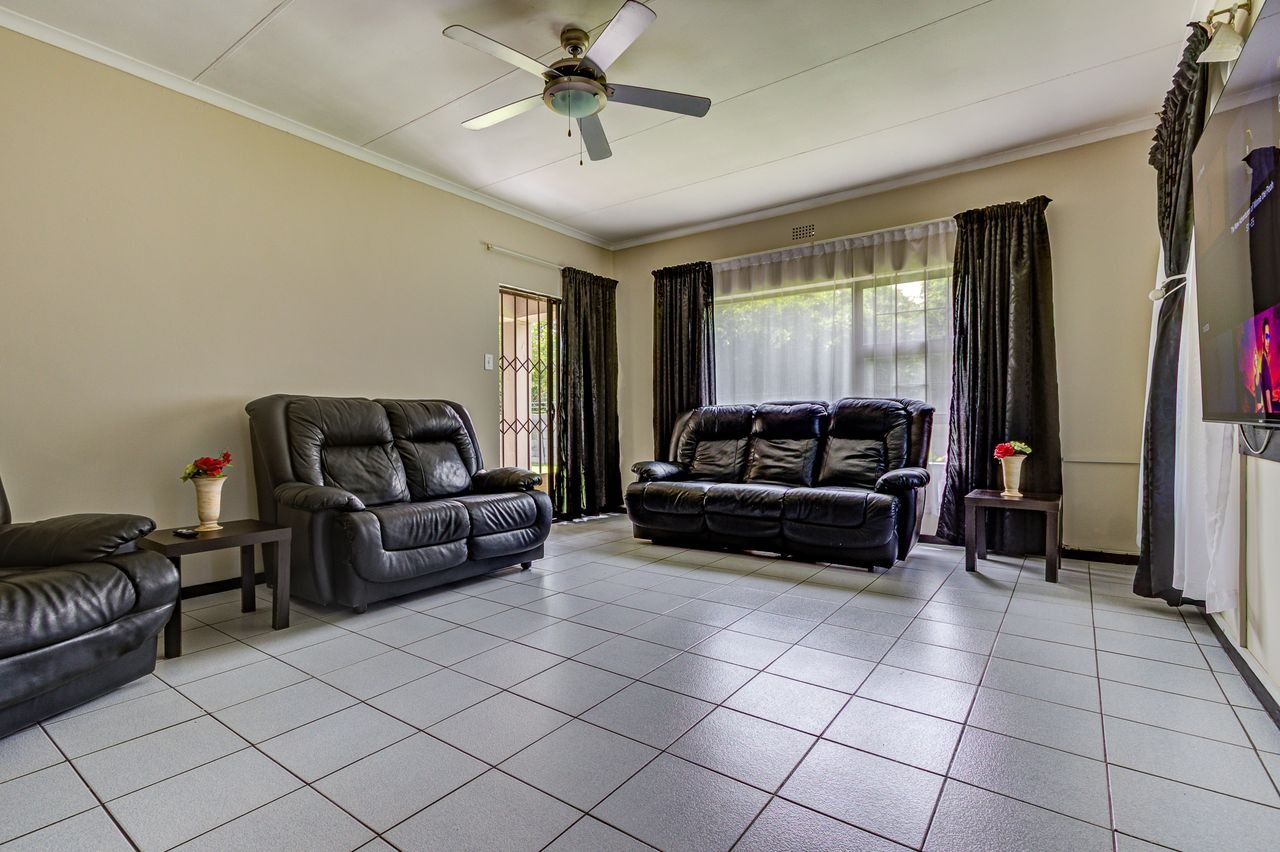 Discover this inviting family home in Glen Marais, Kempton Park, presenting a well-maintained exterior with a neutral grey facade and a durable tiled roof. The property boasts a spacious paved driveway leading to a double carport and two garages, ensuring ample parking for residents and guests. A security gate at the front entrance enhances peace of mind, complementing the established garden.