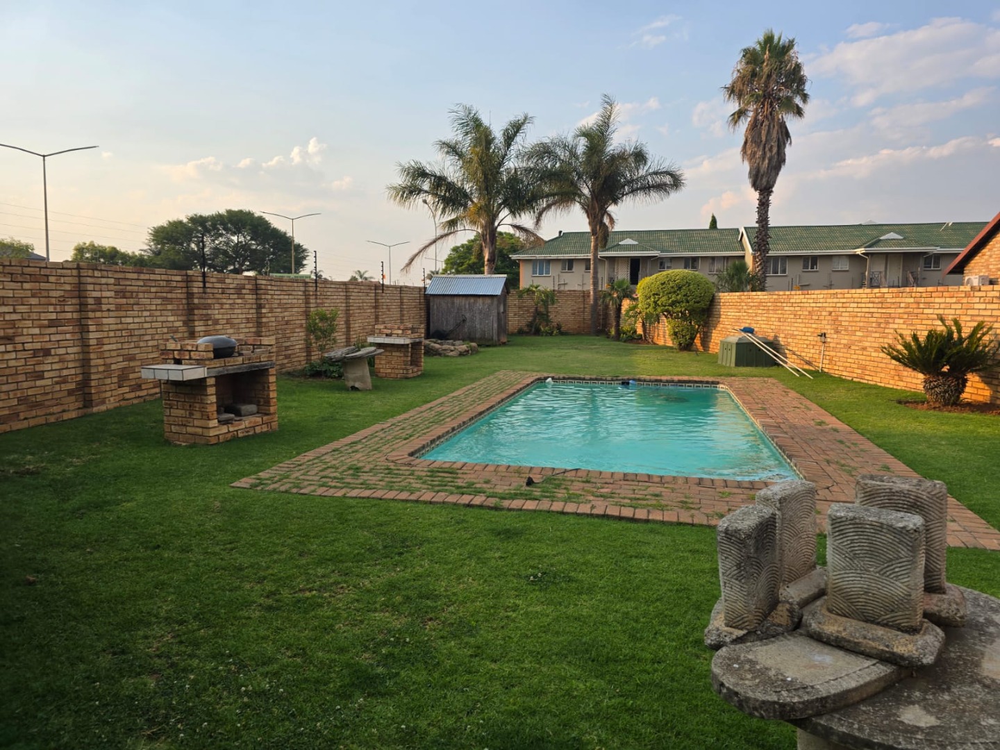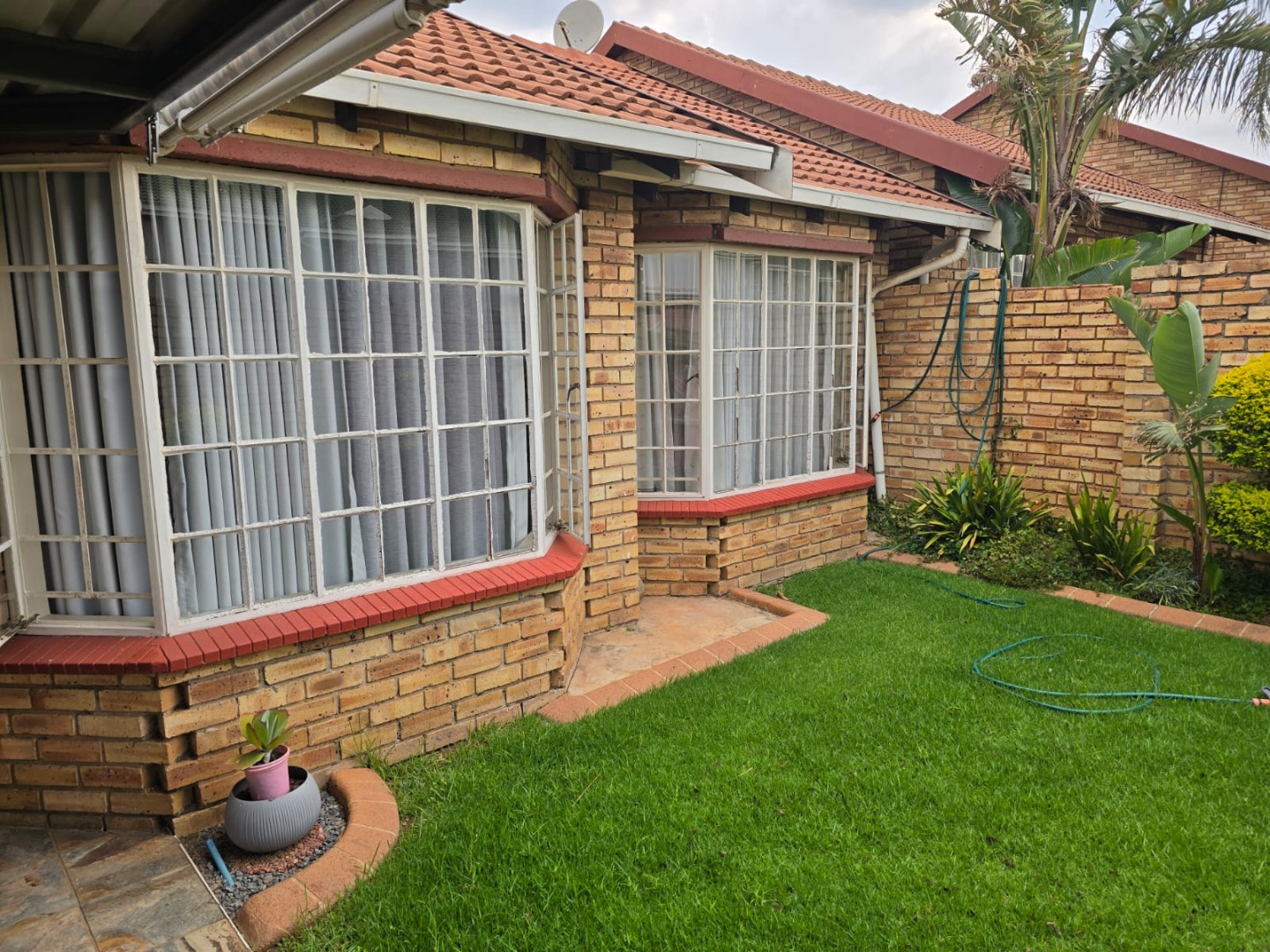 This meticulously maintained townhouse, situated within a secure complex in Glen Marais, Kempton Park, South Africa, presents an exceptional residential opportunity. The property immediately conveys a sense of security and order, featuring a robust gated entrance, durable brick construction, and well-kept landscaping. An integrated ADT security system and a double garage further enhance its appeal and functionality, providing ample parking for up to four vehicles. Spanning 142 square meters, the interior is thoughtfully designed for contemporary living. The lounge area boasts sleek tiled flooring, an accent wallpaper feature, and recessed lighting, creating an inviting ambiance. A prominent fireplace offers a focal point and potential heating. The functional galley-style kitchen is equipped with light-colored cabinetry, granite-look countertops, an integrated gas hob and oven, and tiled floors, accommodating essential appliances such as a washing machine and large refrigerator. Accommodation comprises three well-proportioned bedrooms and two bathrooms, providing ample space for residents. The property extends its living experience outdoors with a private patio and a garden area, ideal for relaxation. Practical elements include a paved side path, additional security gates, and a water storage tank, contributing to both convenience and potential water conservation. Ensuring peace of mind, the residence benefits from its location within a security complex, complemented by robust perimeter security and individual unit features. Modern connectivity is assured with fibre infrastructure readily available. Glen Marais, a desirable suburb within Kempton Park, offers convenient access to local amenities and transport routes, making it an attractive location for discerning homeowners. Key Features: * Three Bedrooms, Two Bathrooms * Double Garage, Four Parking Spaces * 142 sqm Floor Size * Secure Complex Environment * Fibre Connectivity * Private Patio and Garden * Integrated Gas Hob and Oven * Water Storage Tank