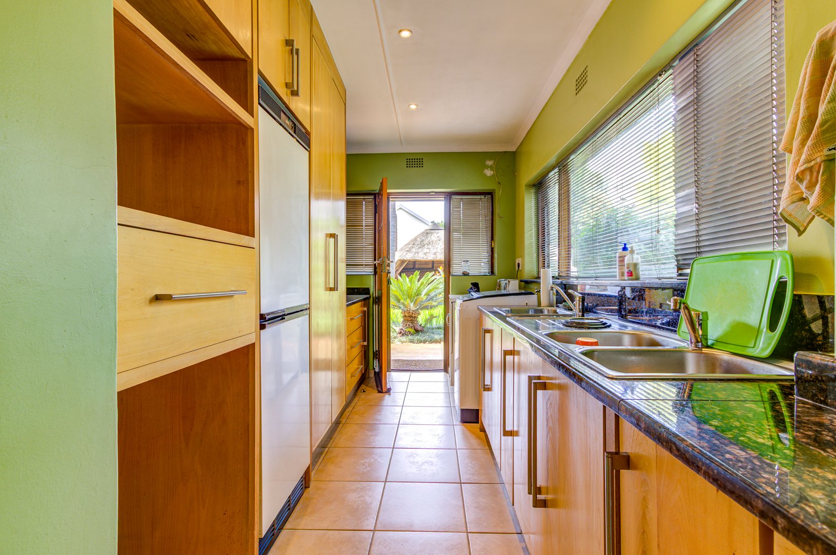 Outdoor living is a highlight, with a private swimming pool perfect for warm South African days. The property also features a built-in braai, ideal for entertaining, and a well-maintained garden. Practical amenities include a double garage, a paved driveway, and domestic rooms.