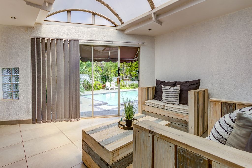Outdoor living is a delight on this expansive 1015 sqm erf. The meticulously maintained garden, complete with paving, provides a beautiful backdrop for outdoor activities. Enjoy leisurely days by the sparkling swimming pool, unwind in the jacuzzi, or host memorable gatherings in the lapa, featuring a built-in braai and a dedicated braai room. Pets are welcome, making this an ideal environment for animal lovers. Parking is ample with two garages and additional parking space, complemented by a convenient driveway.