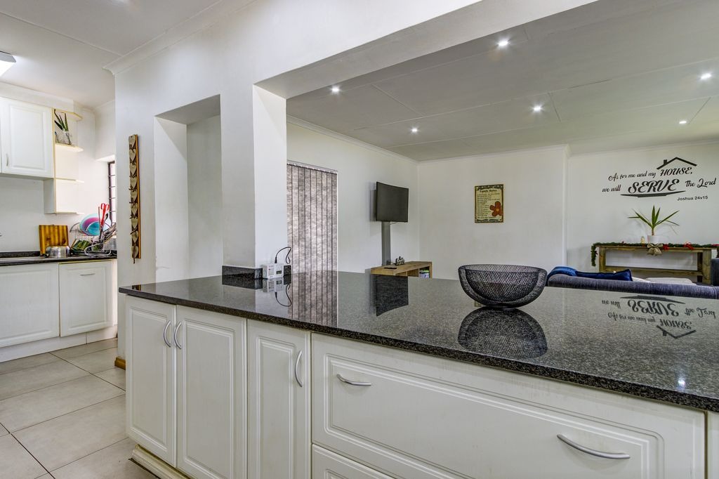 Discover this exceptional family home nestled within a secure gated community in the sought-after suburb of Glen Marais, Kempton Park. Presenting a harmonious blend of comfort and functionality, this property offers an inviting kerb appeal with its well-maintained white exterior, dark tiled roof, and lush, mature tropical landscaping. A spacious paved driveway leads to both an attached garage and a versatile detached outbuilding, hinting at the property's generous offerings.