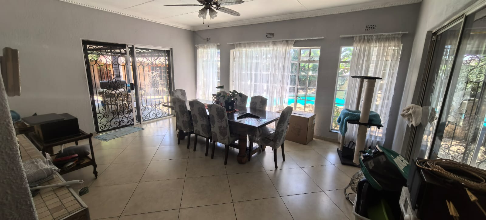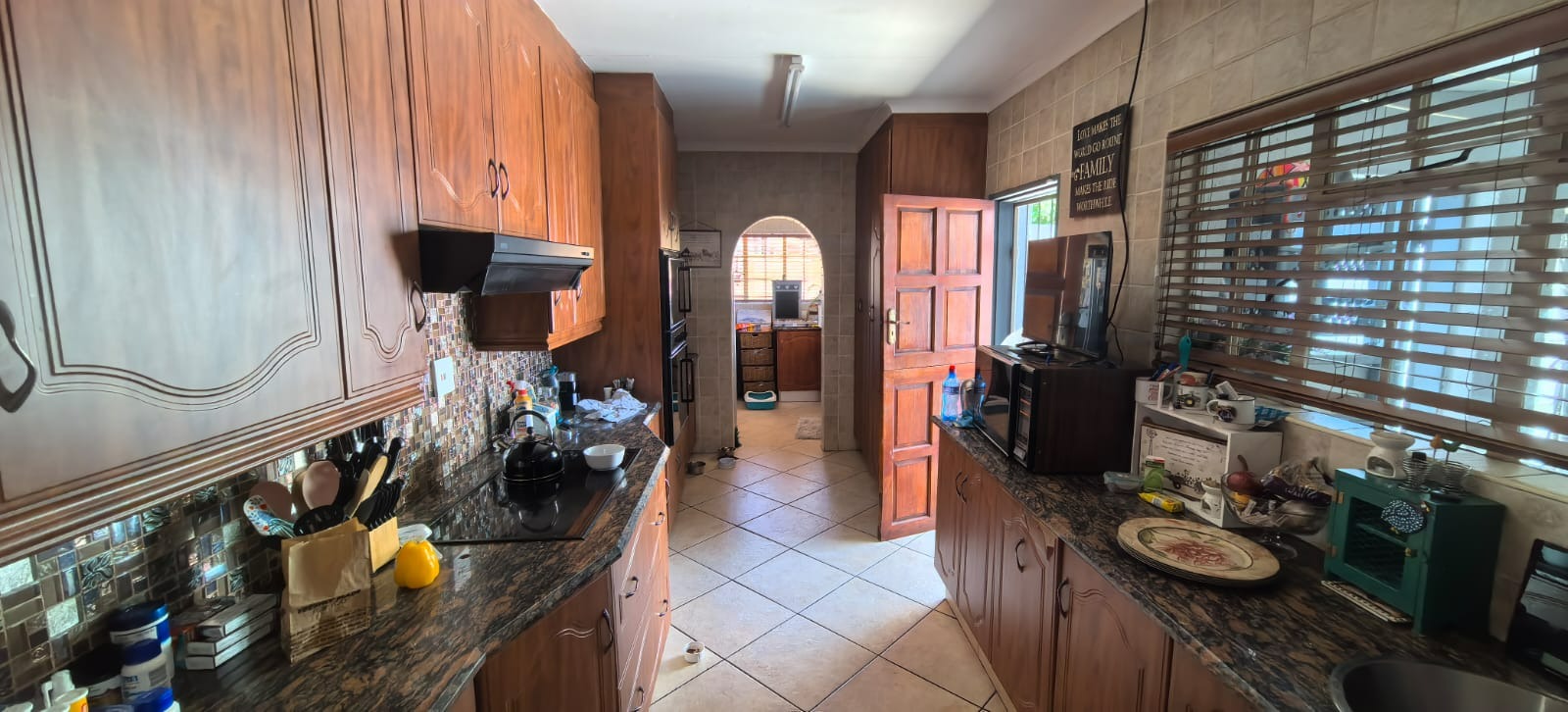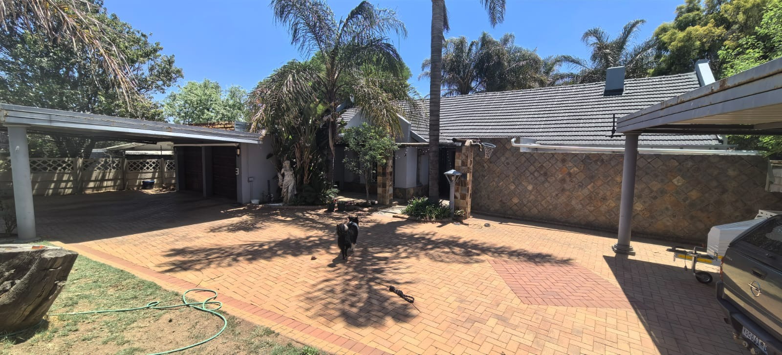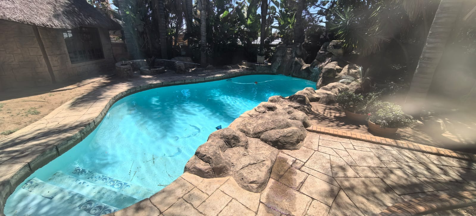 Discover this inviting 4-bedroom, 2-bathroom family home situated in a secure gated community in Glen Marais, Kempton Park. Boasting a generous 400 sqm under roof on a 1060 sqm erf, this property offers ample space for comfortable living. The interior features an open-plan design, two lounges, a dedicated dining room, and a family/TV room, providing versatile living areas. The well-appointed kitchen is equipped with rich wooden cabinetry, granite countertops, a built-in oven and hob, and a convenient pantry, all illuminated by natural light. An additional study and entrance hall complete the functional layout. The four spacious bedrooms are complemented by two bathrooms, including a private en-suite, ensuring comfort and privacy for the entire family. Step outside to a private oasis designed for relaxation and entertainment. The property features a refreshing swimming pool with a charming rock waterfall, a covered patio perfect for outdoor dining, and a unique thatched-roof lapa complete with a built-in braai area. The lush garden and extensive paving create an appealing outdoor environment. Parking is abundant with a double garage and multiple carports, accommodating numerous vehicles securely. Security is paramount within this gated community, offering 24-hour security, a security post, and access gates. The home itself is fitted with burglar bars and security gates on sliding doors, providing peace of mind. Fibre connectivity is also available, catering to modern lifestyle needs. The property presents excellent kerb appeal with its large brick-paved driveway, mature trees, and attractive stone cladding accents, creating a welcoming first impression. Glen Marais is a sought-after residential suburb in Kempton Park, known for its family-friendly atmosphere and convenient access to amenities. Key Features: * 4 Bedrooms, 2 Bathrooms (1 En-suite) * 2 Lounges, Dining Room, Family/TV Room, Study * Spacious Kitchen with Granite Countertops and Pantry * Private Swimming Pool with Rock Waterfall * Covered Patio and Lapa with Built-in Braai Area * Double Garage and Ample Covered Parking * Gated Community with 24-Hour Security and Fibre * Large 1060 sqm Erf with Paved Driveway