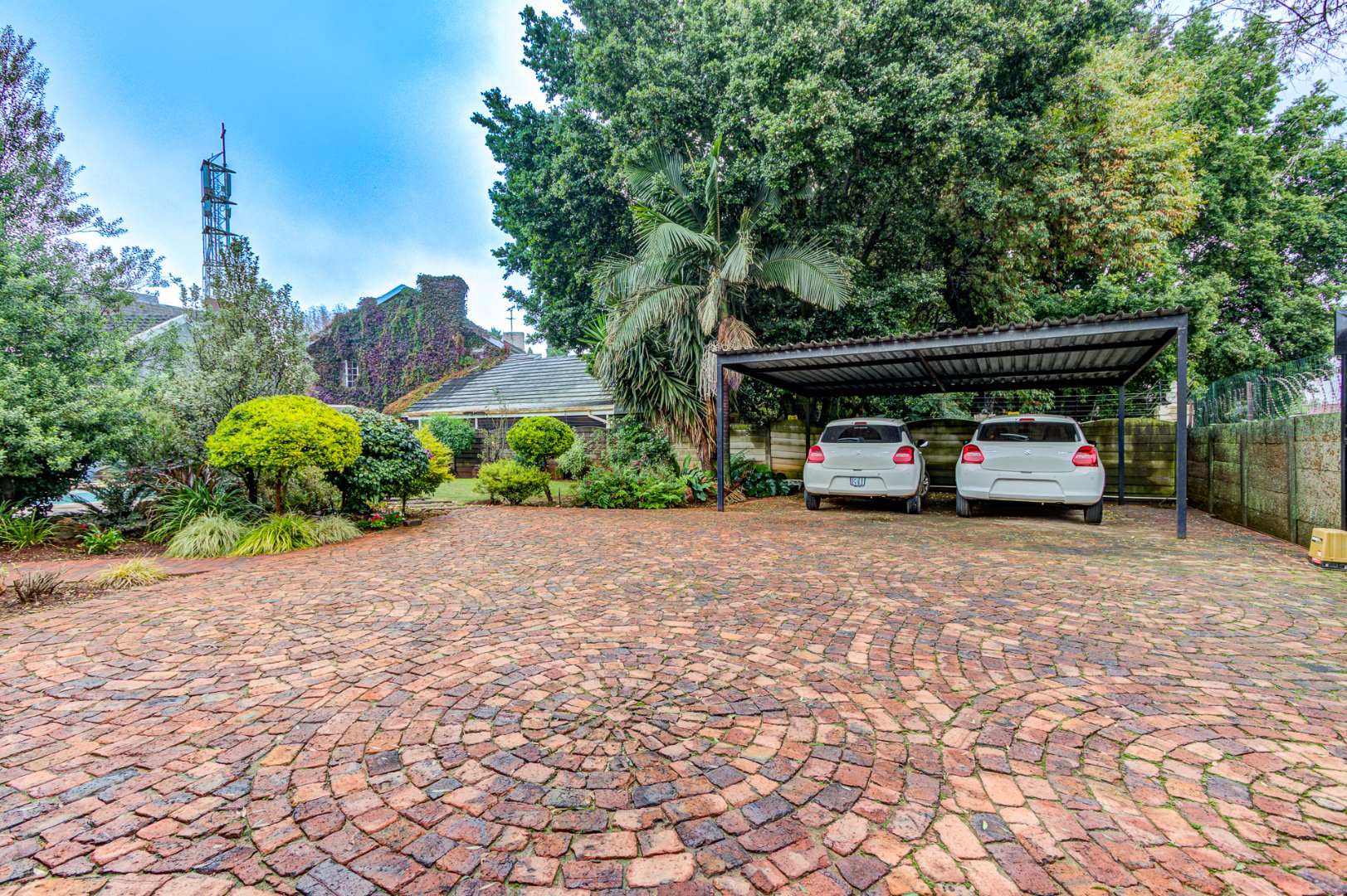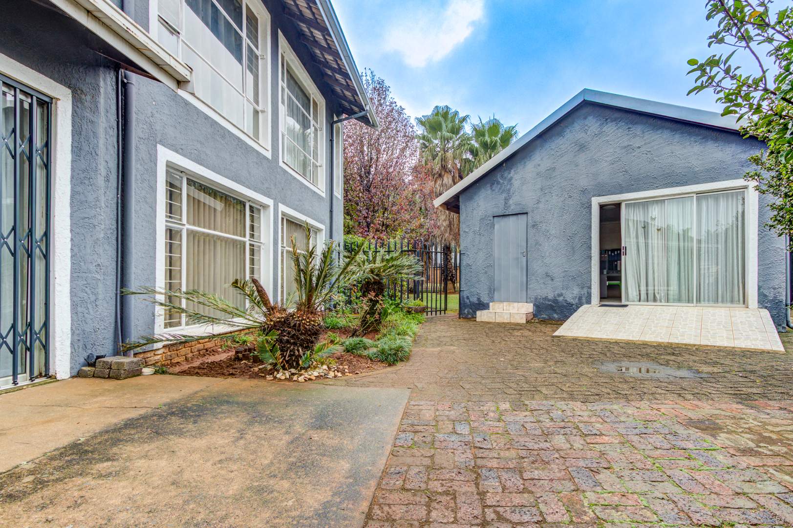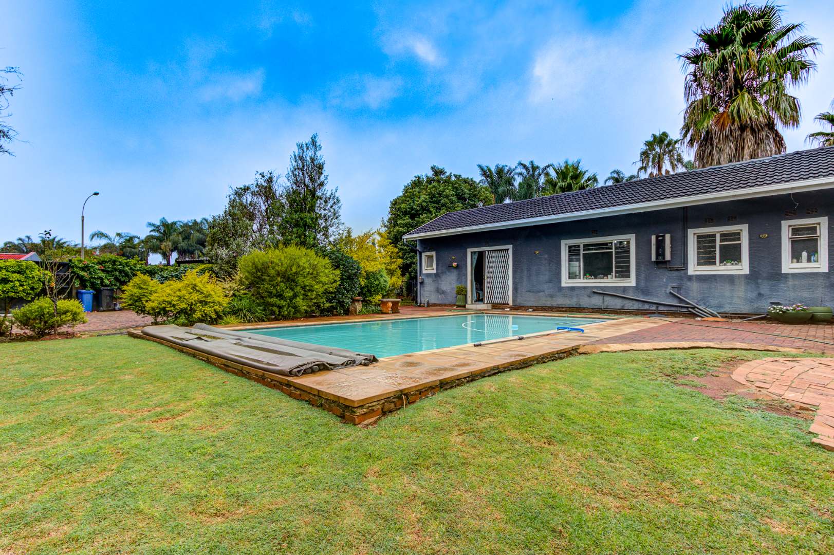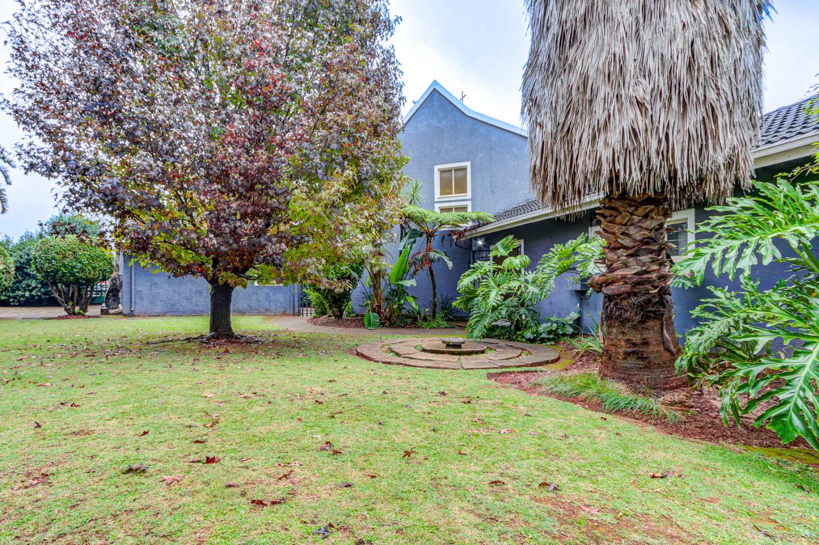 Step outside to discover a private oasis featuring a sparkling swimming pool, a built-in braai for outdoor entertaining, and a beautifully maintained garden set on a generous 1550 sqm erf. Additional conveniences include two garages, six open parking spaces, a borehole, and fibre connectivity. Security is paramount with 24-hour surveillance, access gates, burglar bars, and a totally walled perimeter, ensuring peace of mind. Pets are welcome in this secure and family-friendly environment.
