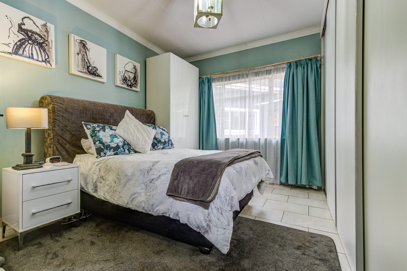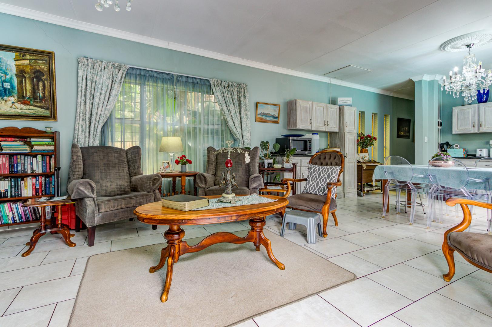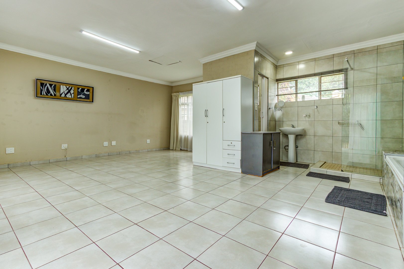 Step outside to discover a private oasis featuring a sparkling swimming pool, a built-in braai for outdoor entertaining, and a beautifully maintained garden set on a generous 1550 sqm erf. Additional conveniences include two garages, six open parking spaces, a borehole, and fibre connectivity. Security is paramount with 24-hour surveillance, access gates, burglar bars, and a totally walled perimeter, ensuring peace of mind. Pets are welcome in this secure and family-friendly environment.