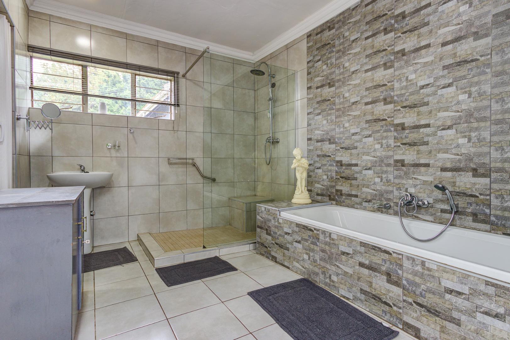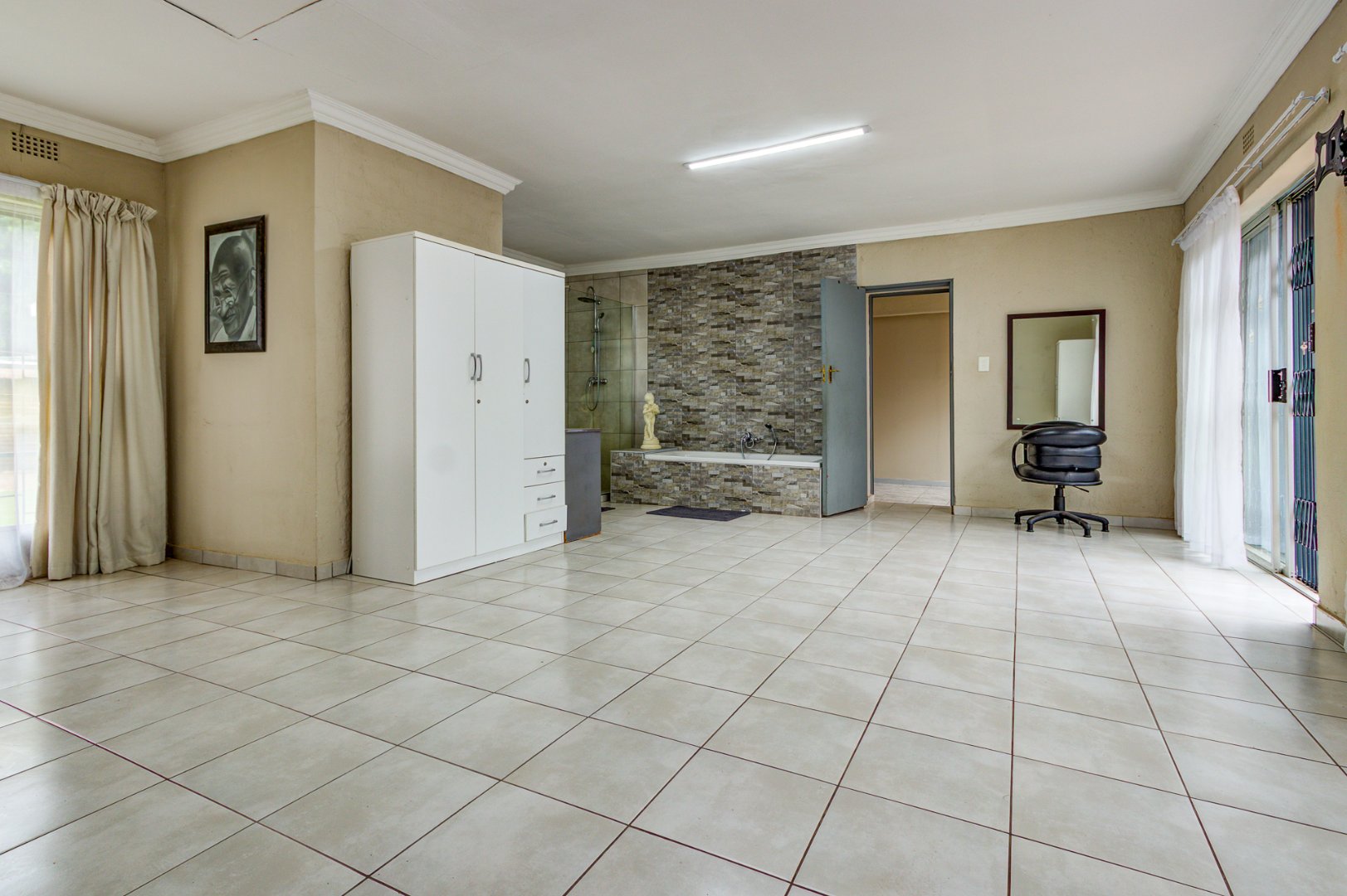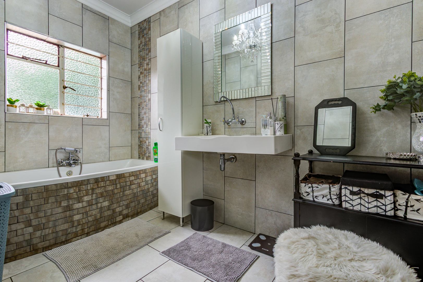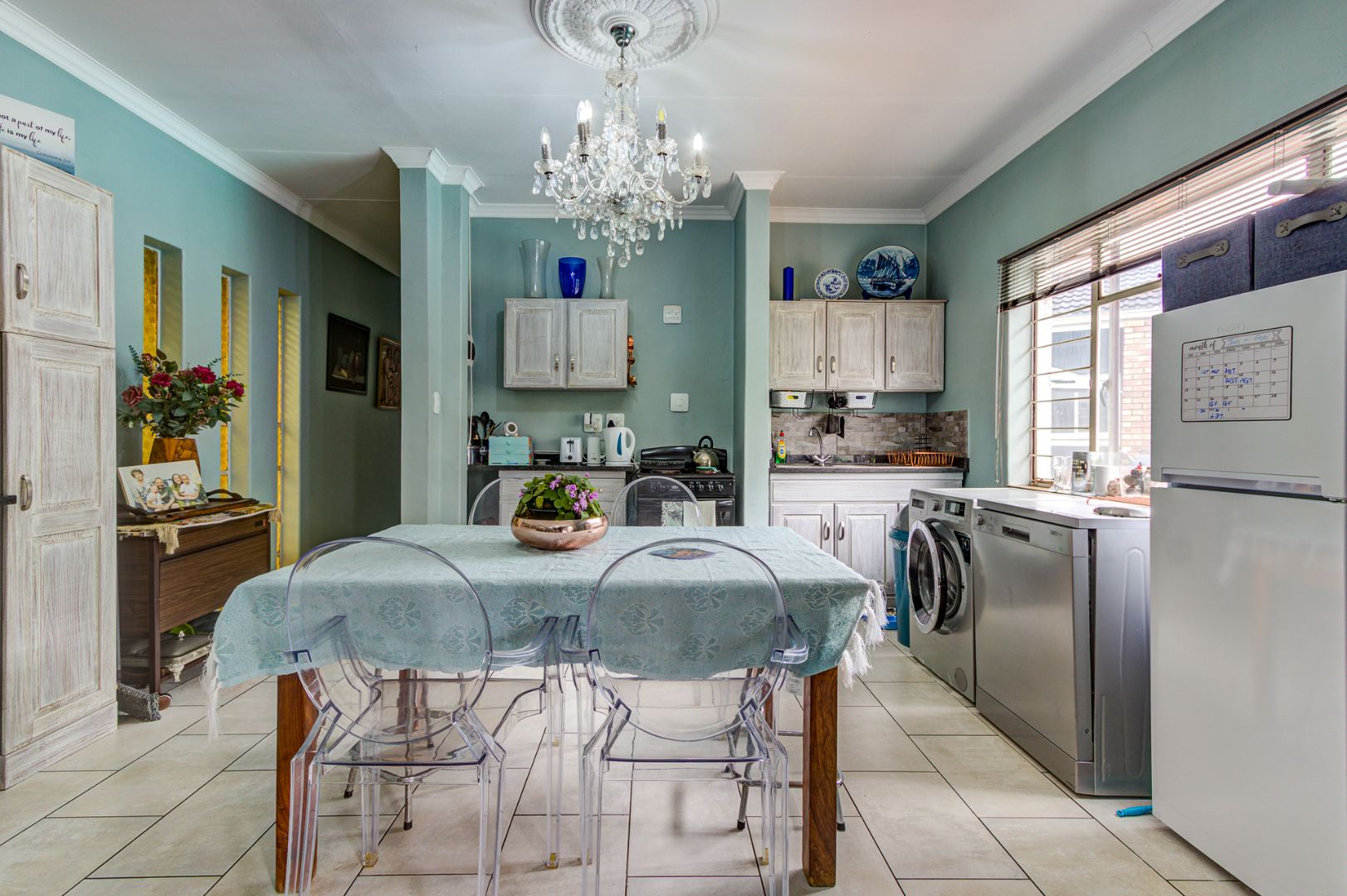 Step outside to discover a private oasis featuring a sparkling swimming pool, a built-in braai for outdoor entertaining, and a beautifully maintained garden set on a generous 1550 sqm erf. Additional conveniences include two garages, six open parking spaces, a borehole, and fibre connectivity. Security is paramount with 24-hour surveillance, access gates, burglar bars, and a totally walled perimeter, ensuring peace of mind. Pets are welcome in this secure and family-friendly environment.