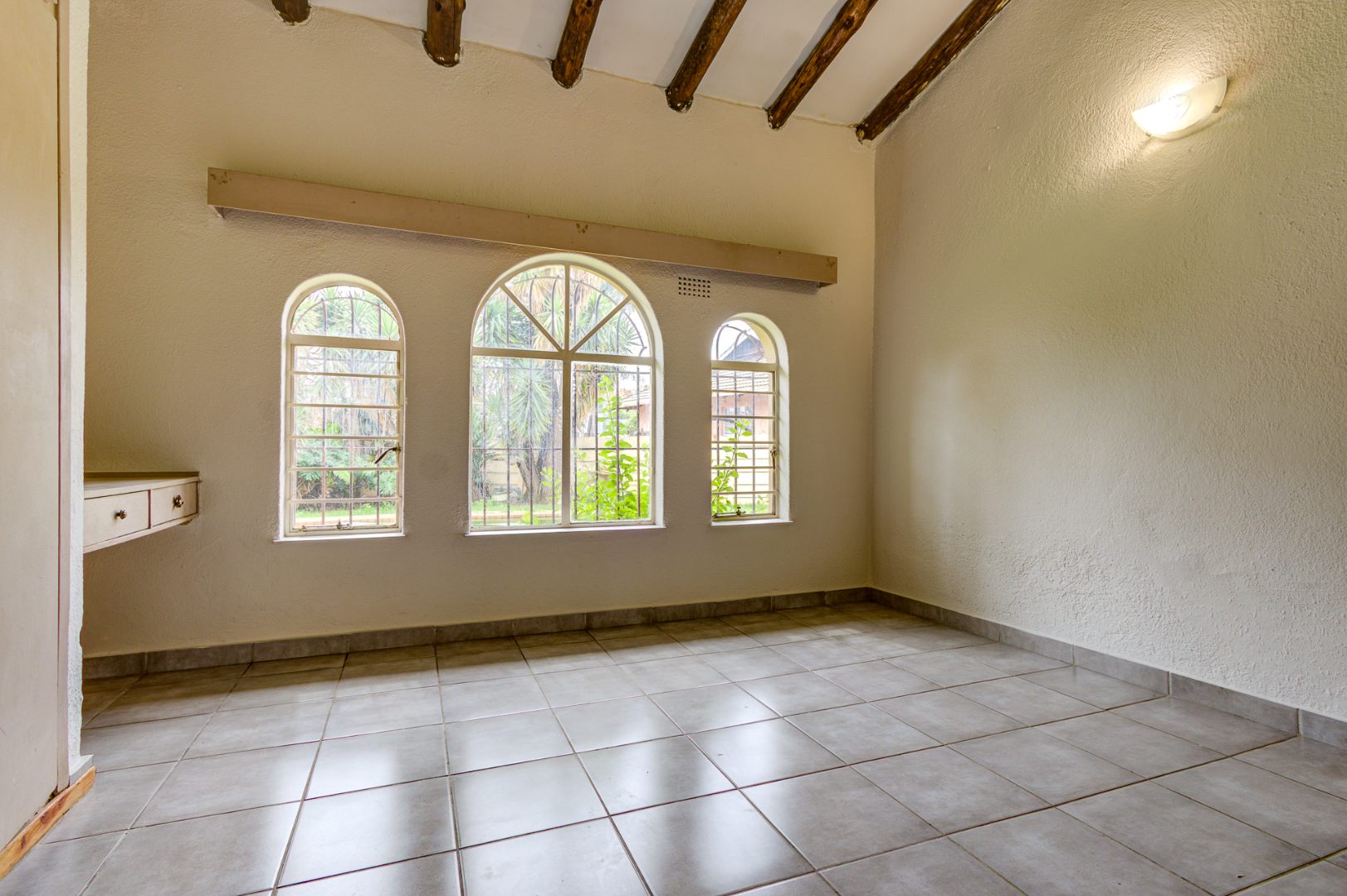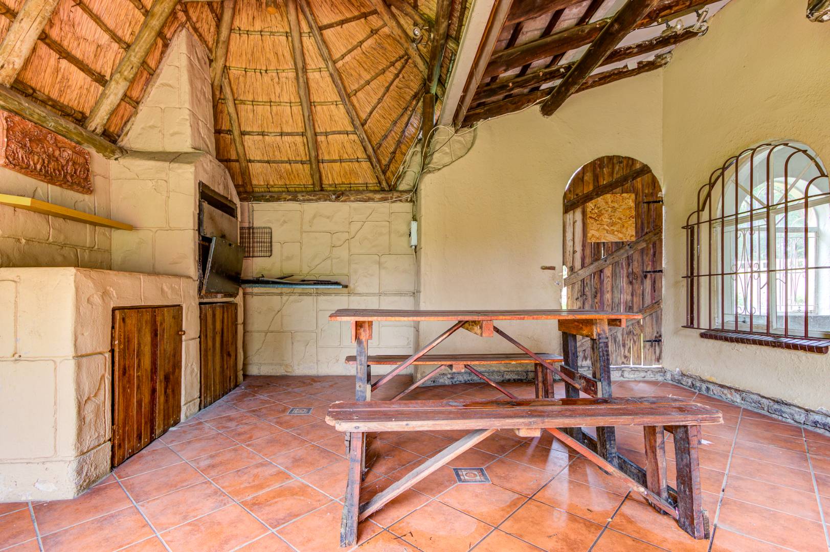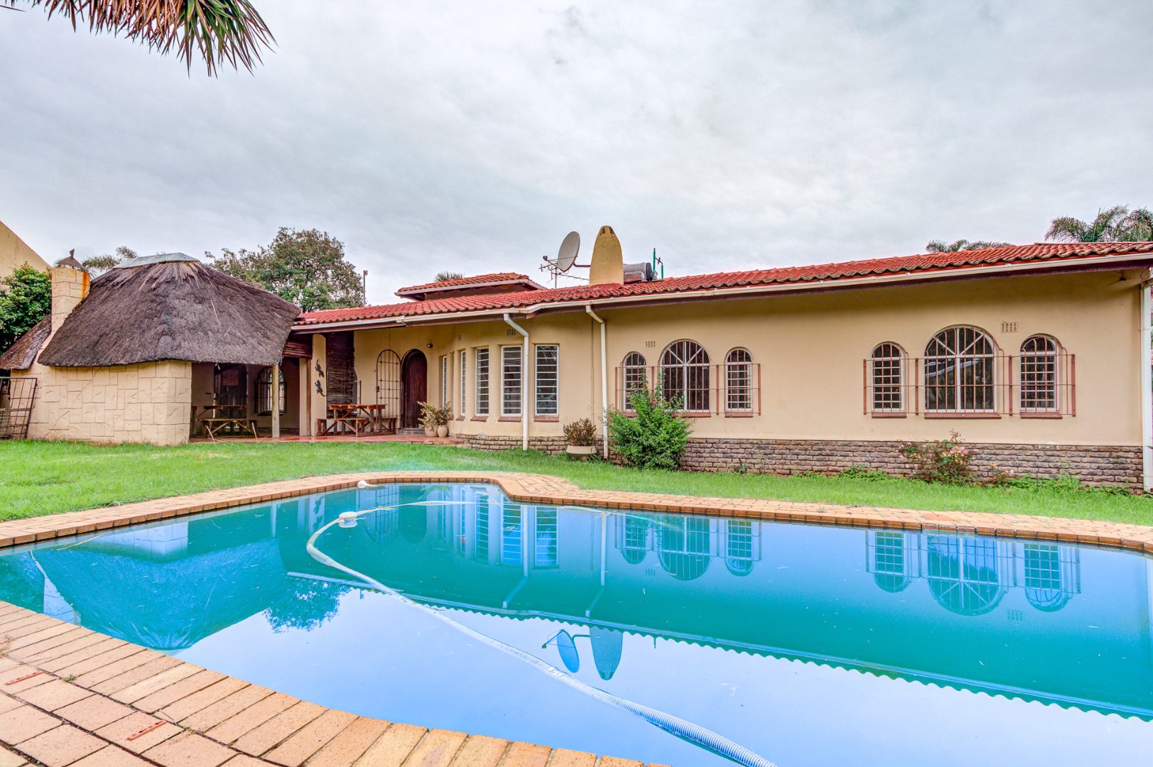 Outside, the property features a private garden, a refreshing swimming pool, and a lapa with a built-in braai, ideal for outdoor entertaining. A dedicated braai room further enhances leisure opportunities. Practical amenities include staff quarters, a laundry area, outside toilets, and a double garage with two additional parking spaces. Enhanced security features like burglar bars and security gates, along with fibre internet, complete this appealing offering.