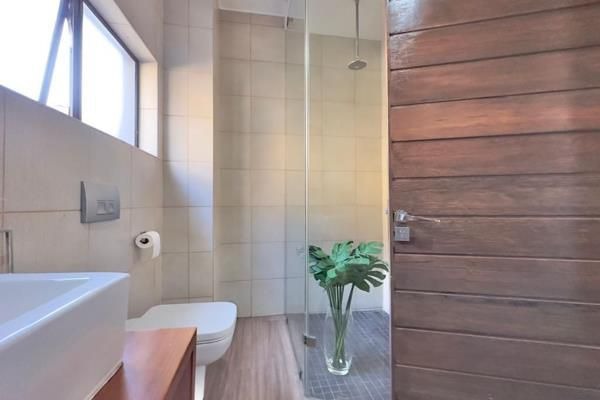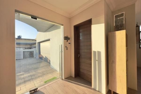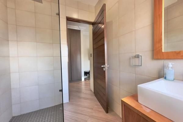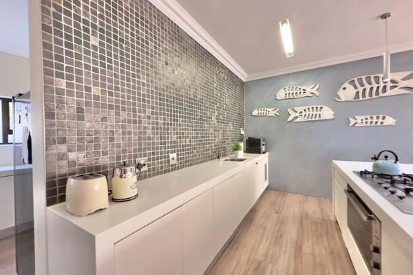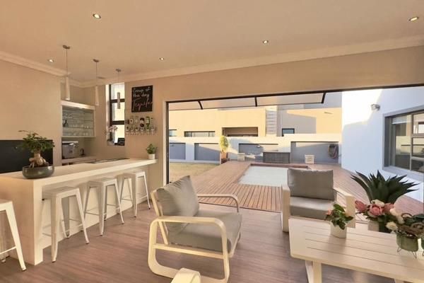Inside, you will find a private study, ideal for working from home, as well as a modern open-plan kitchen that leads into the living area and braai room. The kitchen is fitted with gas appliances, a spacious scullery, and a built-in pizza oven, making it great for everyday use and entertaining.
