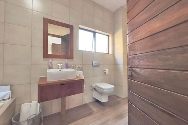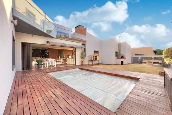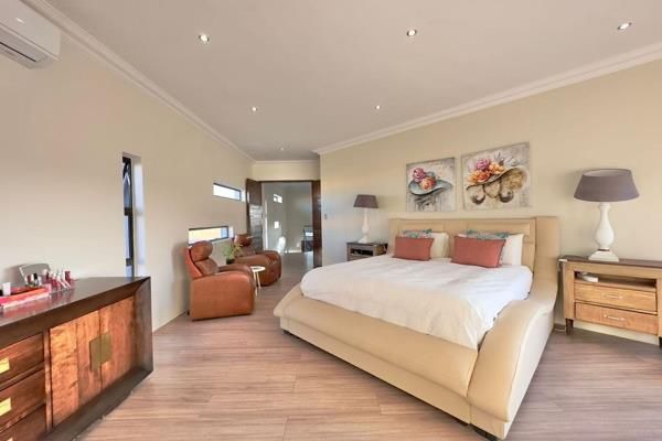 Outside, the home offers a heated swimming pool, a boma area overlooking the garden, and several entertainment spaces for all-year enjoyment.