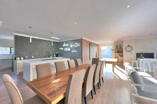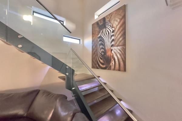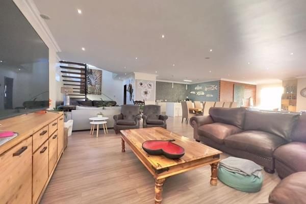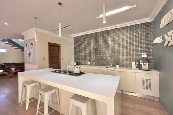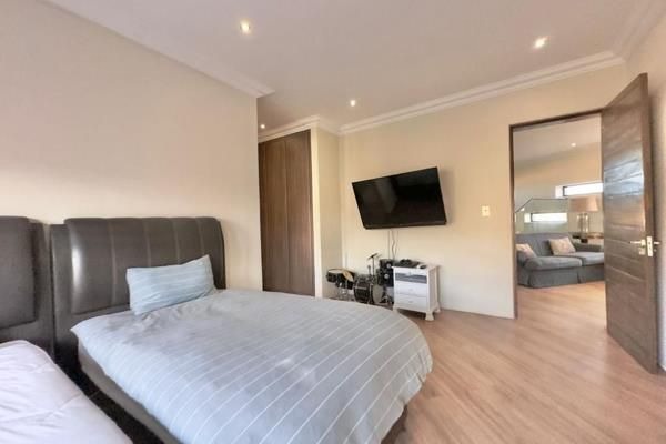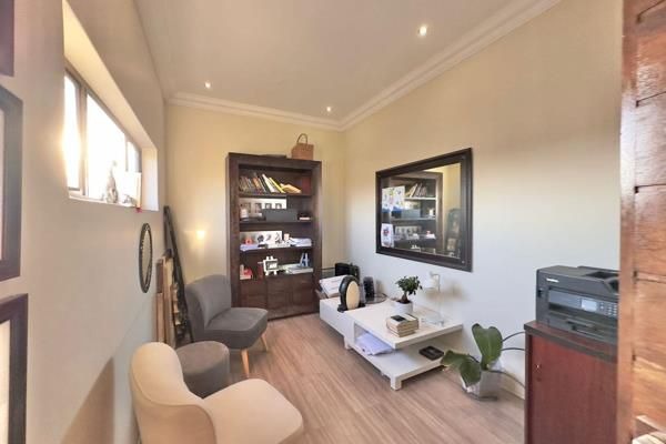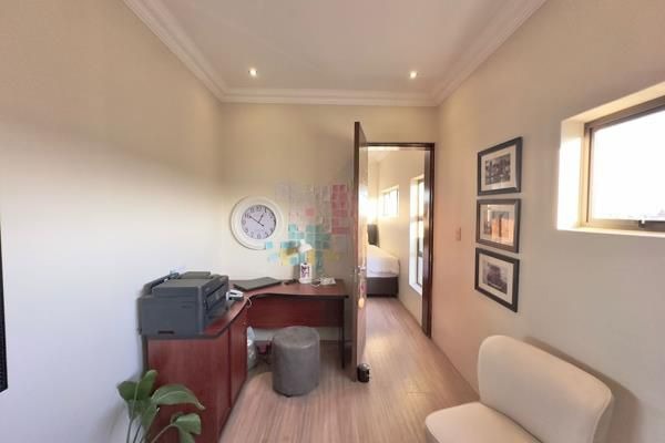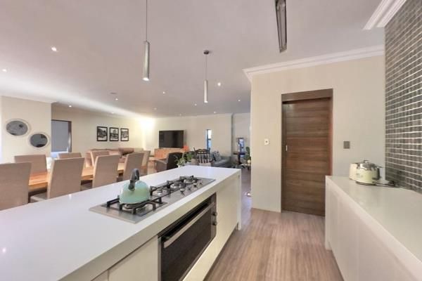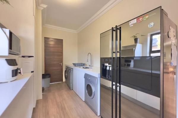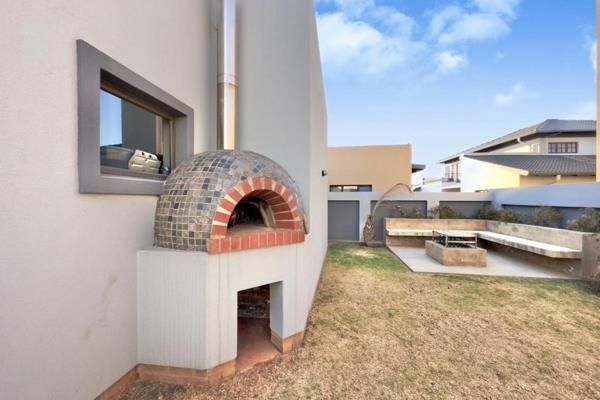 Inside, you will find a private study, ideal for working from home, as well as a modern open-plan kitchen that leads into the living area and braai room. The kitchen is fitted with gas appliances, a spacious scullery, and a built-in pizza oven, making it great for everyday use and entertaining.