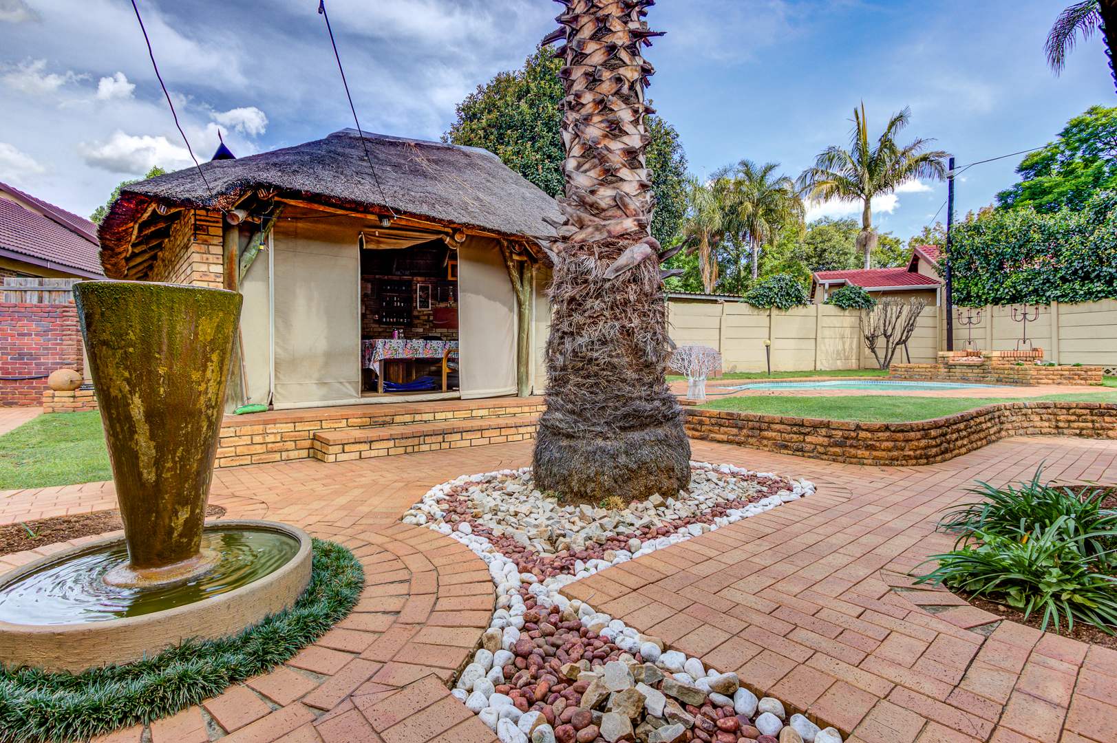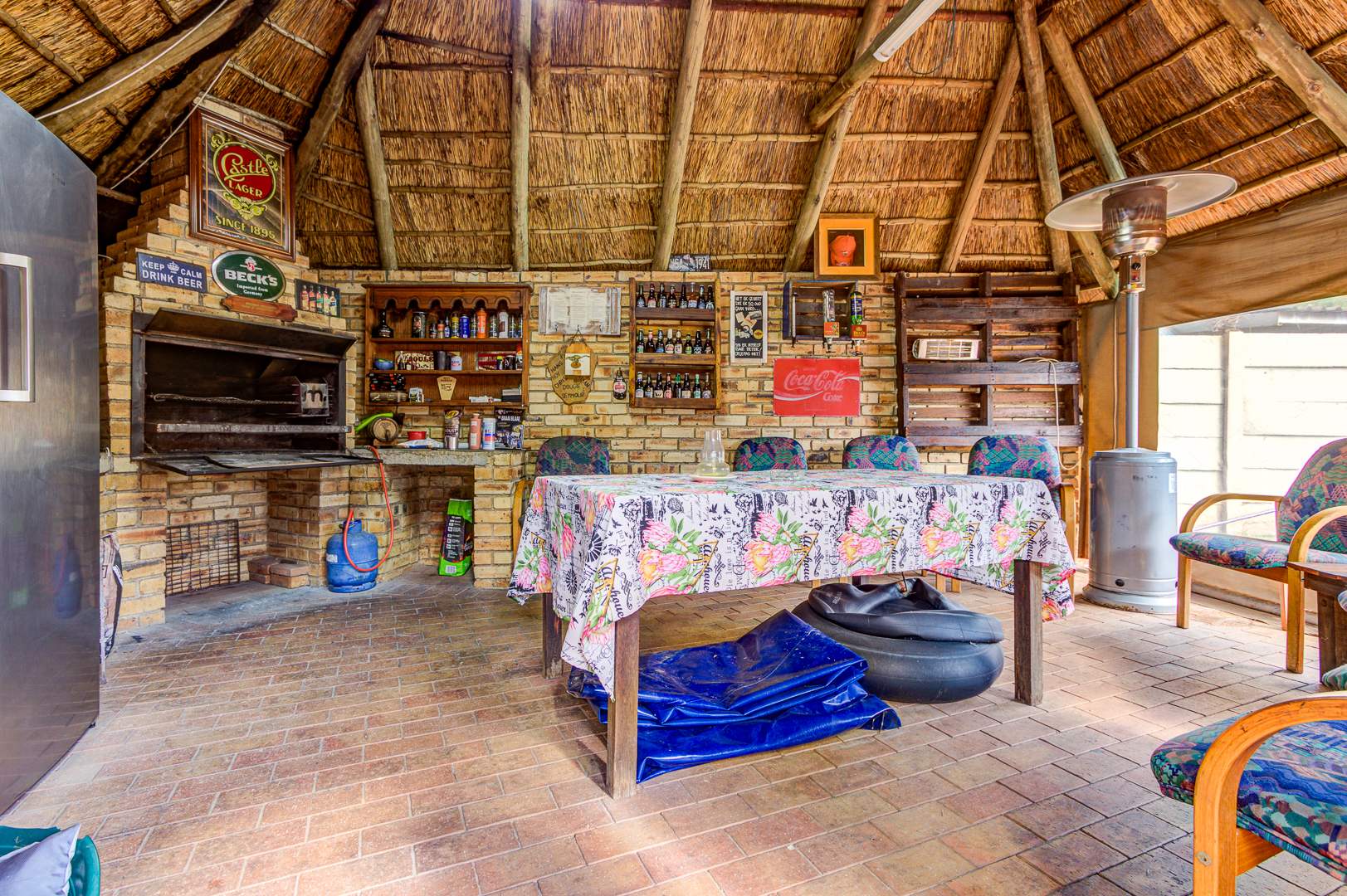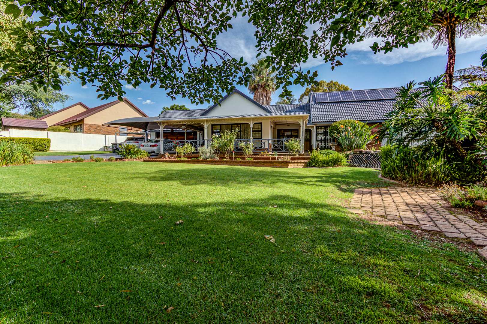 Outdoor living is just as impressive. The home features a beautiful wrap-around front porch and a lapa with a built-in braai, making it ideal for hosting family gatherings and enjoying the South African lifestyle.