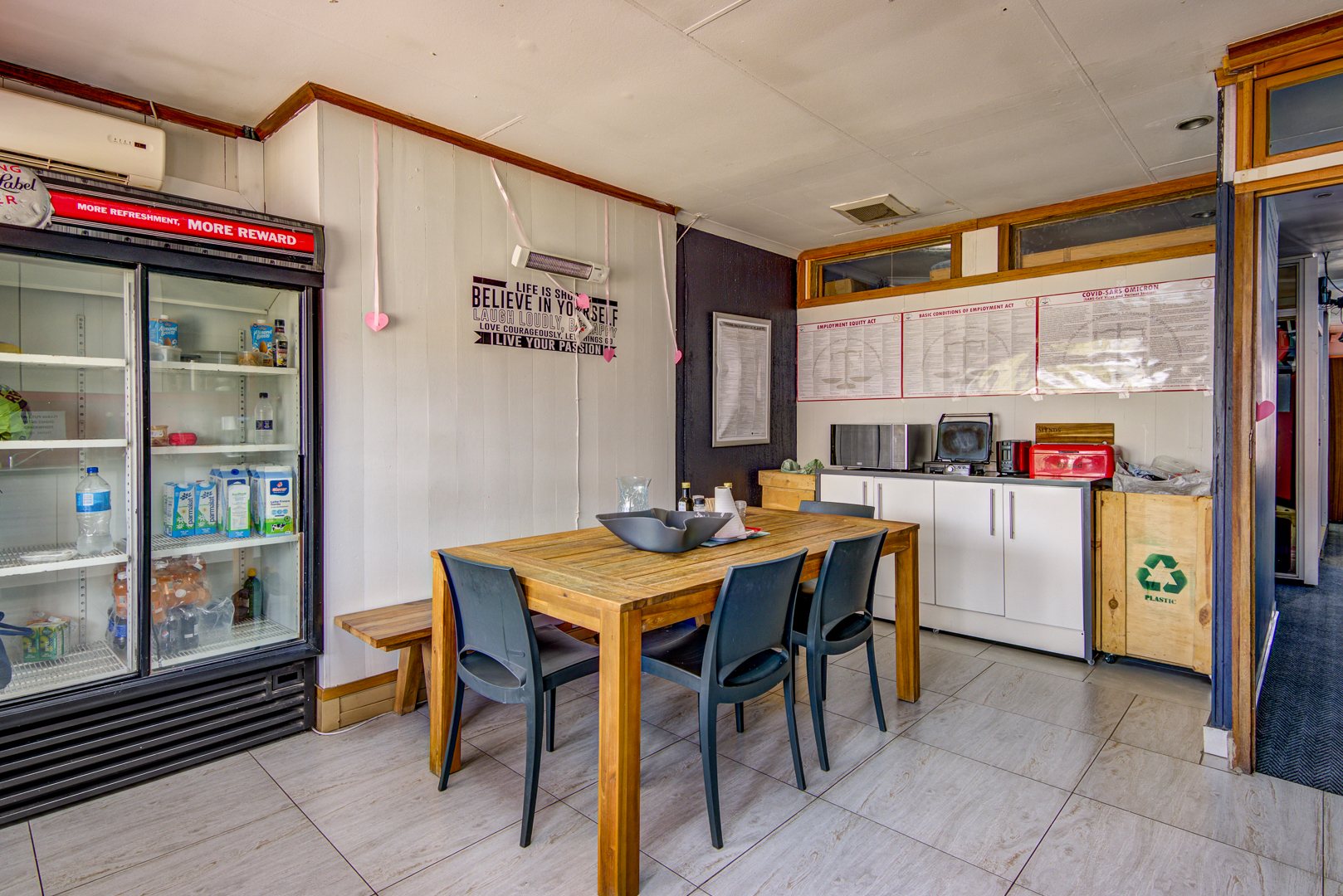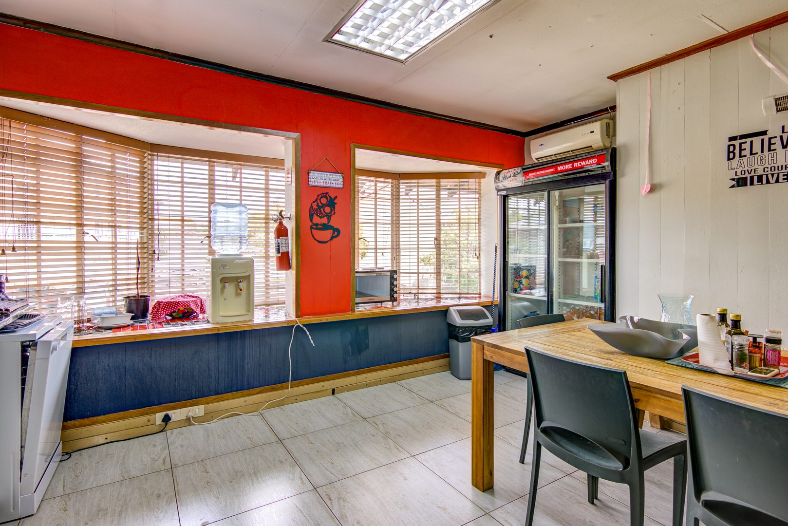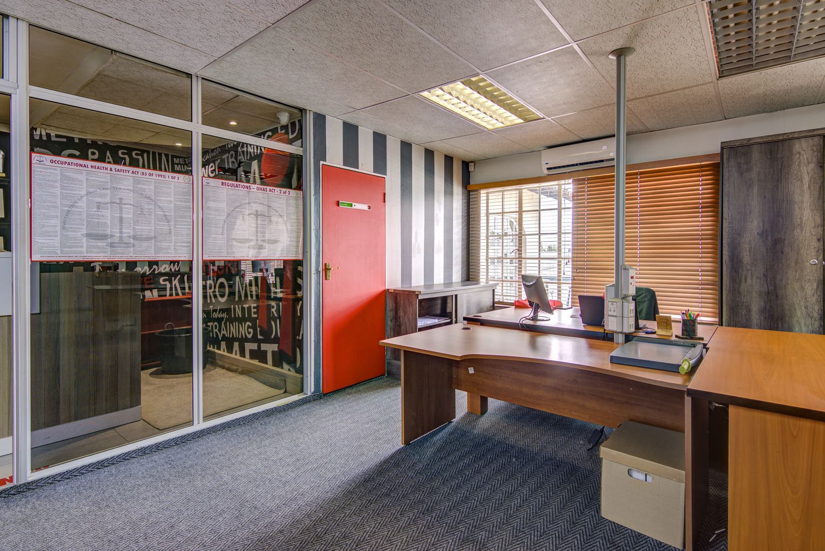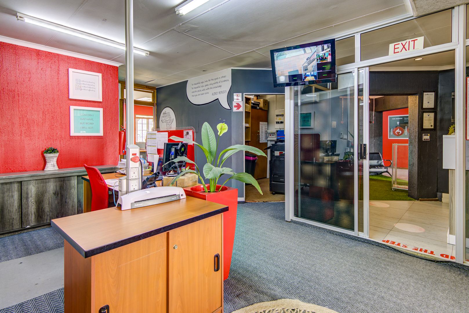 Carpeted reception area, open plan office with 3 working stations. 1 Large carpeted office (double volume) with aircon and blinds. 1 Server room or store room with inverter and battery. Large kitchen with zink, space for a dishwasher and built-in cupboards. 1 Bathroom