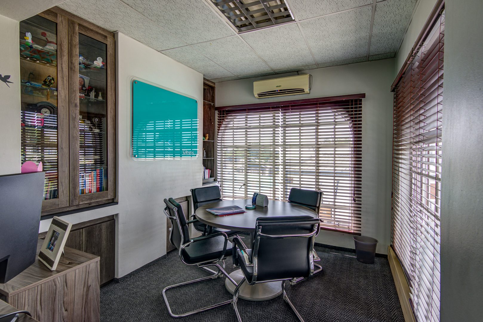 Large carpeted open plan office with 8 working stations. Separate carpeted medium size office with blinds and aircon. Built-in inverter (server and printer room). Tiled kitchen with single zink, built-in cupboards, Granite tops and aircon. 1 Fully tiled bathroom with toilet and basin. Office has 4 aircons and 2 cameras. 1 Store room. Large carpeted open plan office with aircon and blinds.
