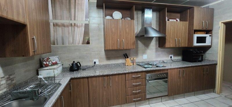 A significant highlight of this property is the separate flatlet, 2 bedrooms, 1 bathroom, with entrance from the street. Offering excellent potential for rental income or accommodating extended family members. Private save parking area. Outside, the property truly shines with a private garden with boma area. The property is fully walled, featuring an access gate and security gate for peace of mind. Practical amenities include two garages, additional paved parking, and fibre internet connectivity. Pets are also welcome, making this a truly family-friendly abode.