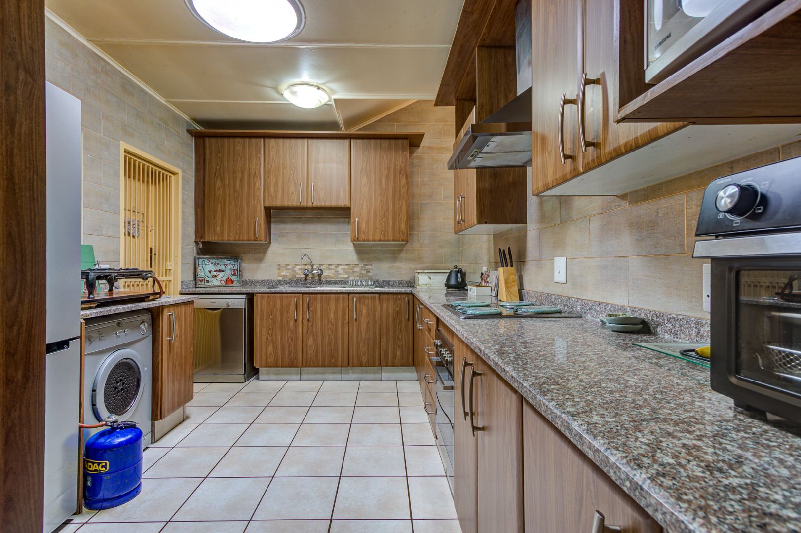 A significant highlight of this property is the separate flatlet, 2 bedrooms, 1 bathroom, with entrance from the street. Offering excellent potential for rental income or accommodating extended family members. Private save parking area. Outside, the property truly shines with a private garden with boma area. The property is fully walled, featuring an access gate and security gate for peace of mind. Practical amenities include two garages, additional paved parking, and fibre internet connectivity. Pets are also welcome, making this a truly family-friendly abode.